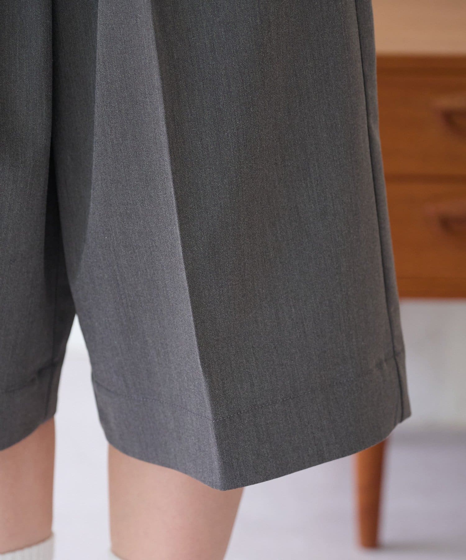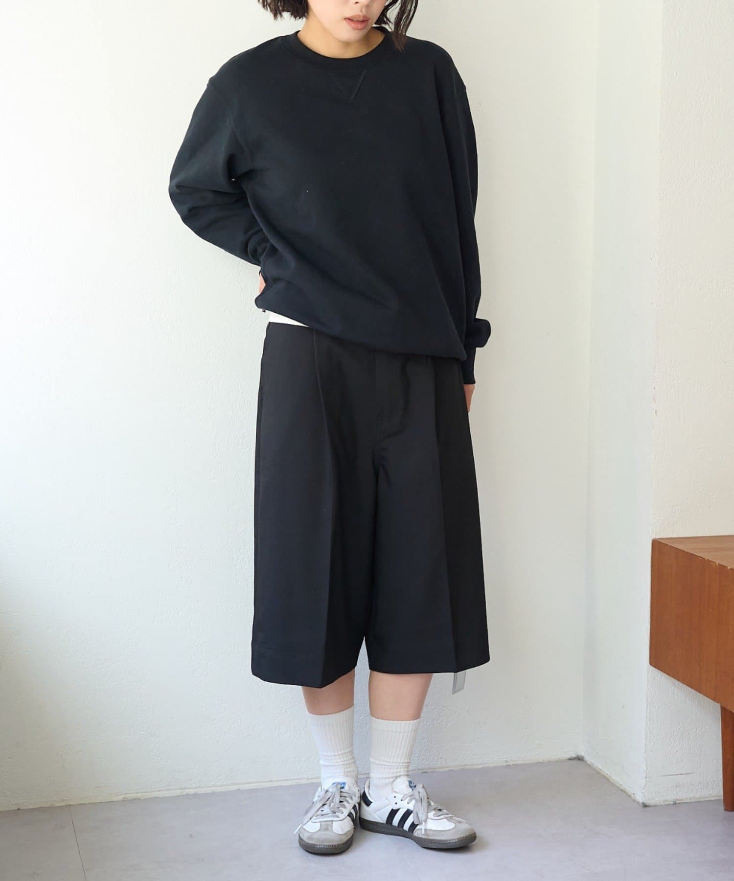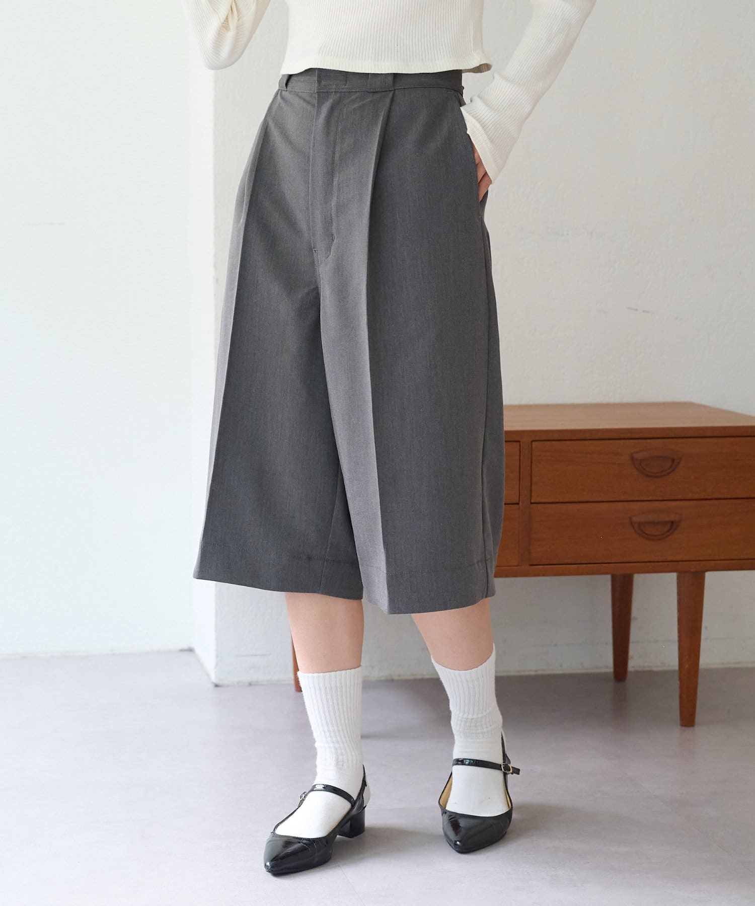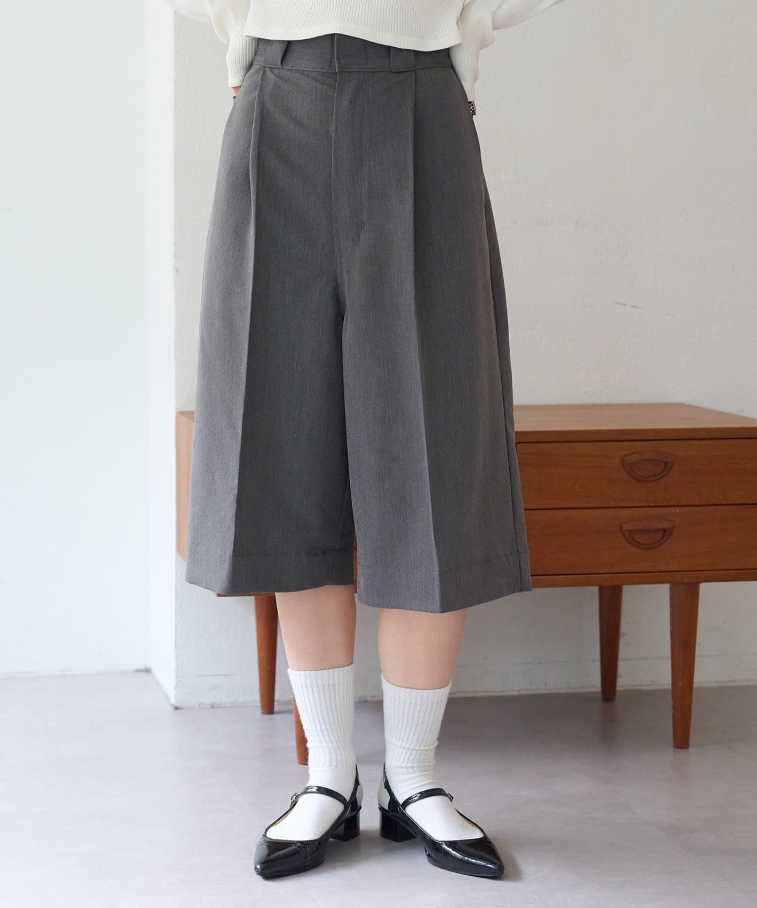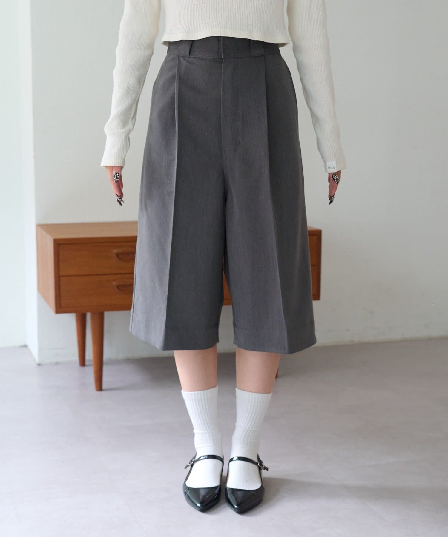 コーデにきちんと感がでるバミューダワイドパンツ。