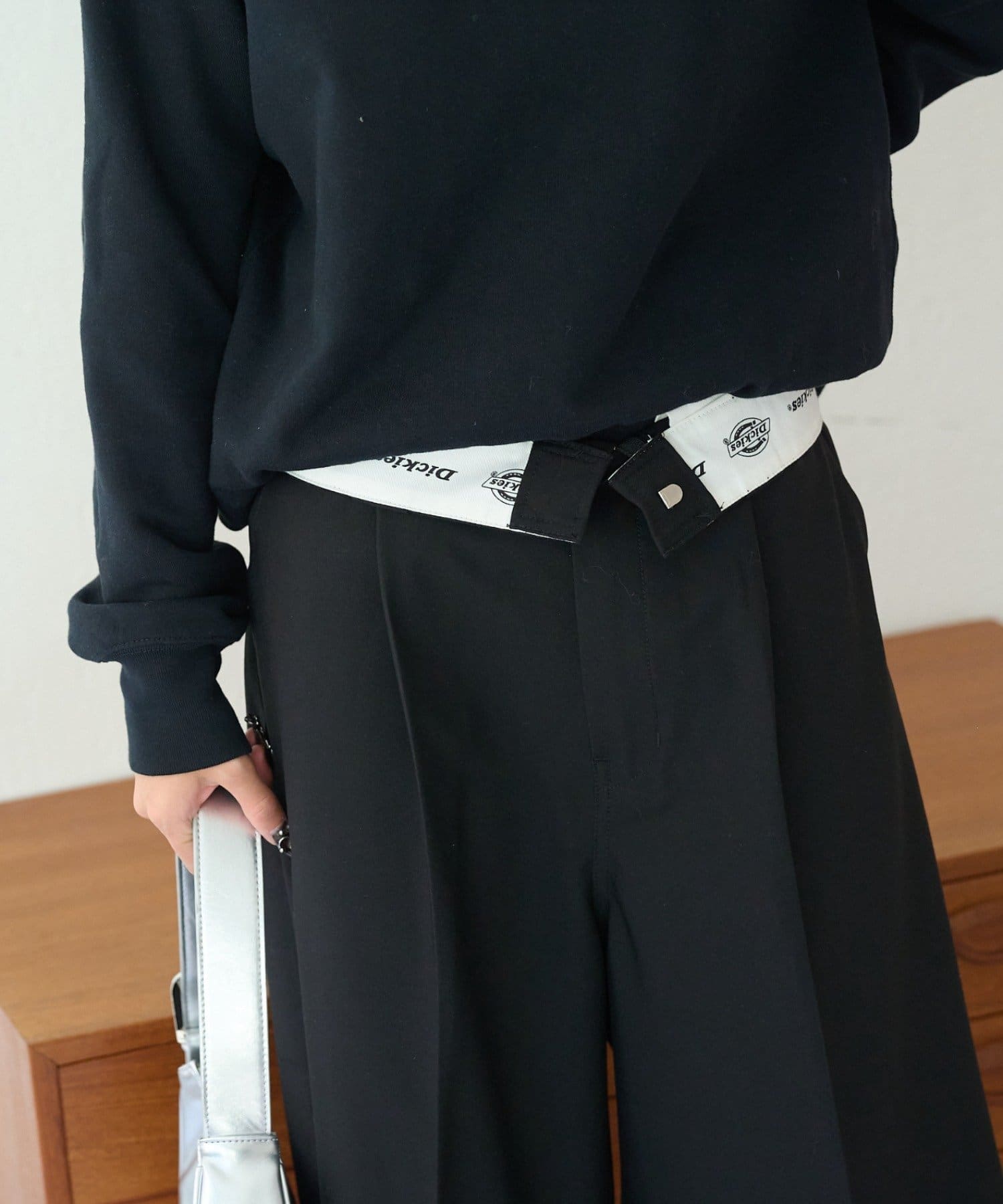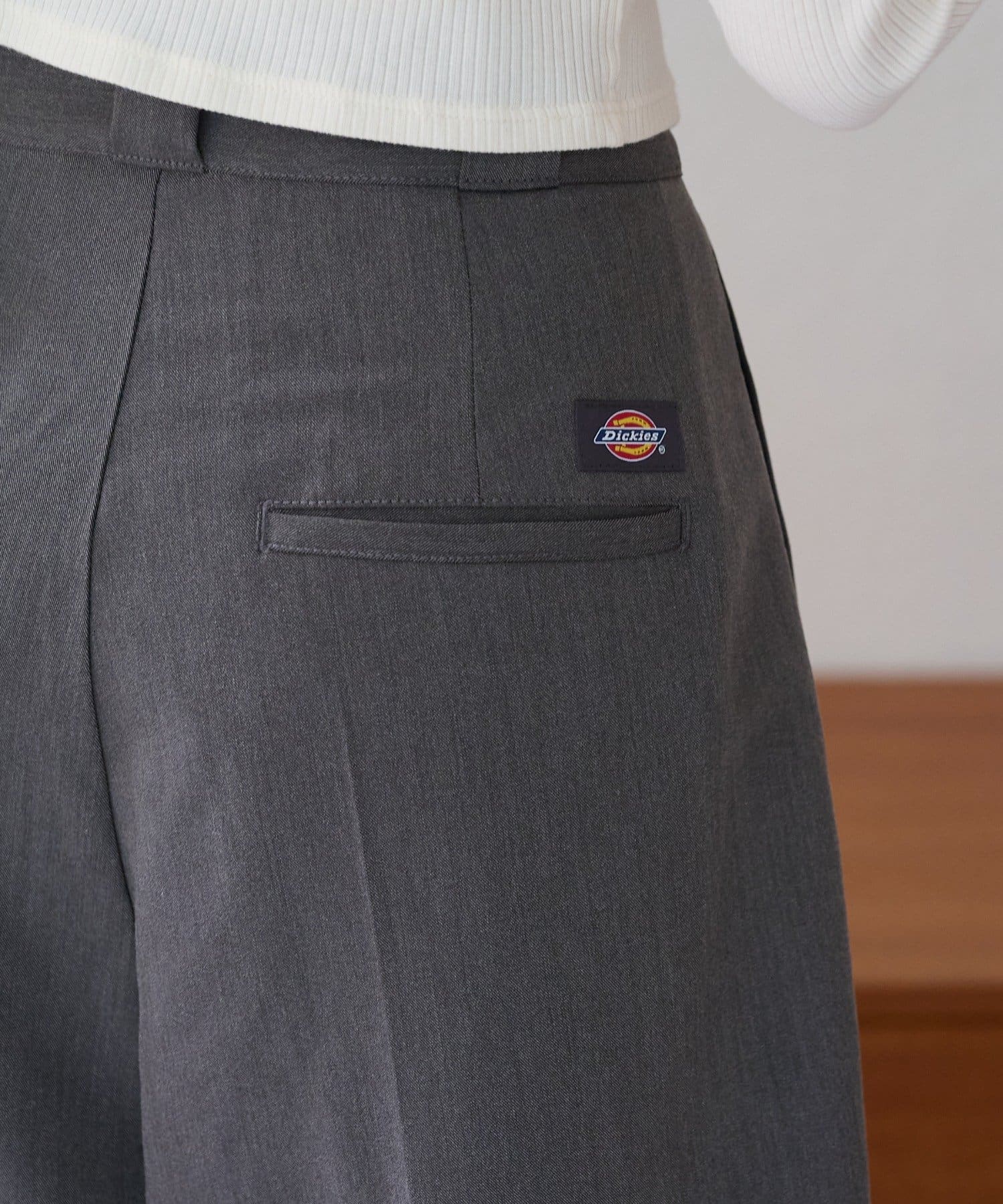 腰部分にはDickiesロゴ刺繍がさりげないポイントに。