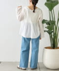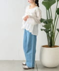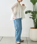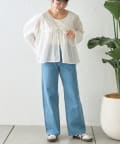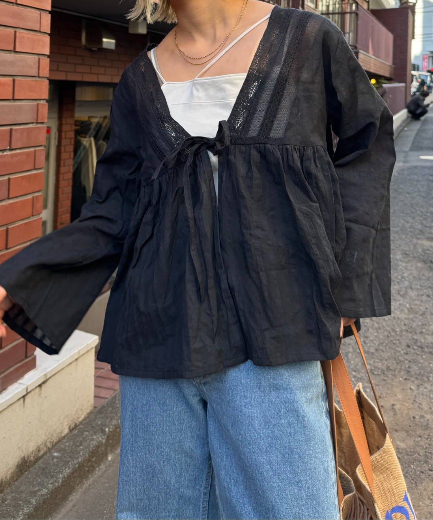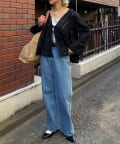 シンプルな白T×デニムコーデもカーディガン感覚で羽織りアイテムとして抜け感のある着こなしに。