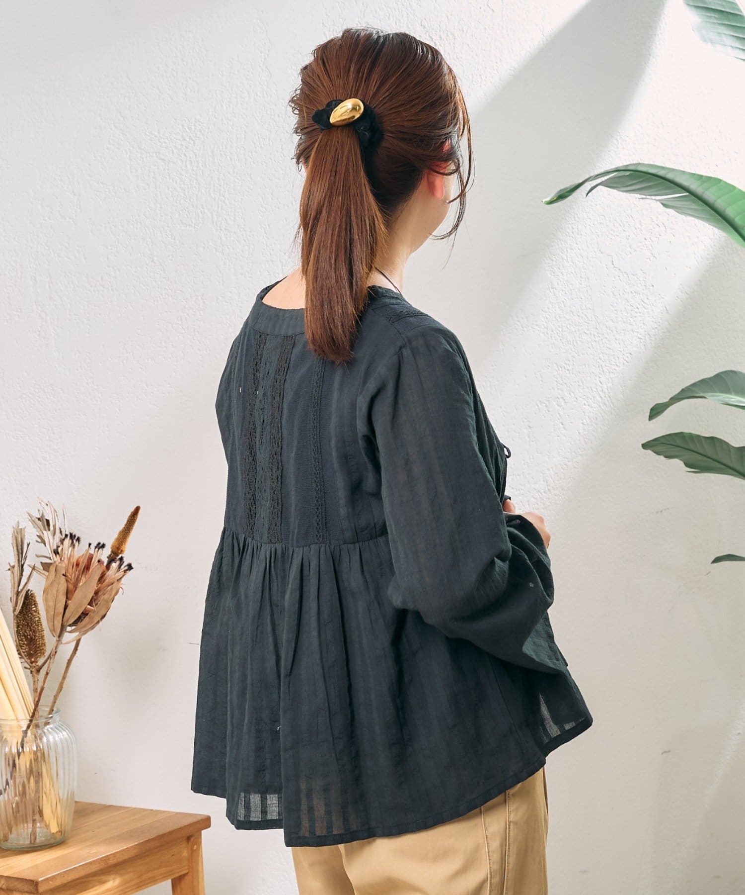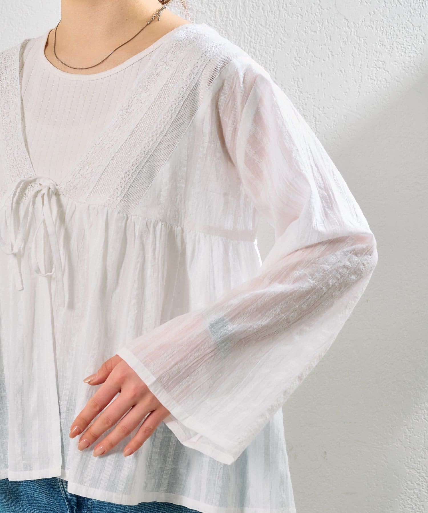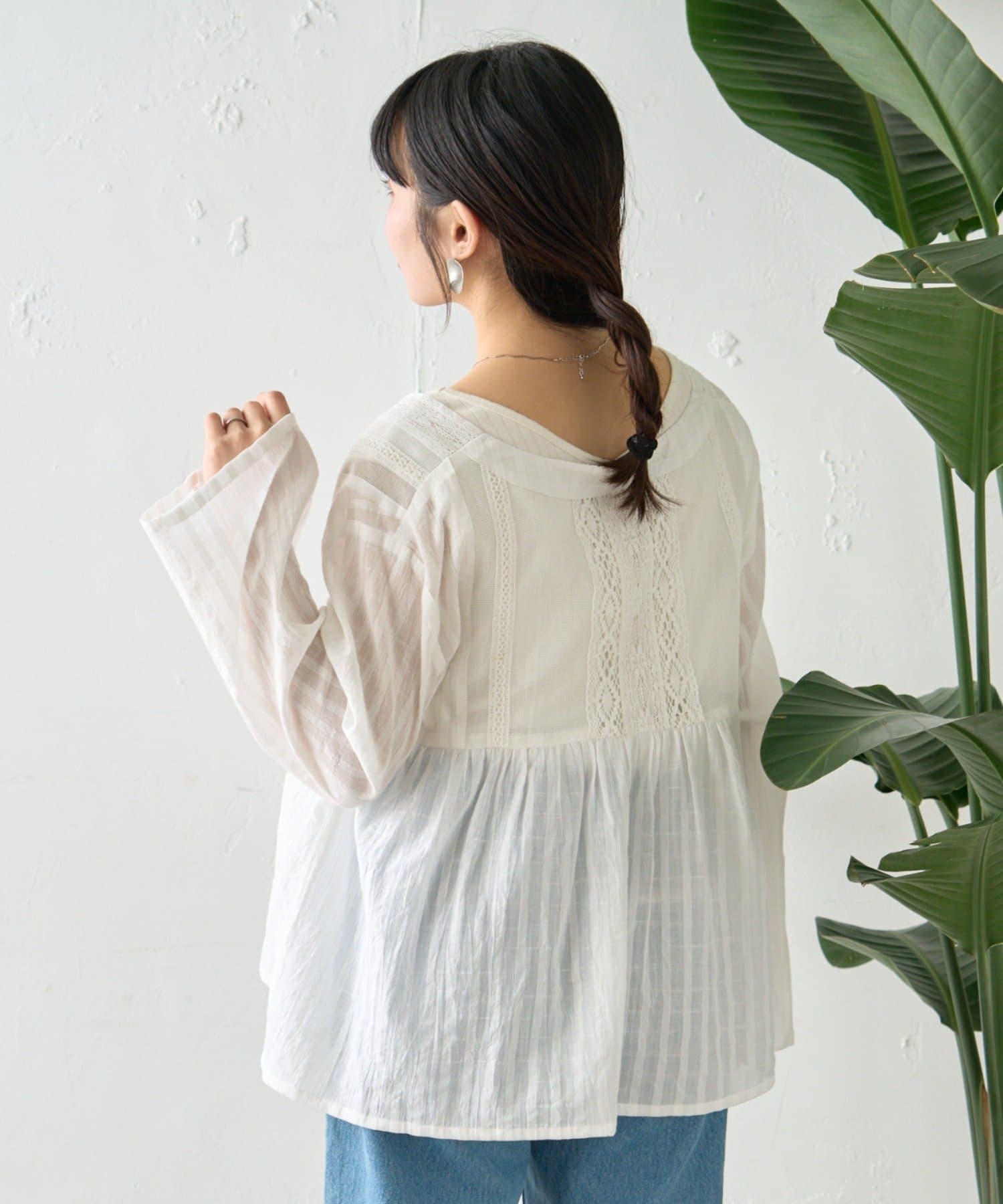 ヘルシーな肌見せが叶うシアー素材に爽やかなストライプ柄を施したシアーブラウス。