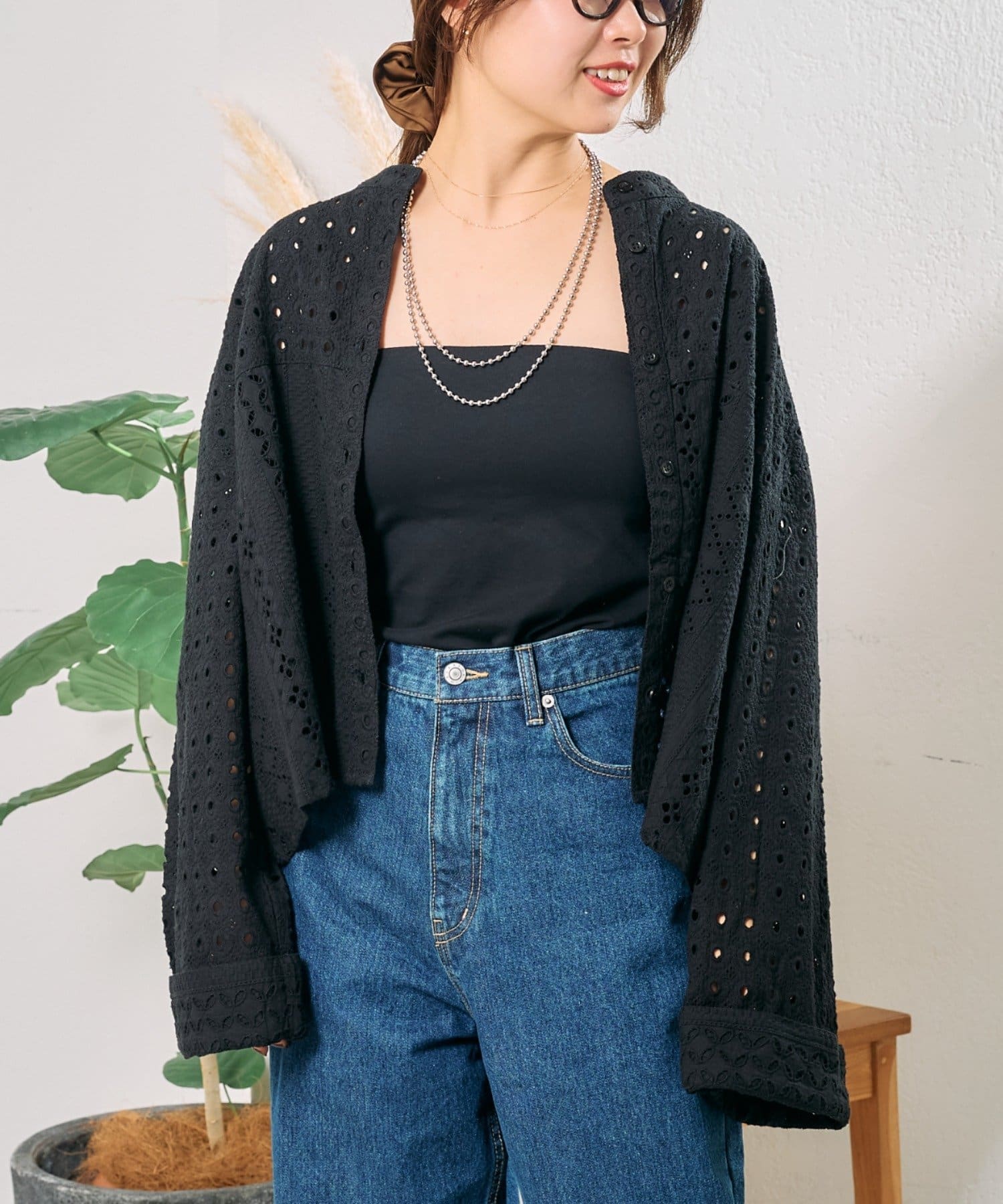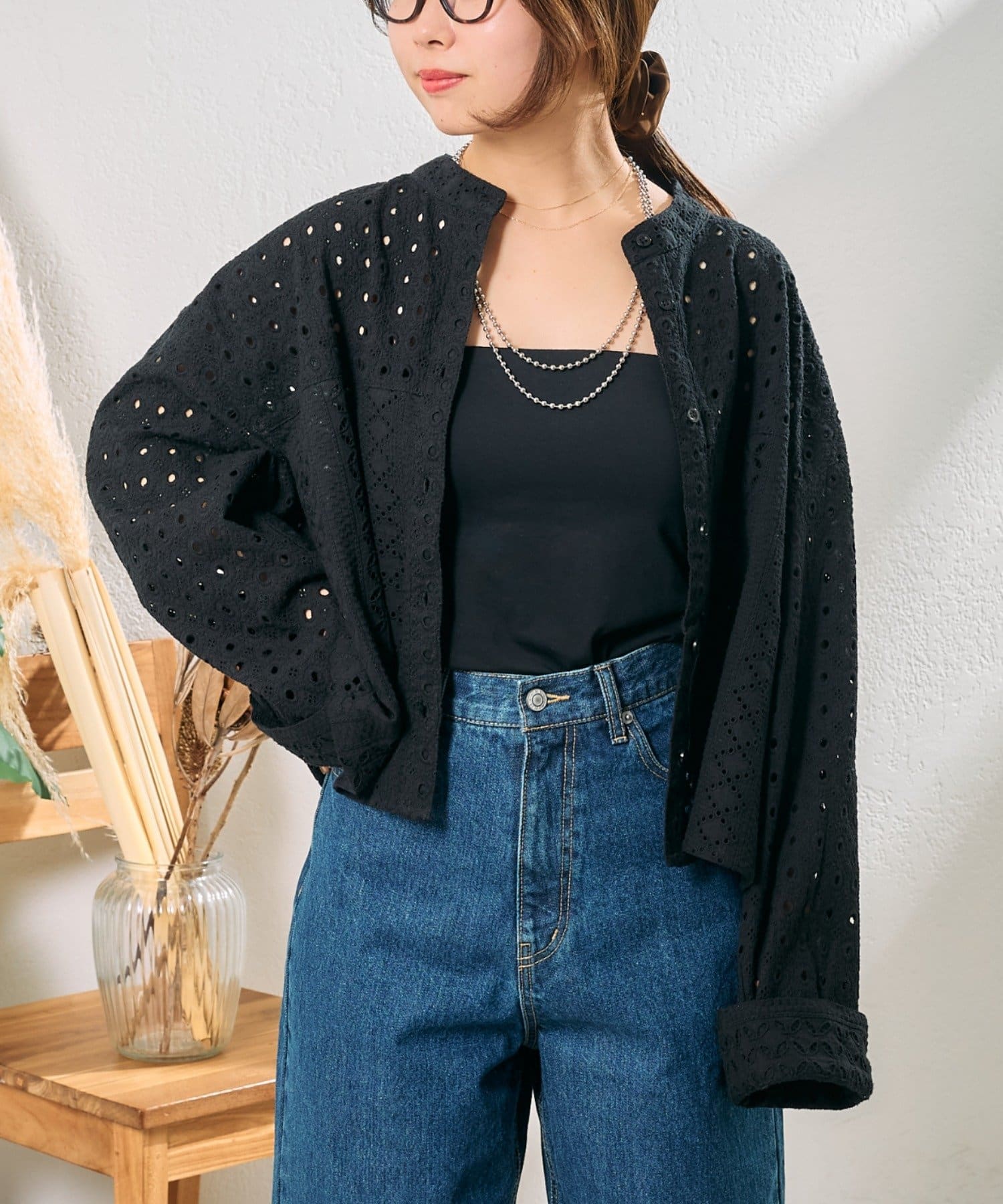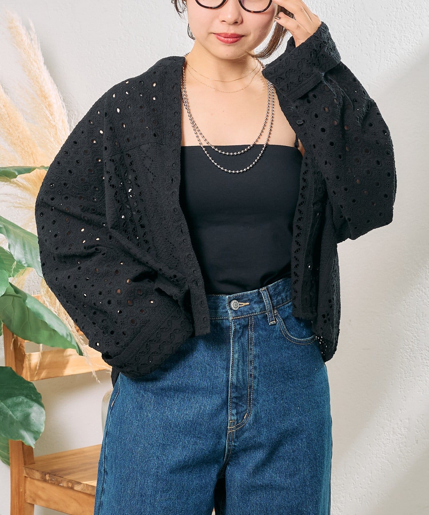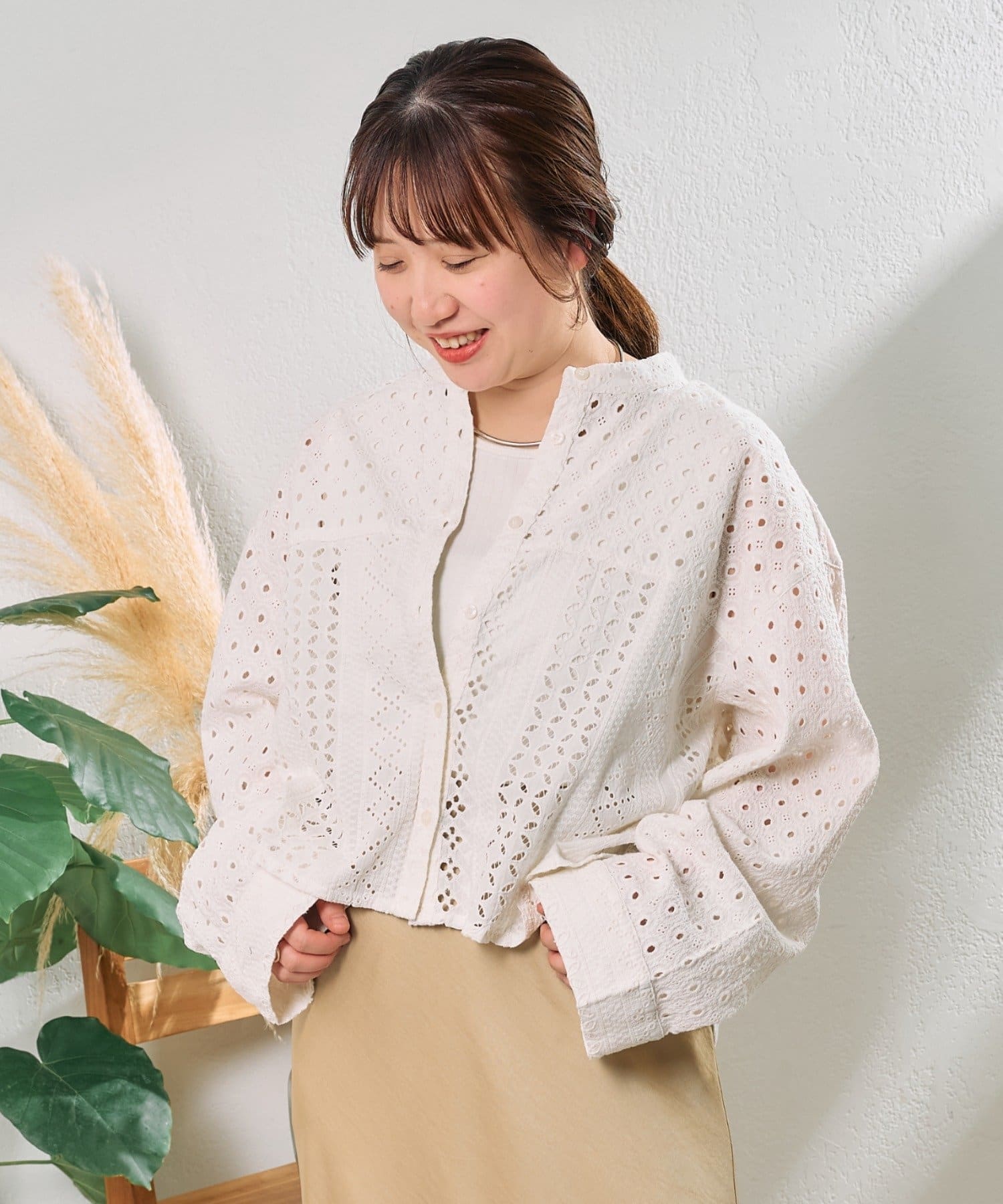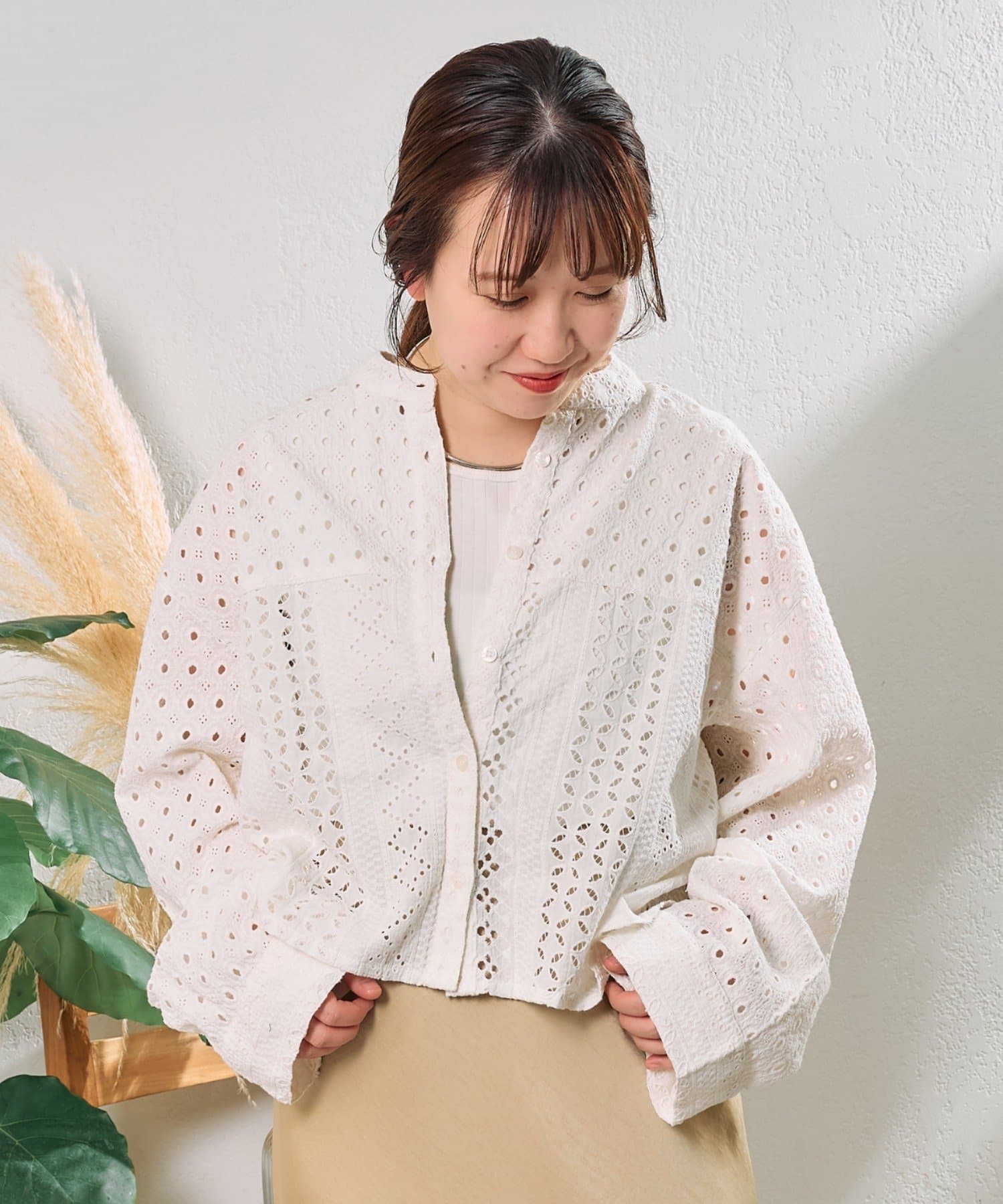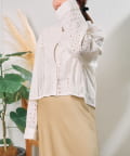 【From India】切替カットワークレースクロップド丈オーバーシャツ