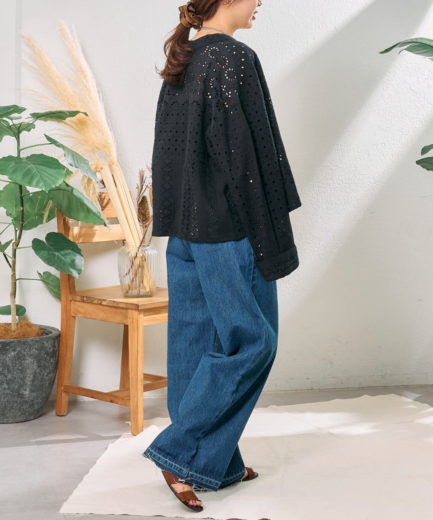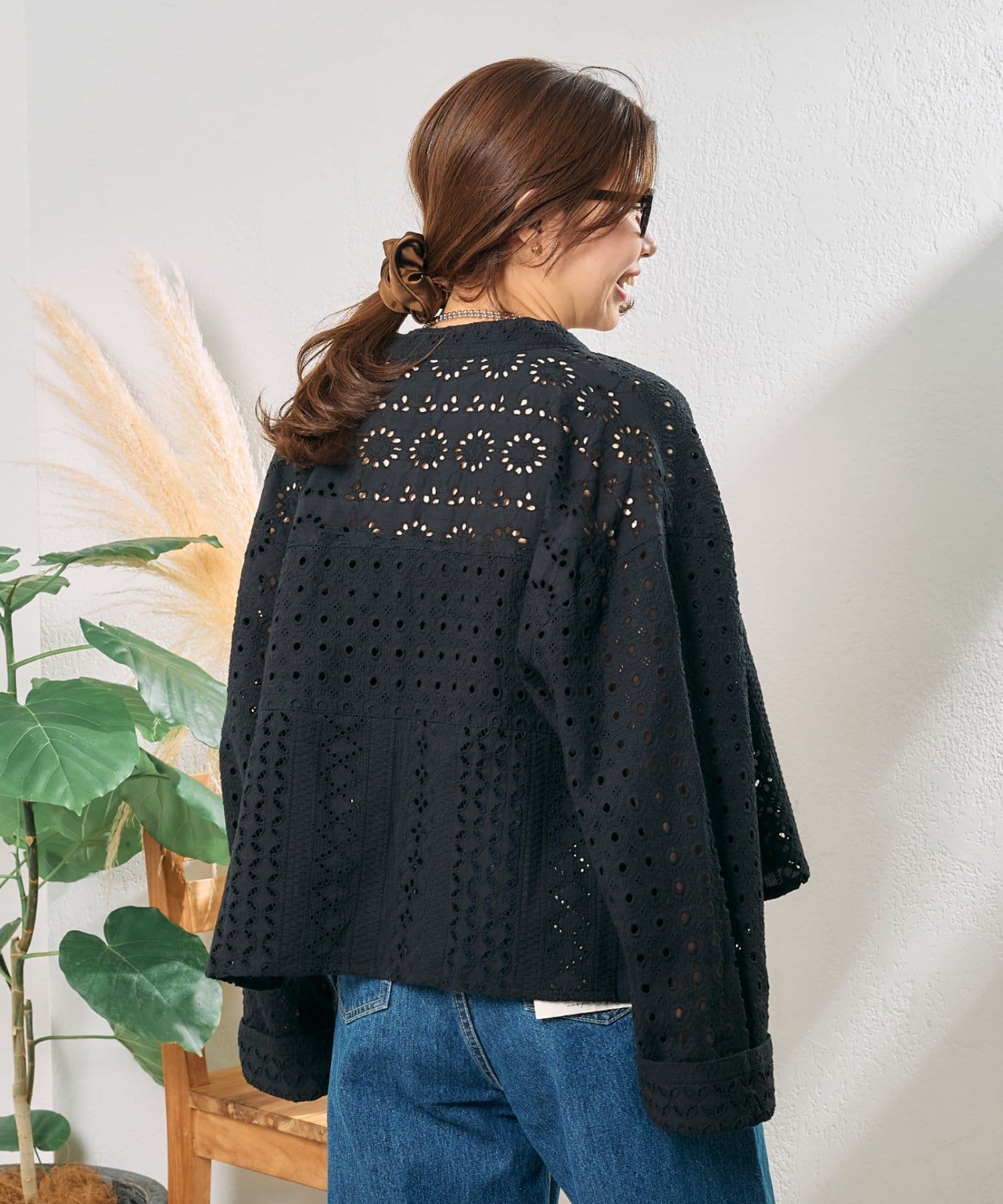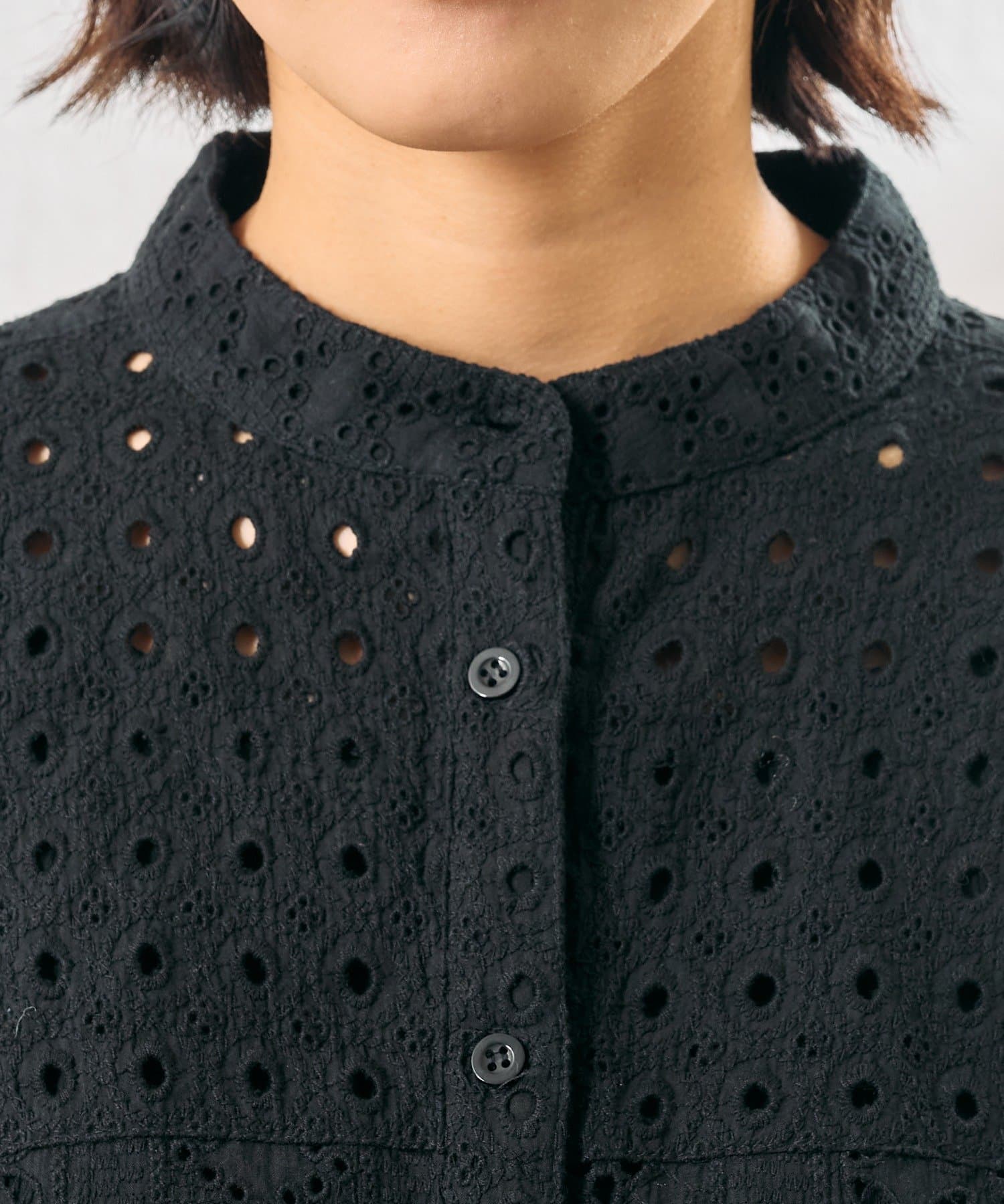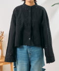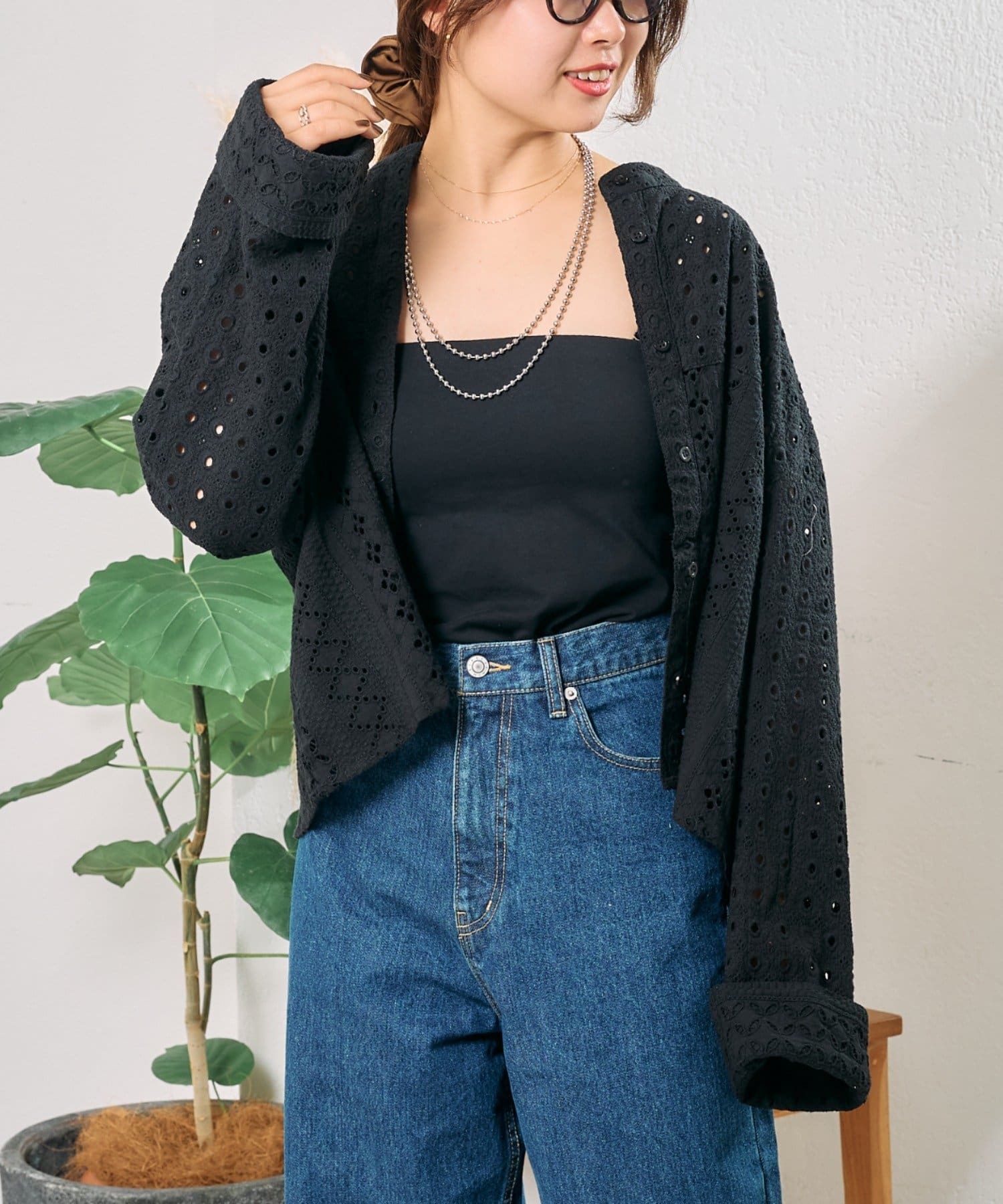 【From India】切替カットワークレースクロップド丈オーバーシャツ