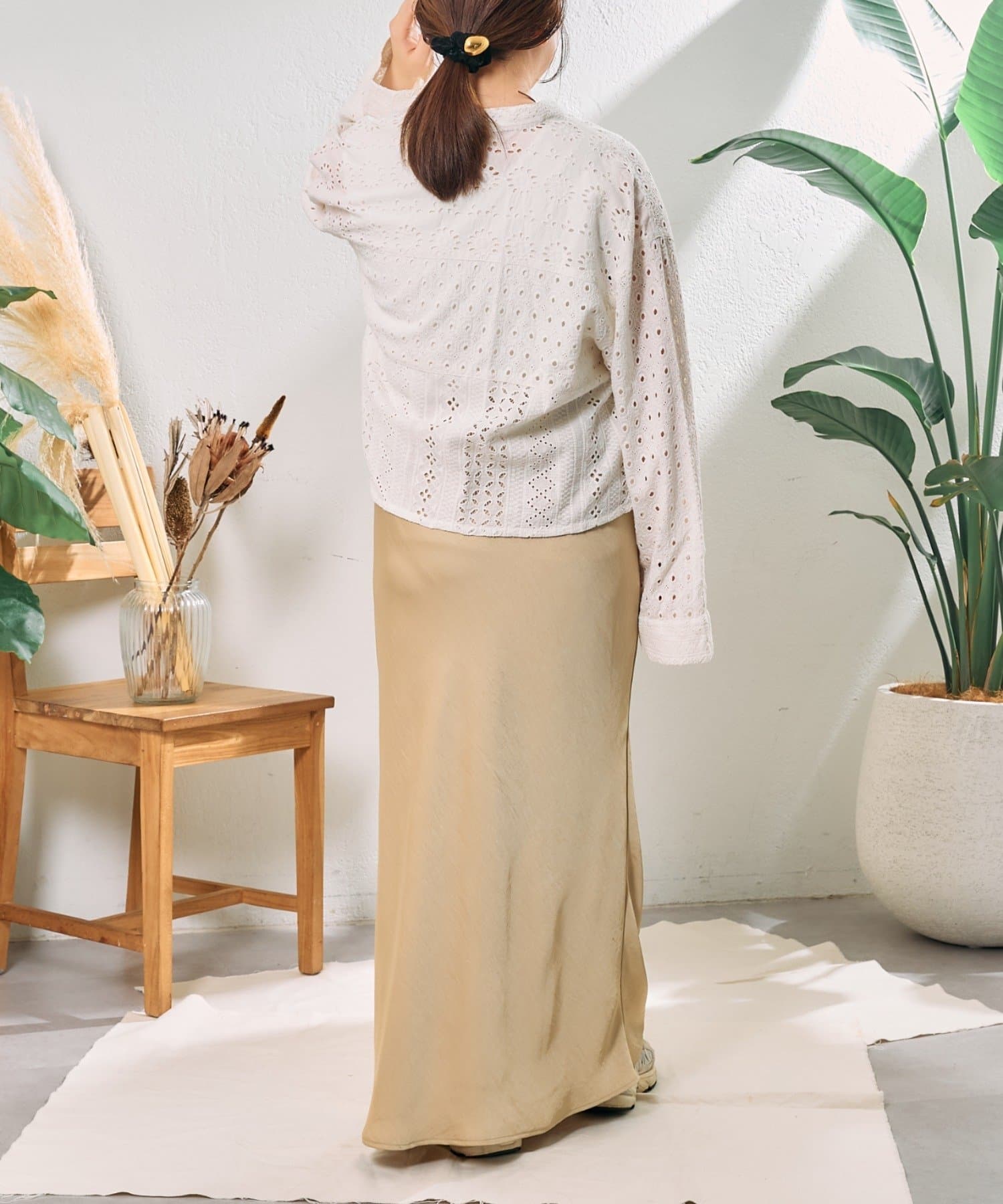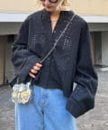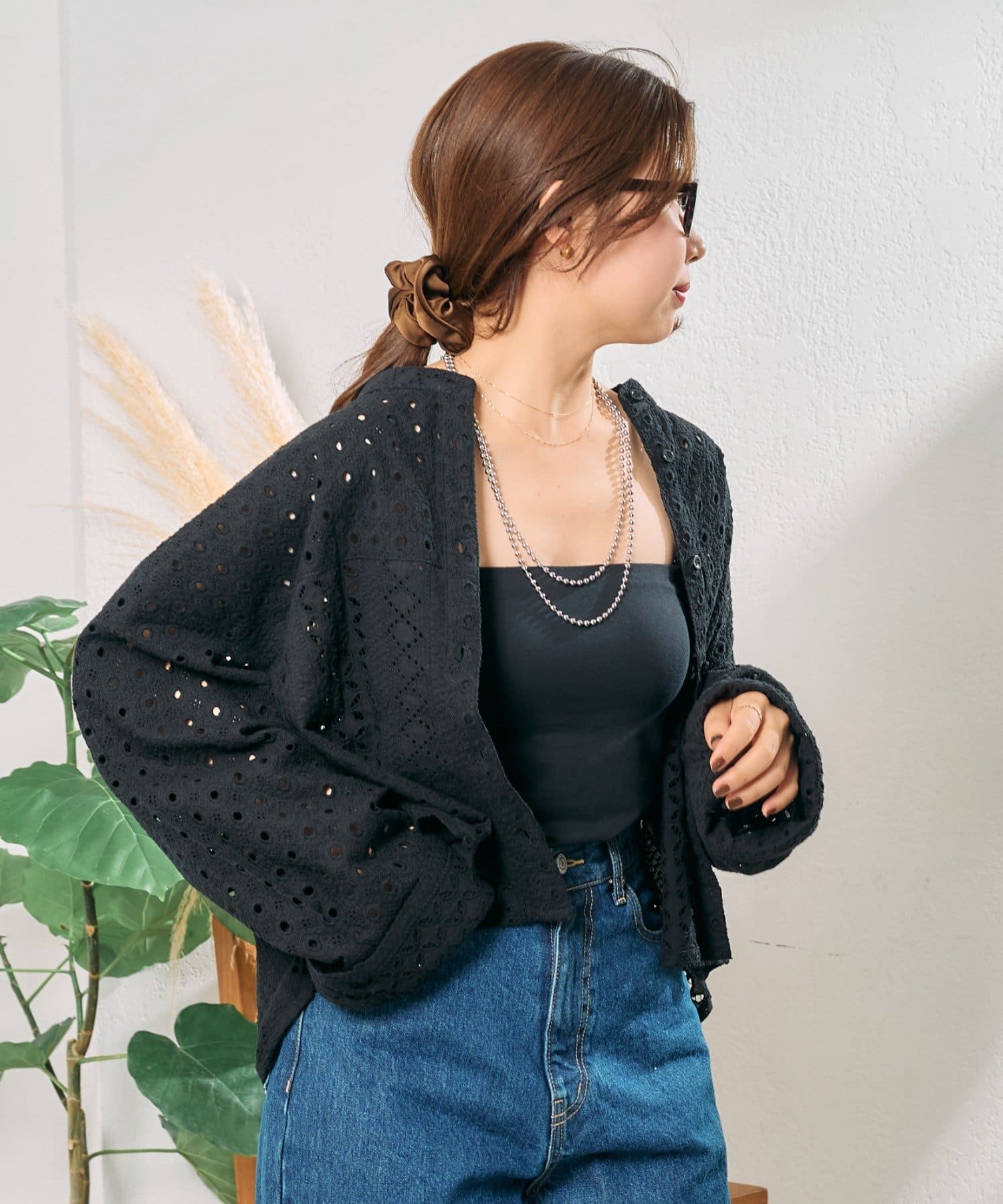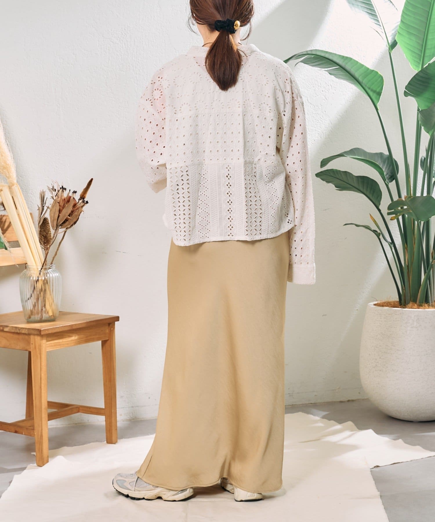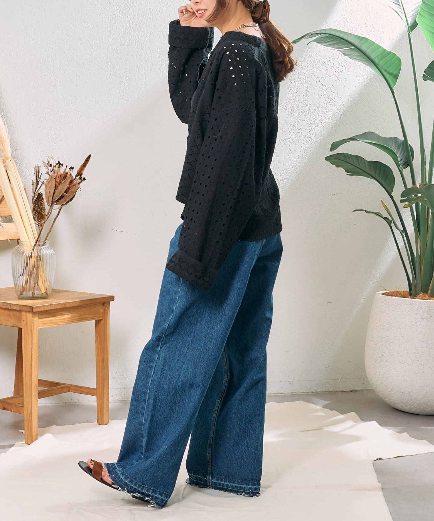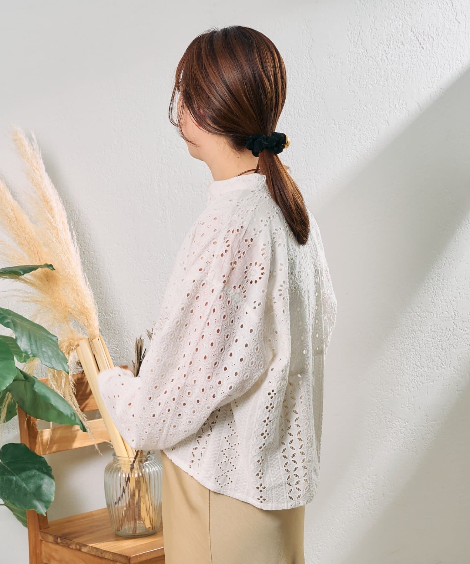【From India】切替カットワークレースクロップド丈オーバーシャツ