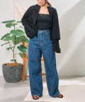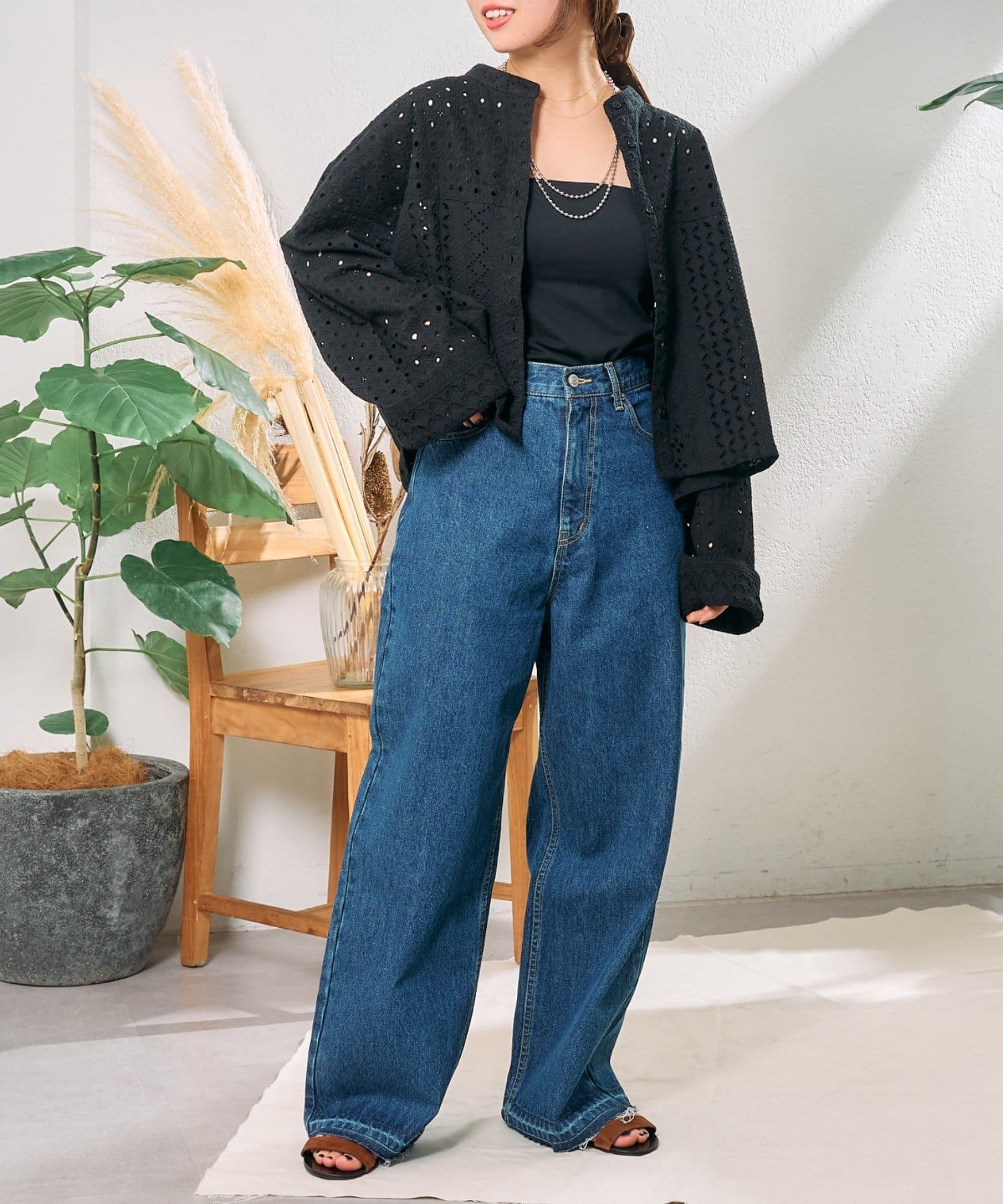デニムとのスタイリングでミックス感あるスタイリングがオススメ。