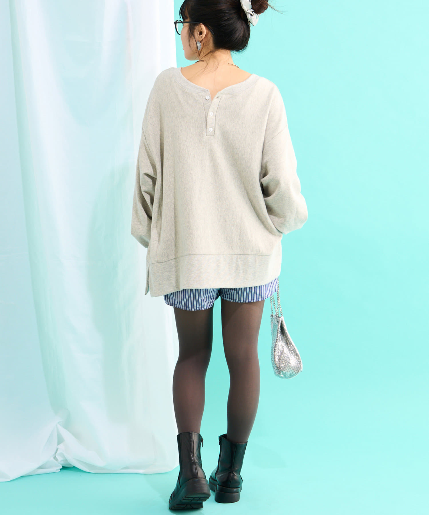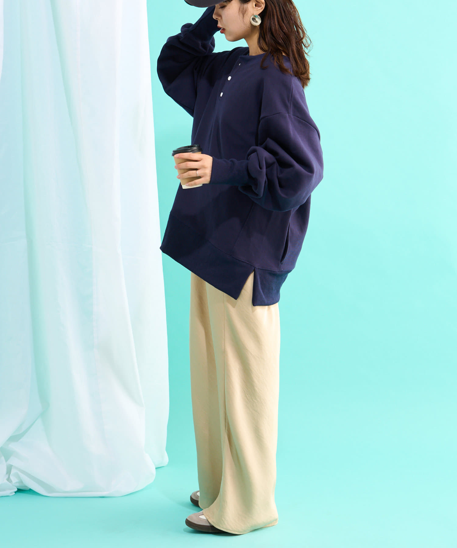 腰回りが隠れるルーズな丈感で、合わせるアイテムを選ばず着て頂けます!