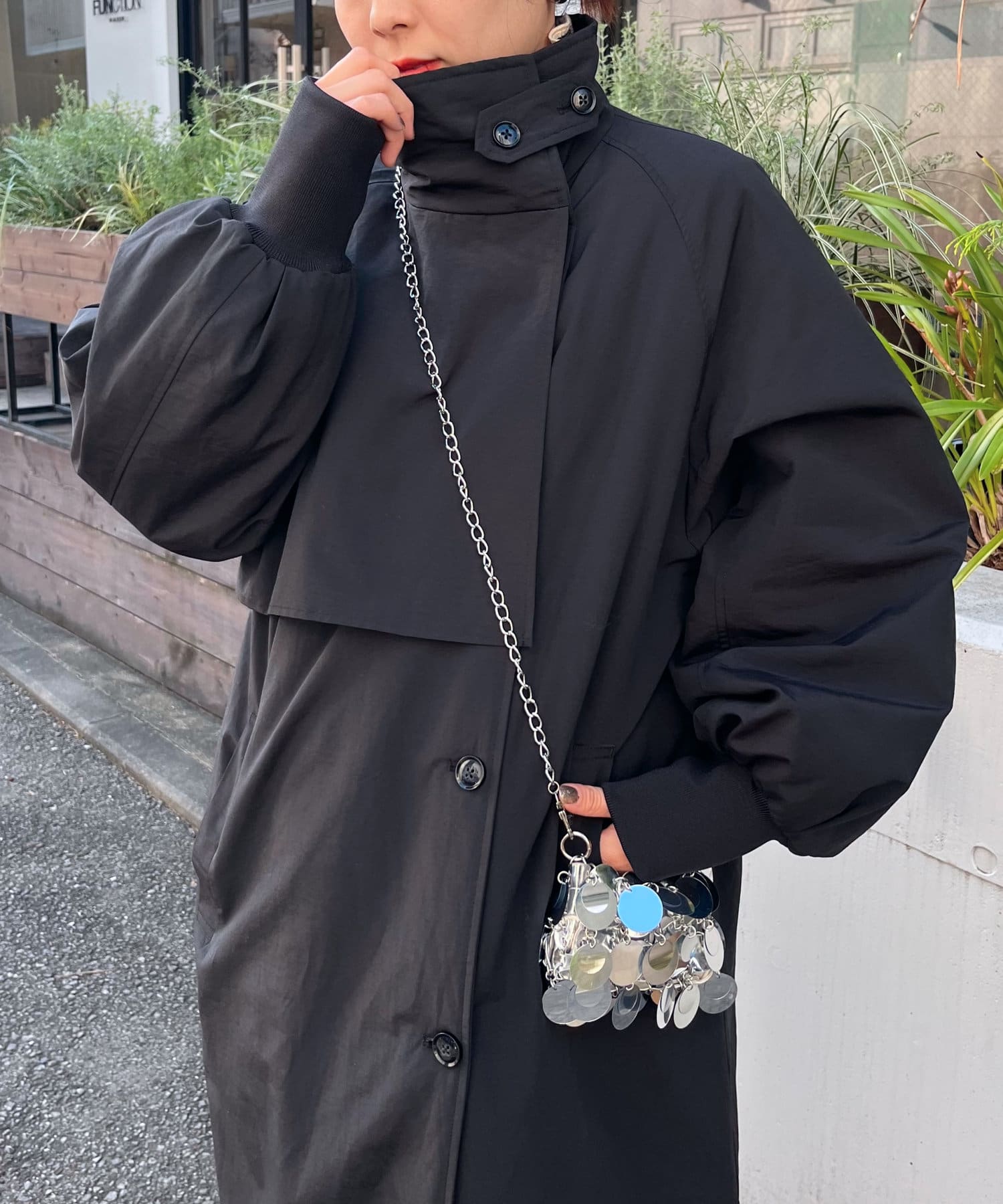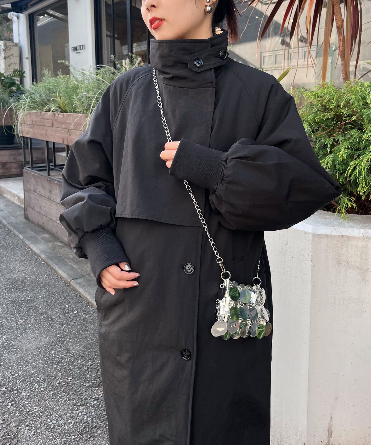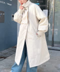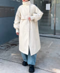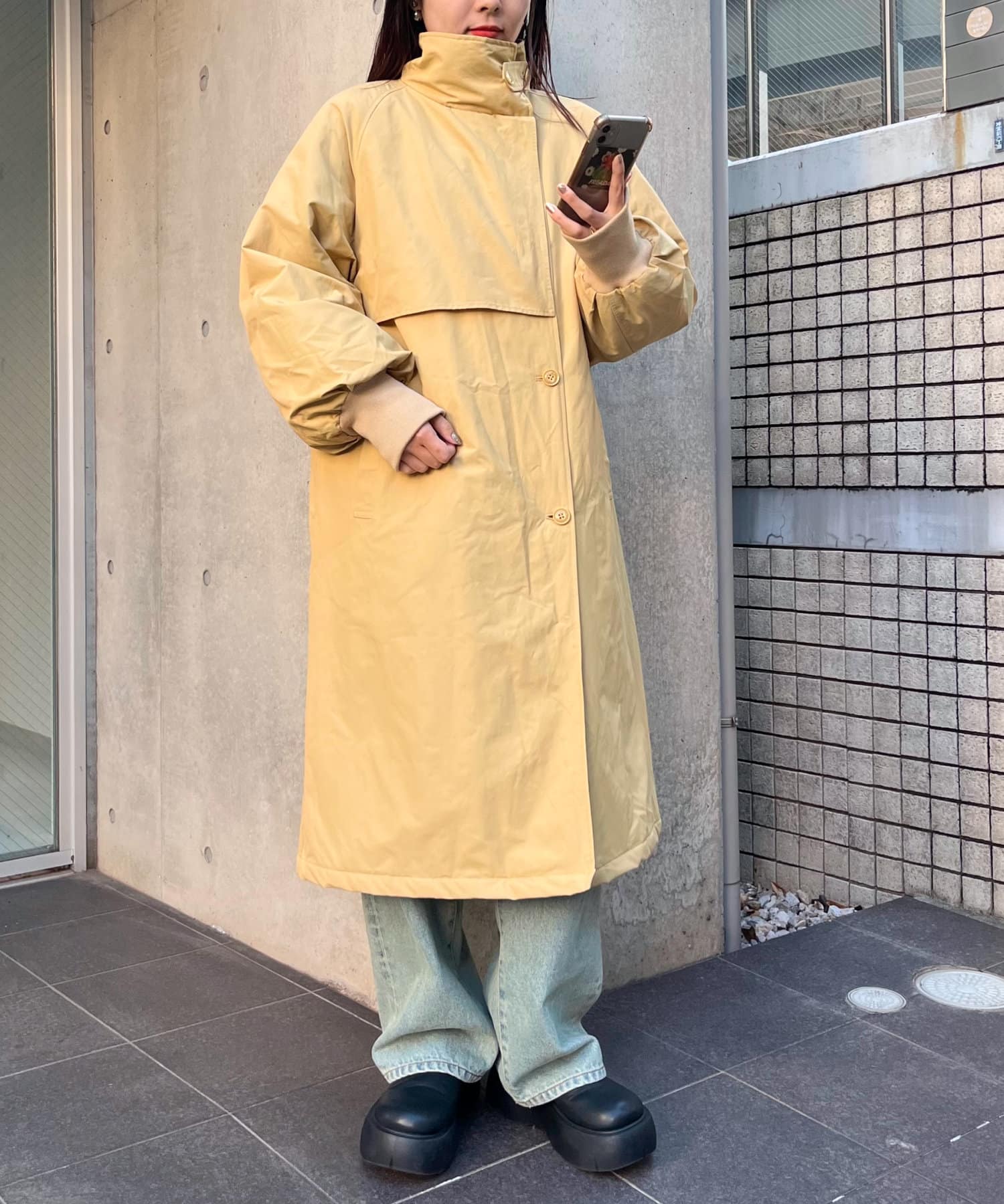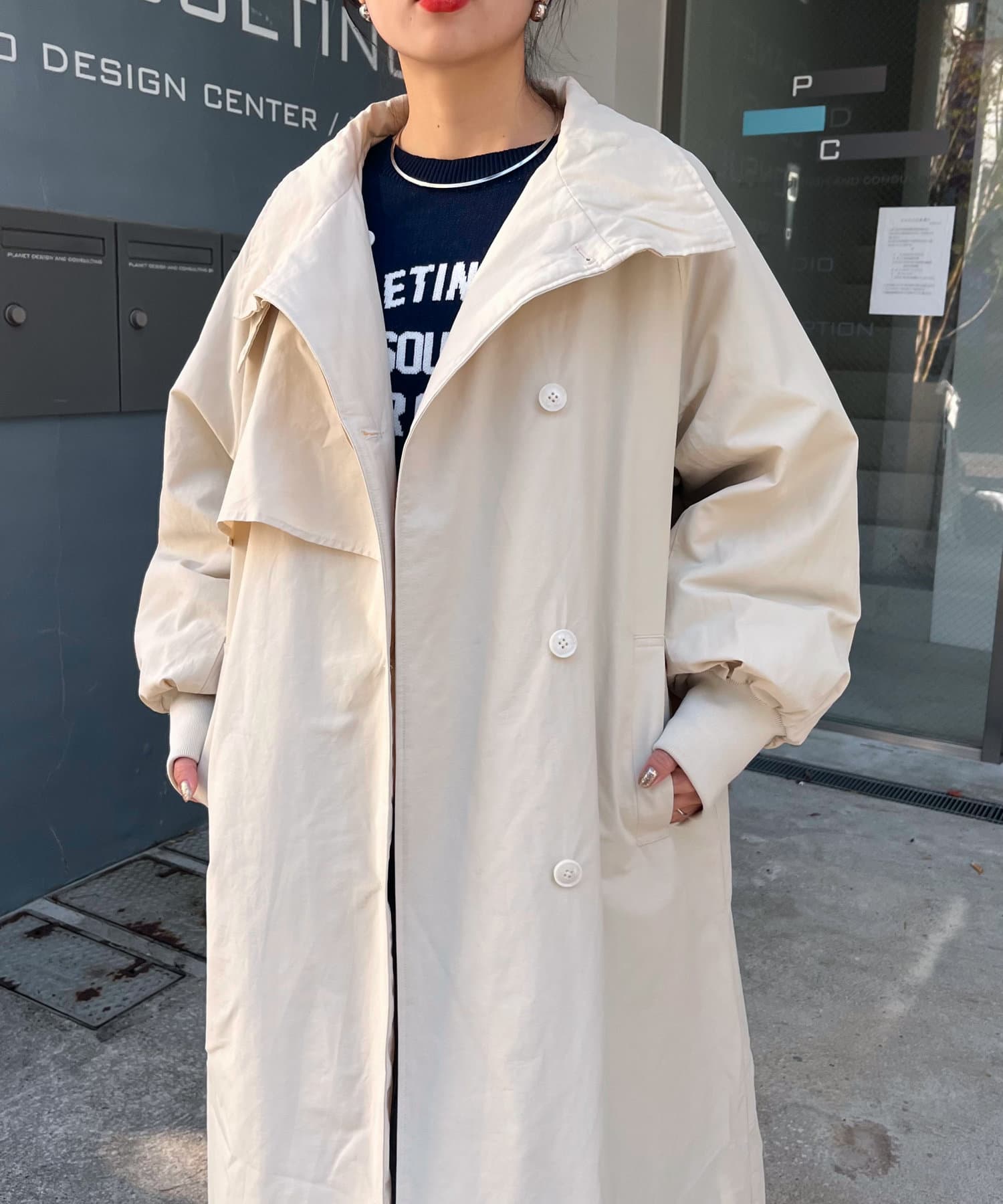 衿はステンカラーとスタンドカラーの2way仕様のロングコート。