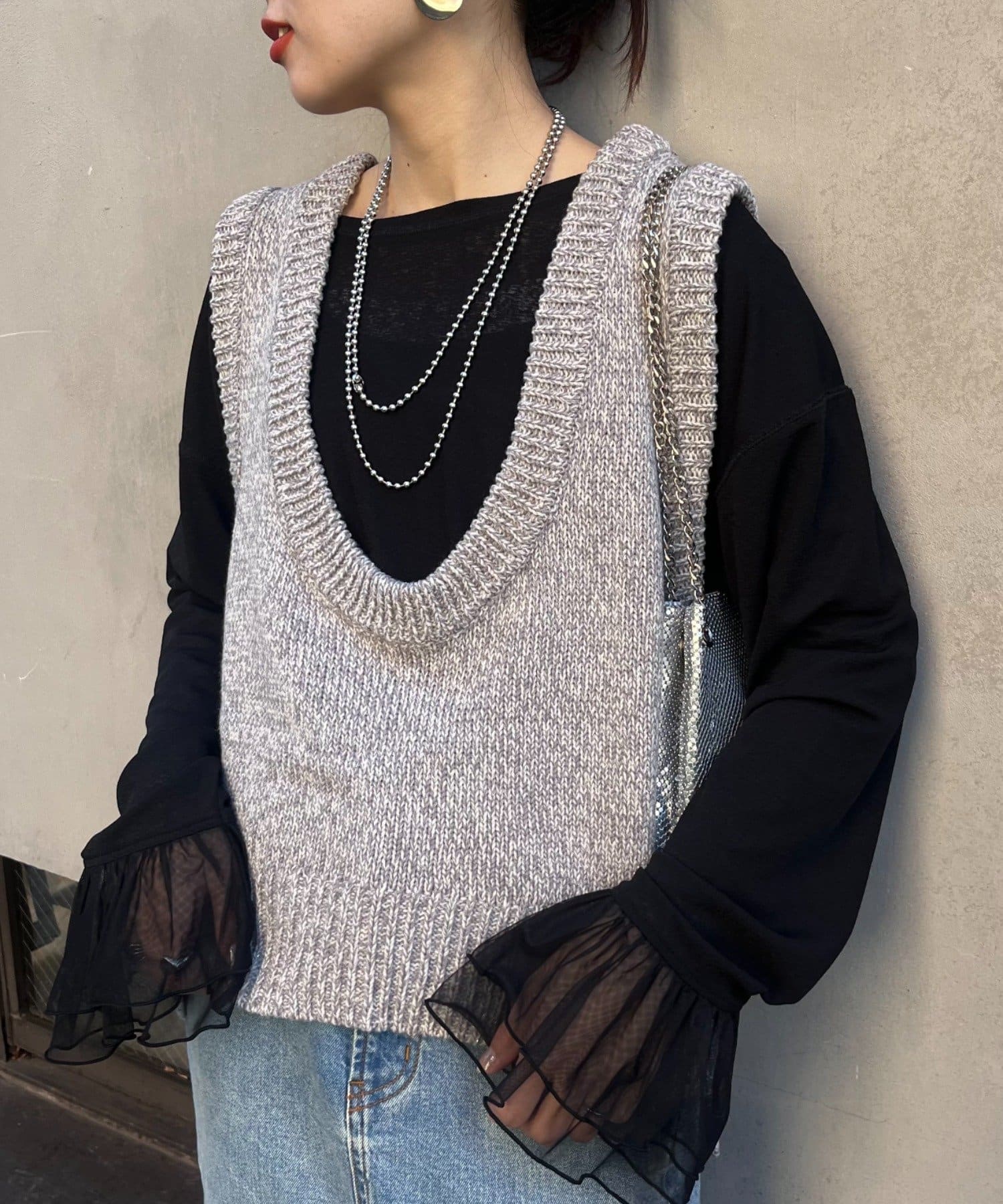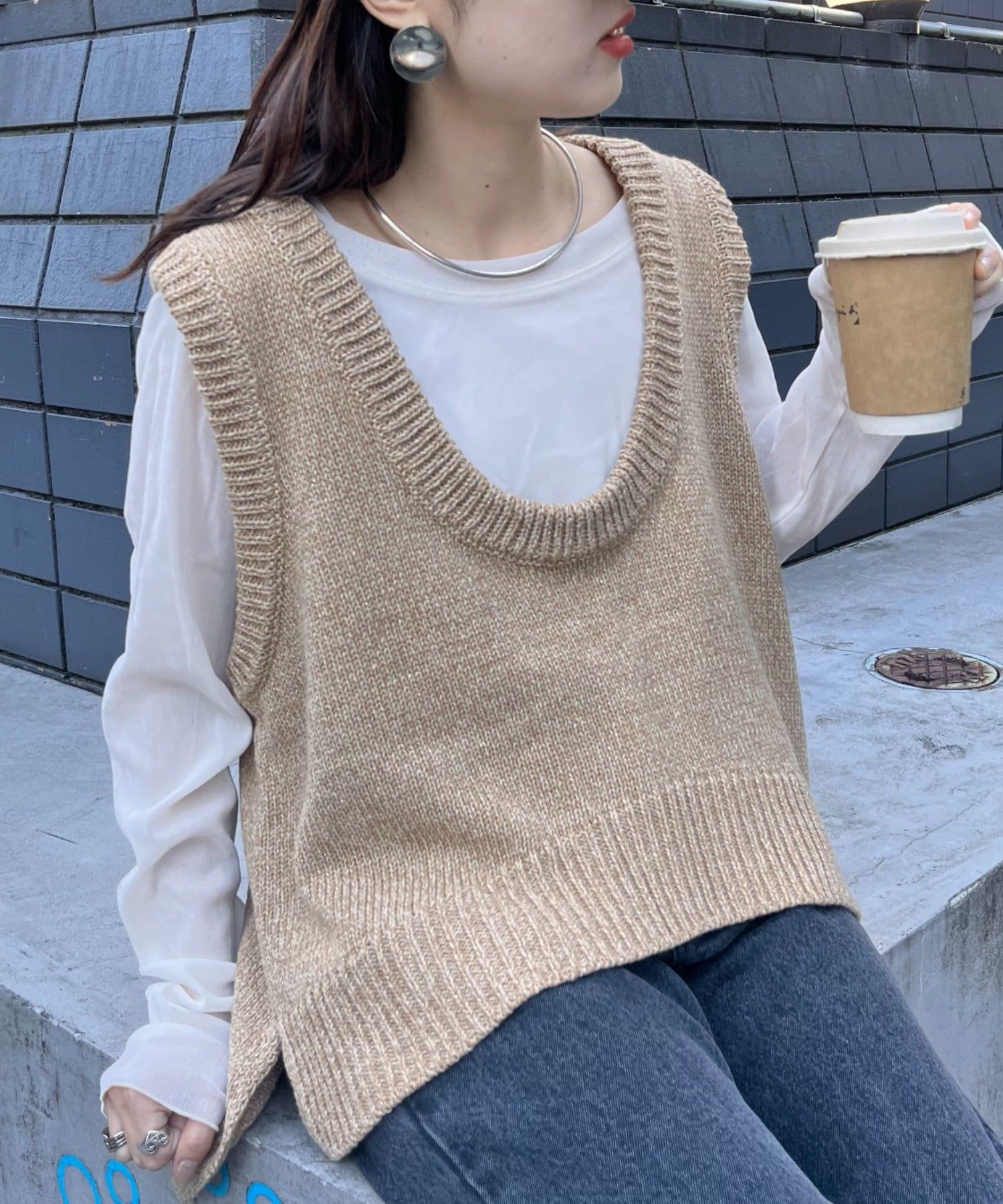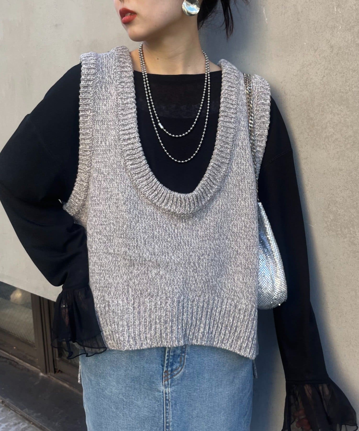 【2025年S/S新作】深Uネックメランジラメニットベスト