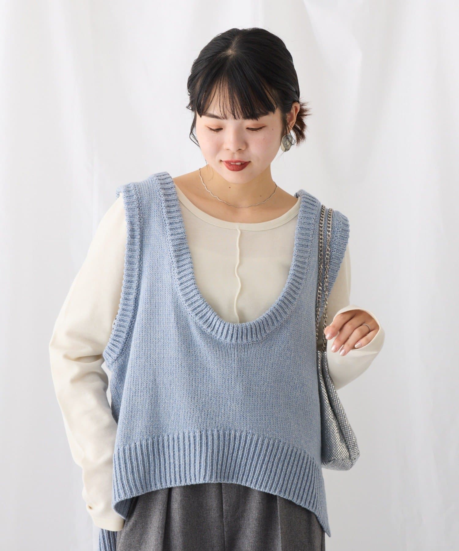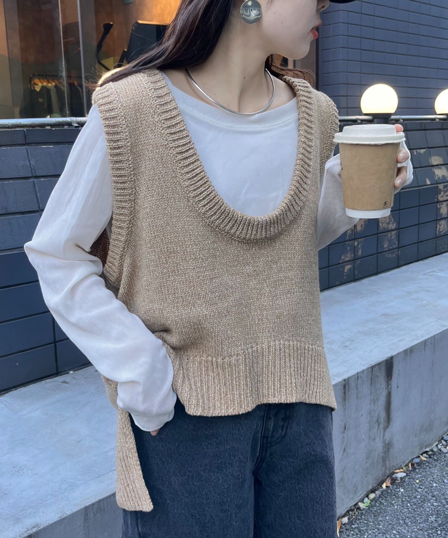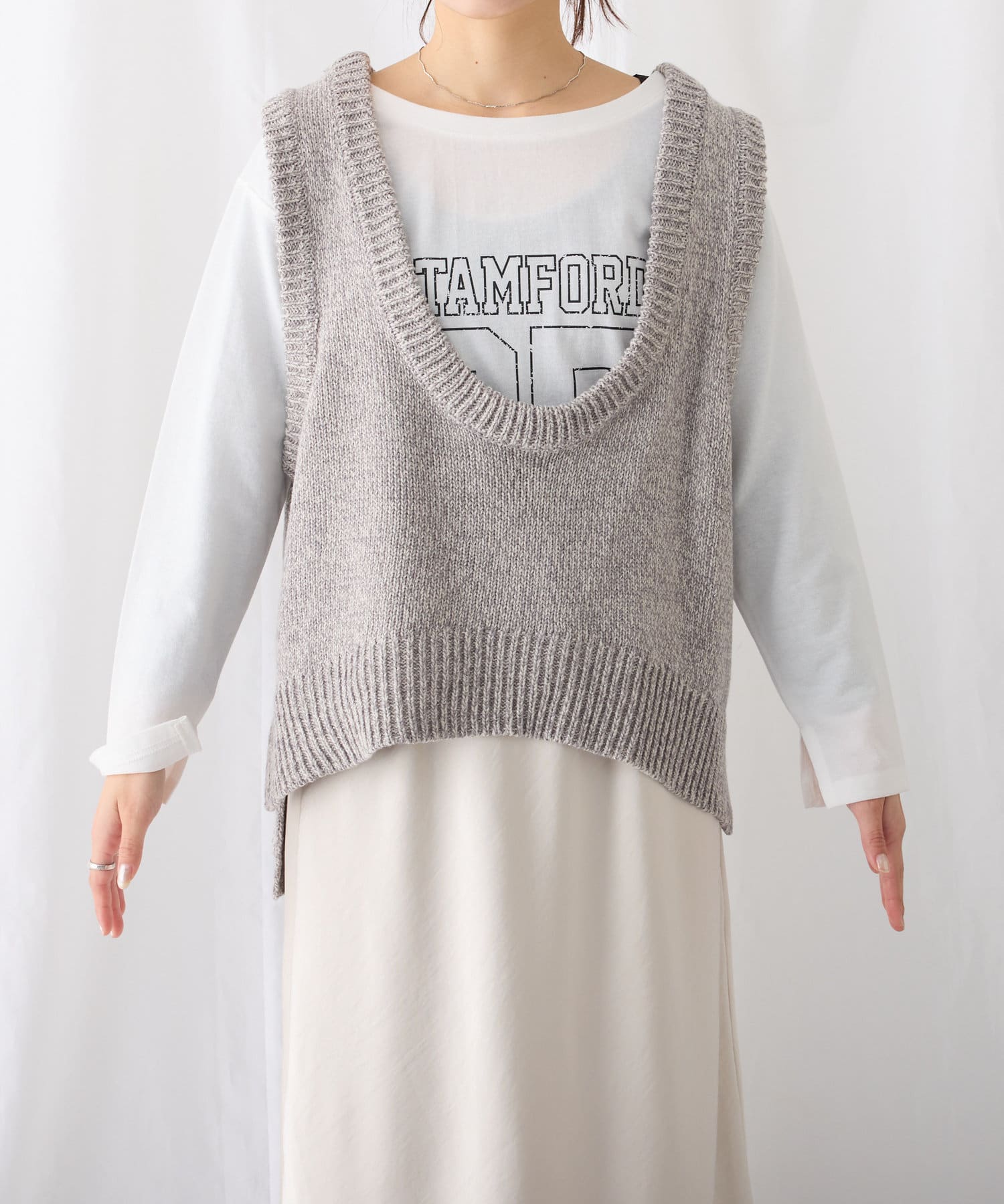 【2025年S/S新作】深Uネックメランジラメニットベスト
