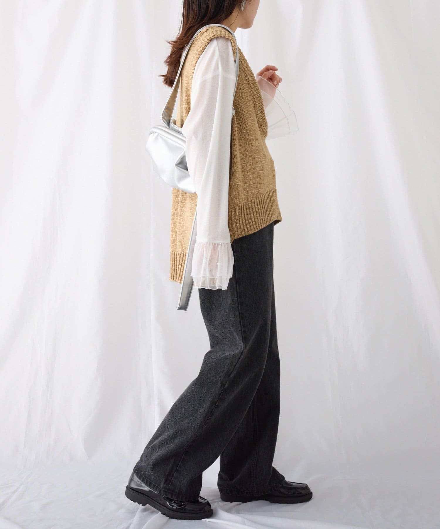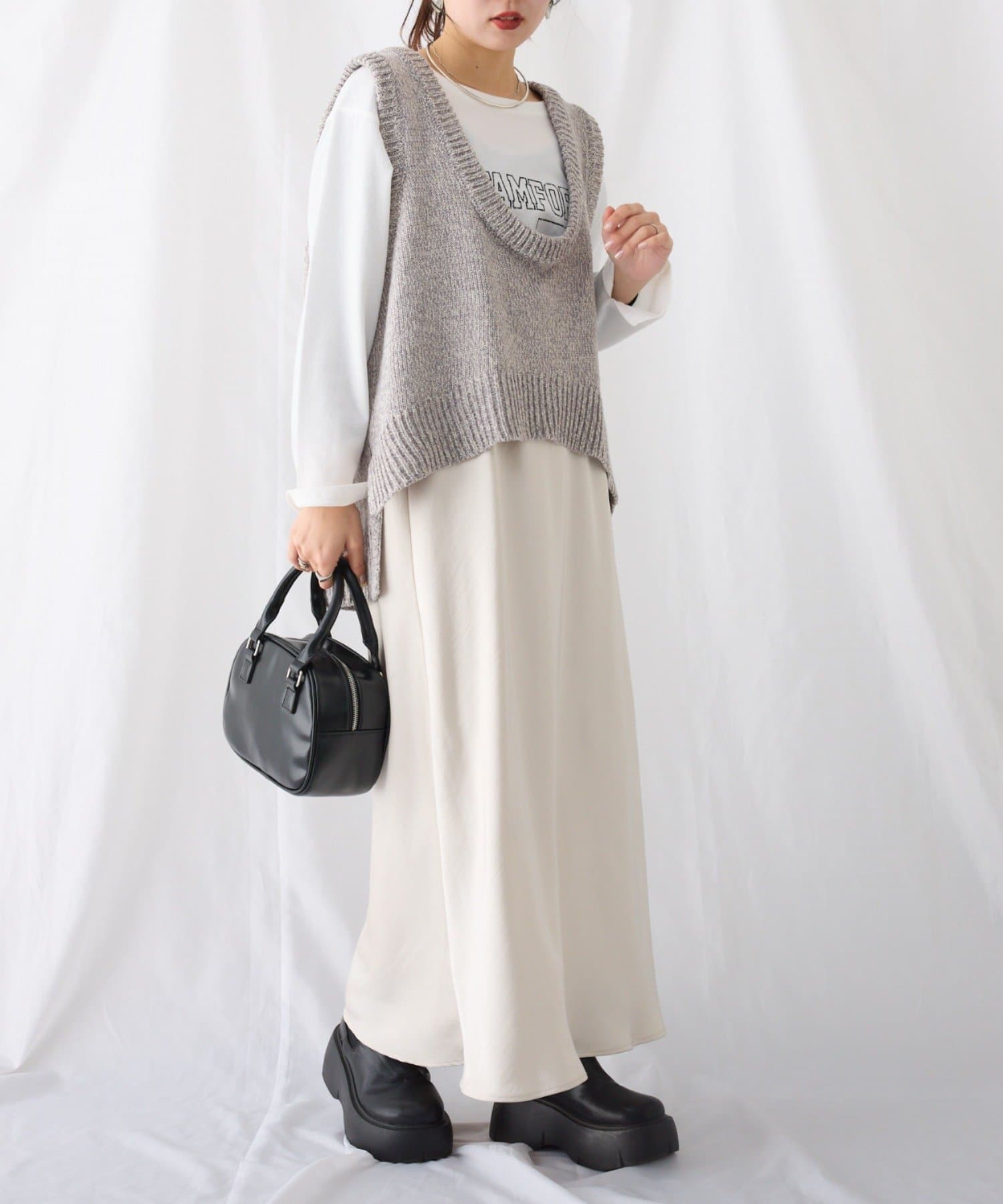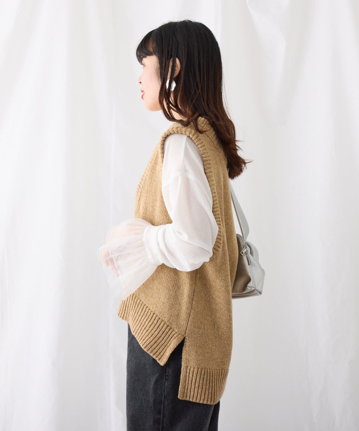 肌寒い季節はロンTeeやタートルネックと合わせていただけます。