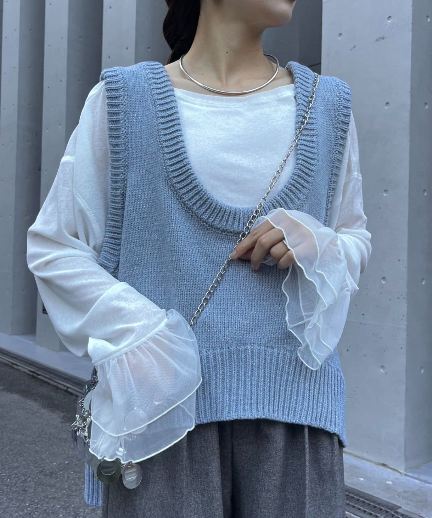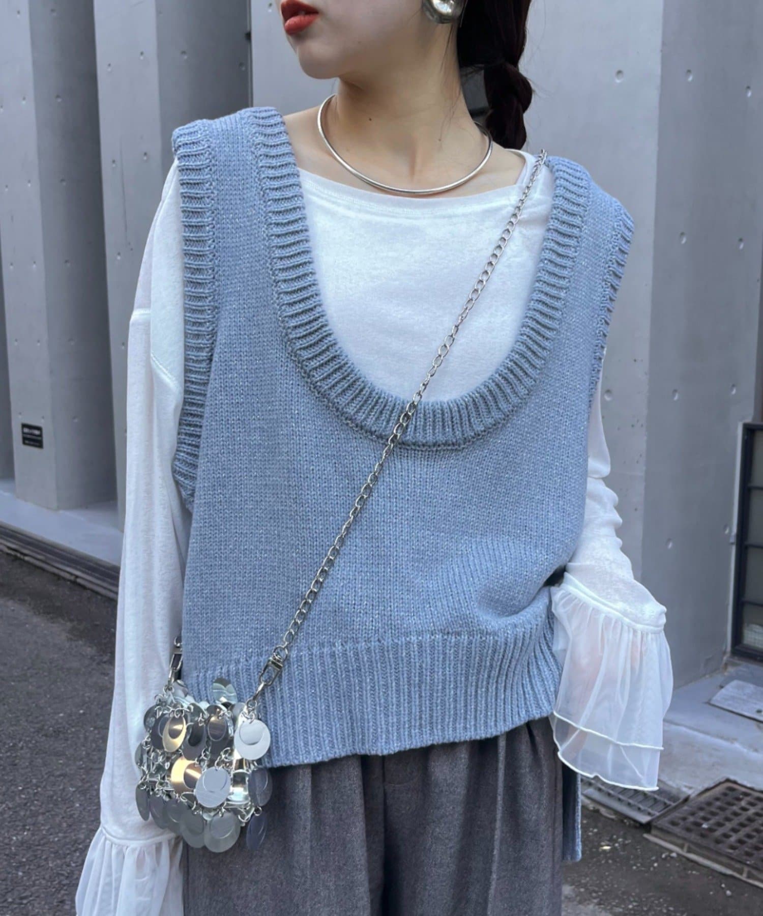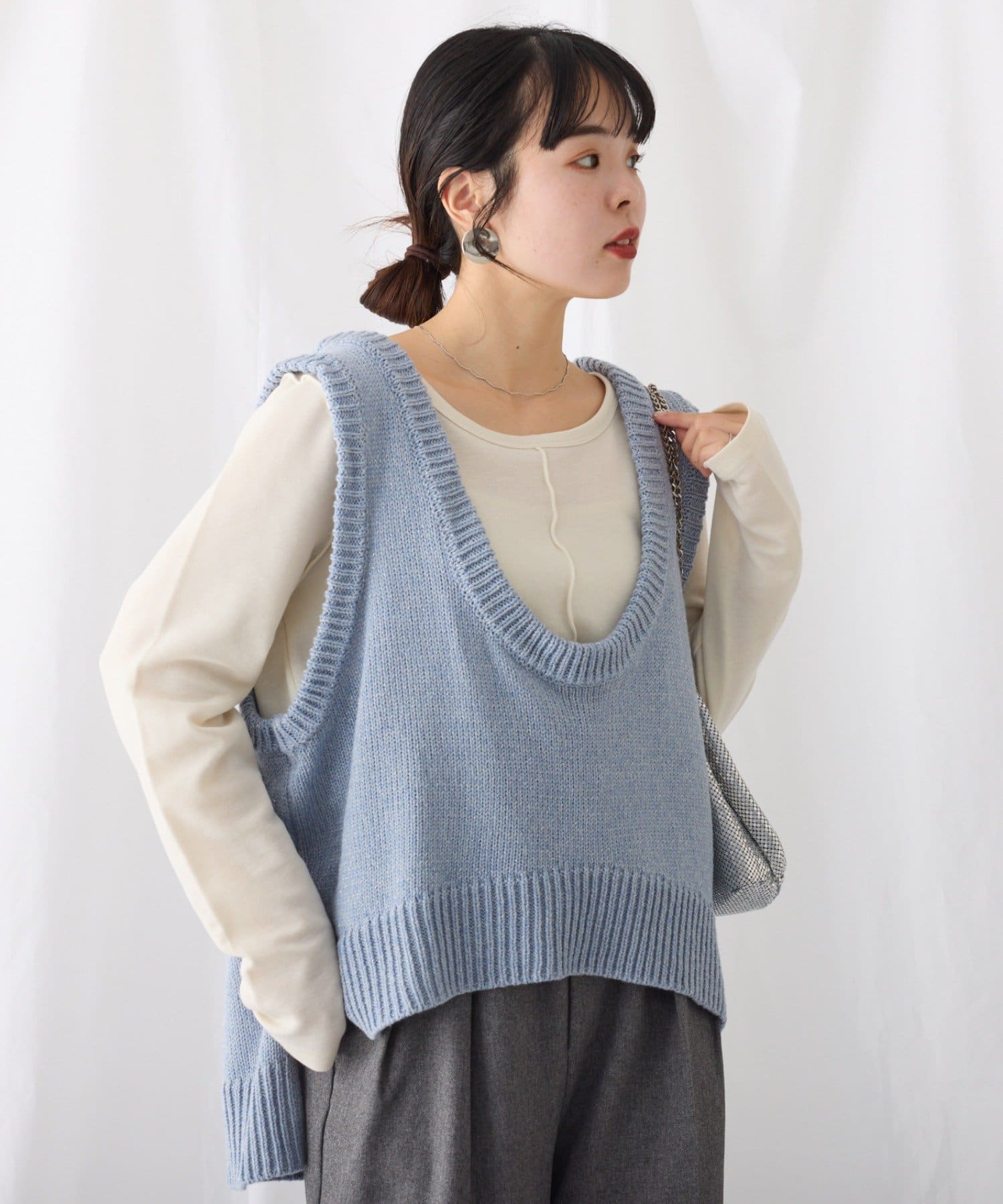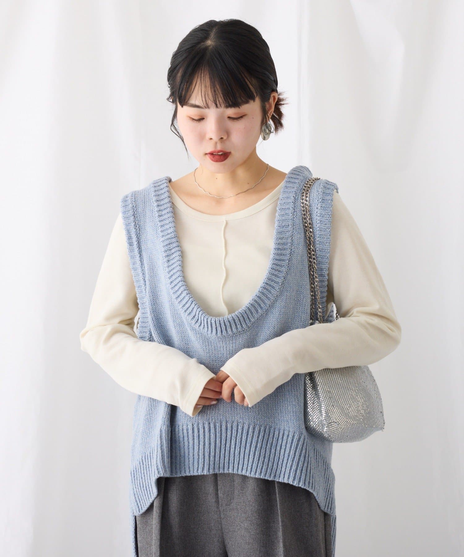 ラメニット+Uネックデザインでトレンド感◎
