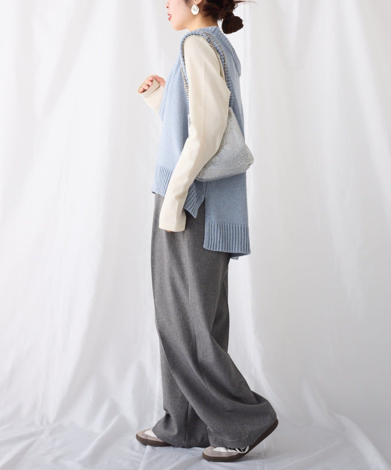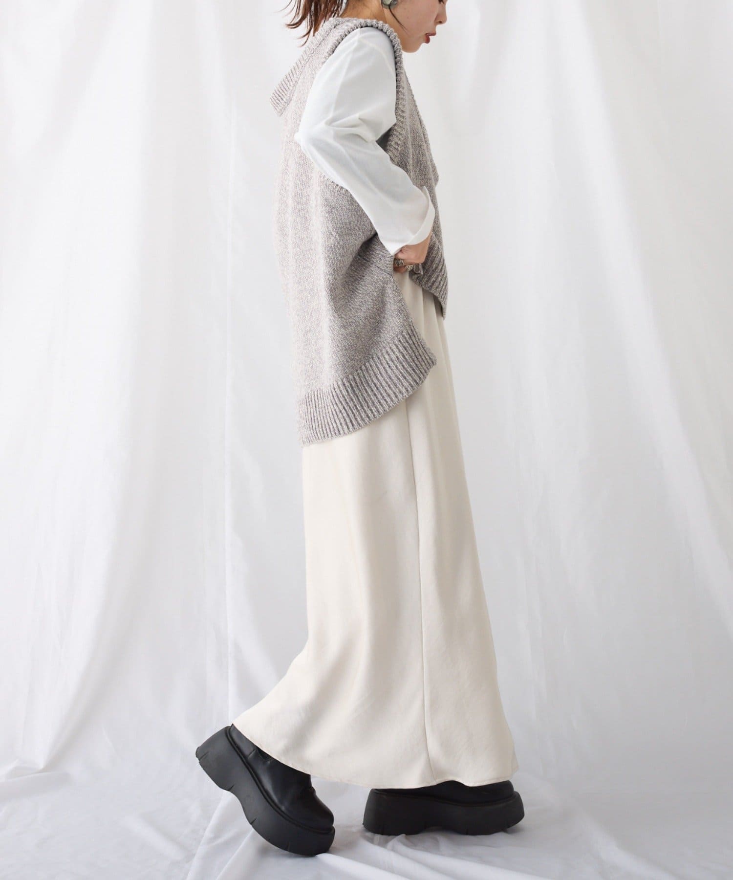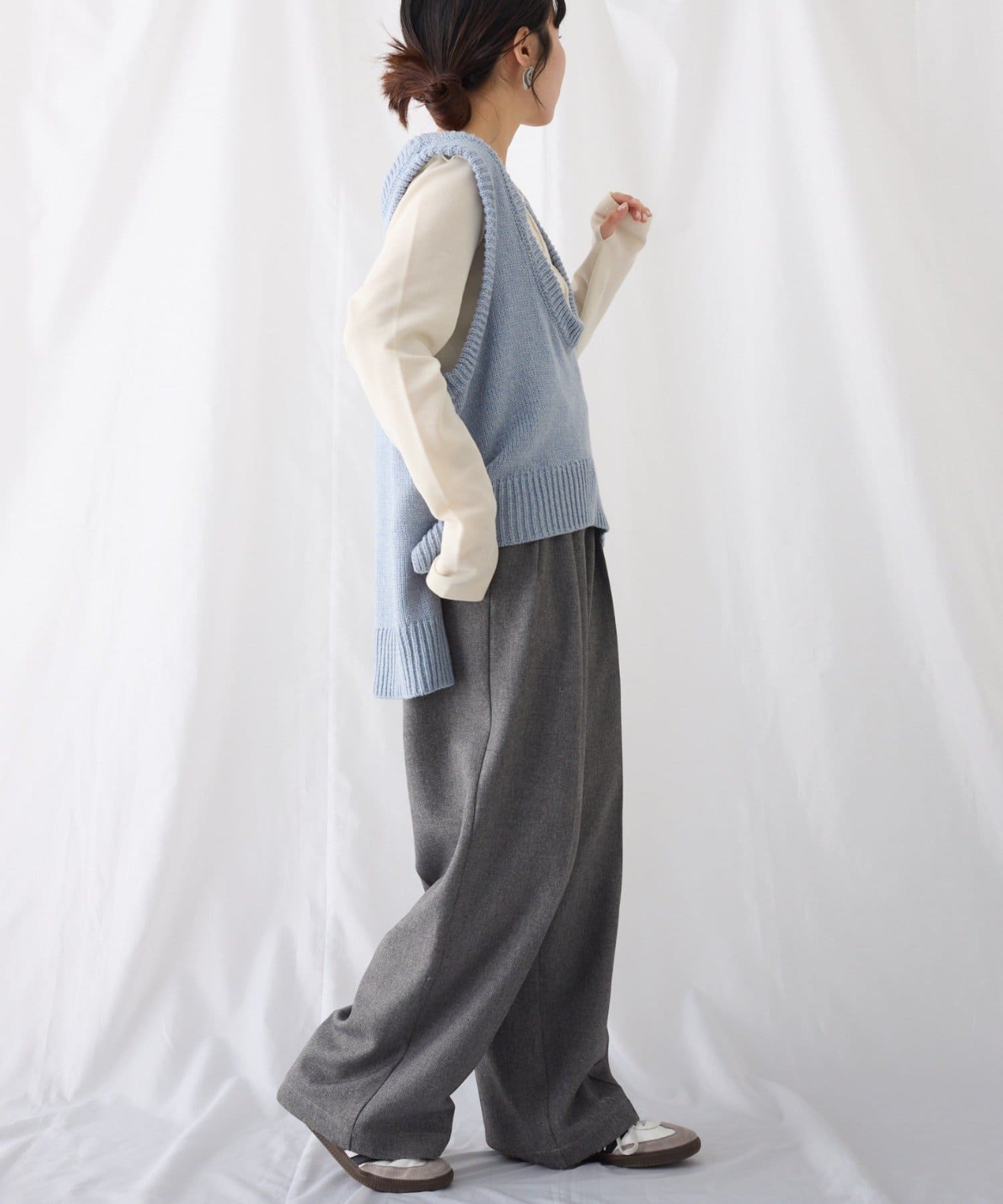 ボトムはワイドパンツからタイトなスカートとも相性よく着て頂けます◎