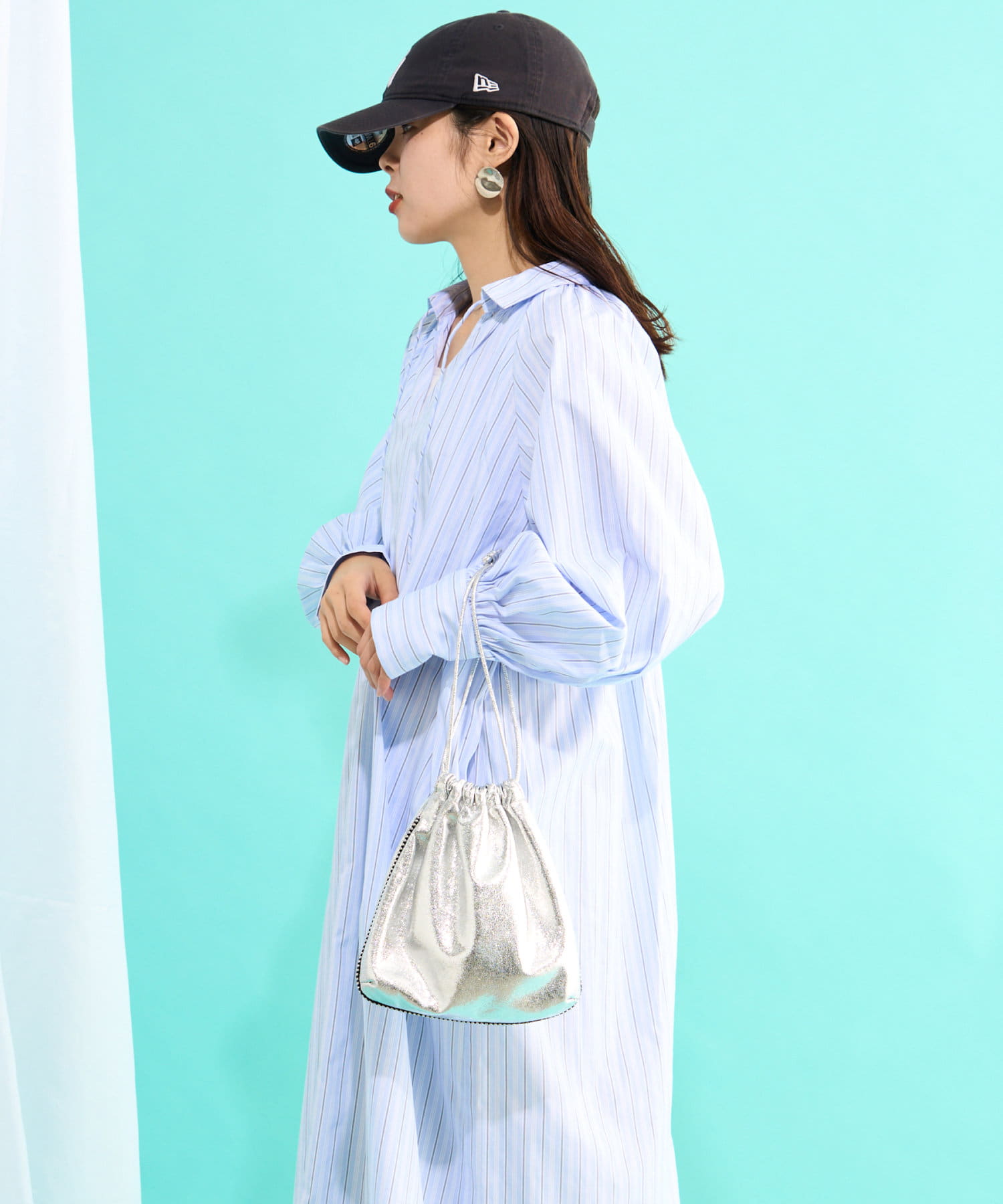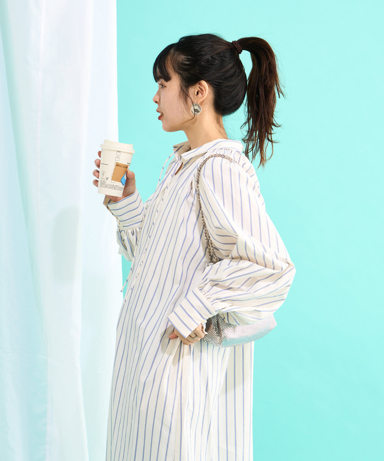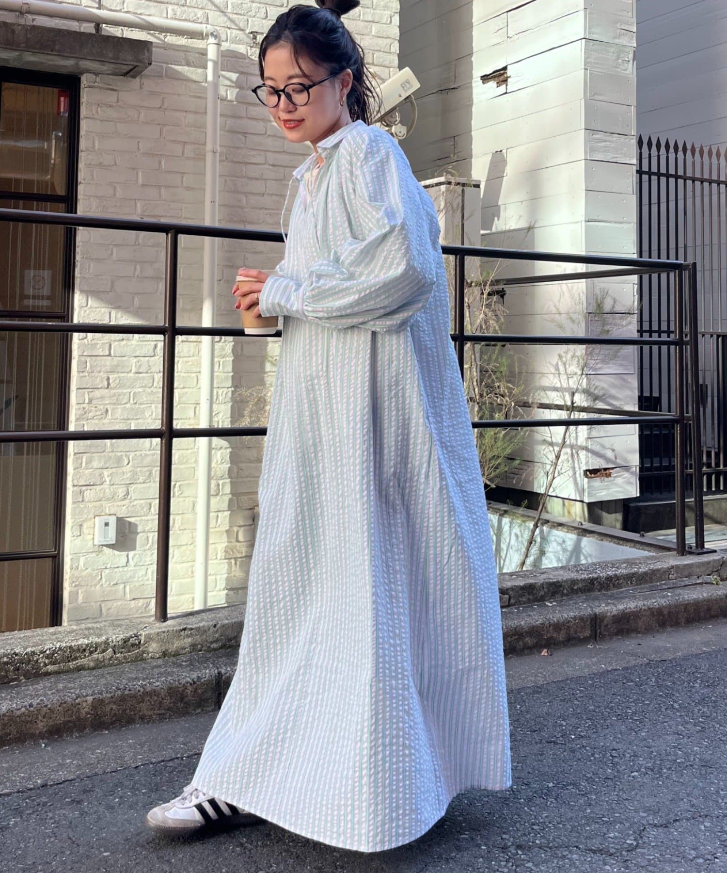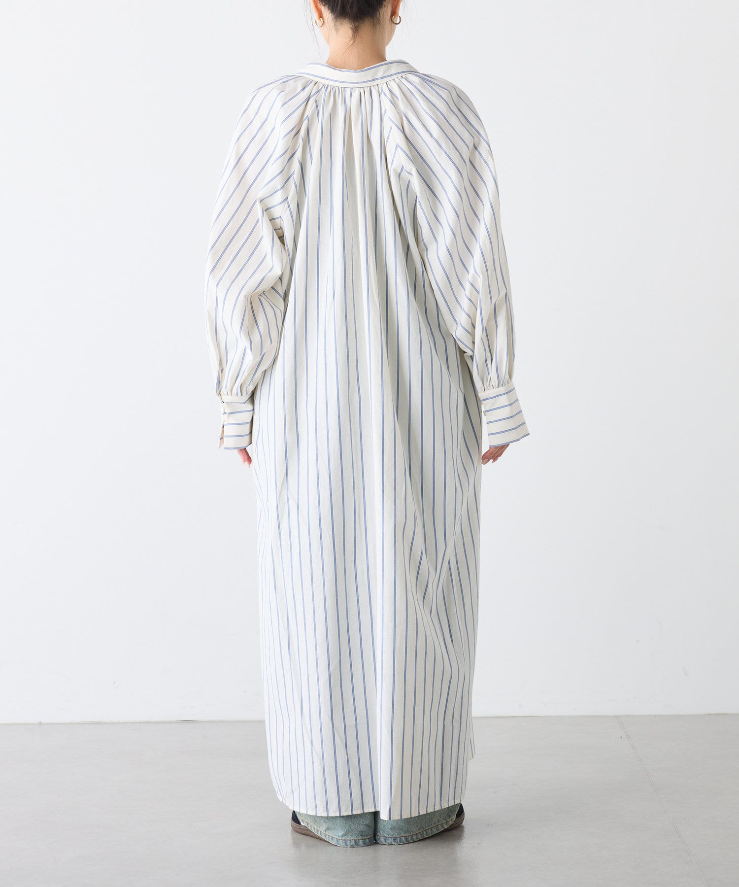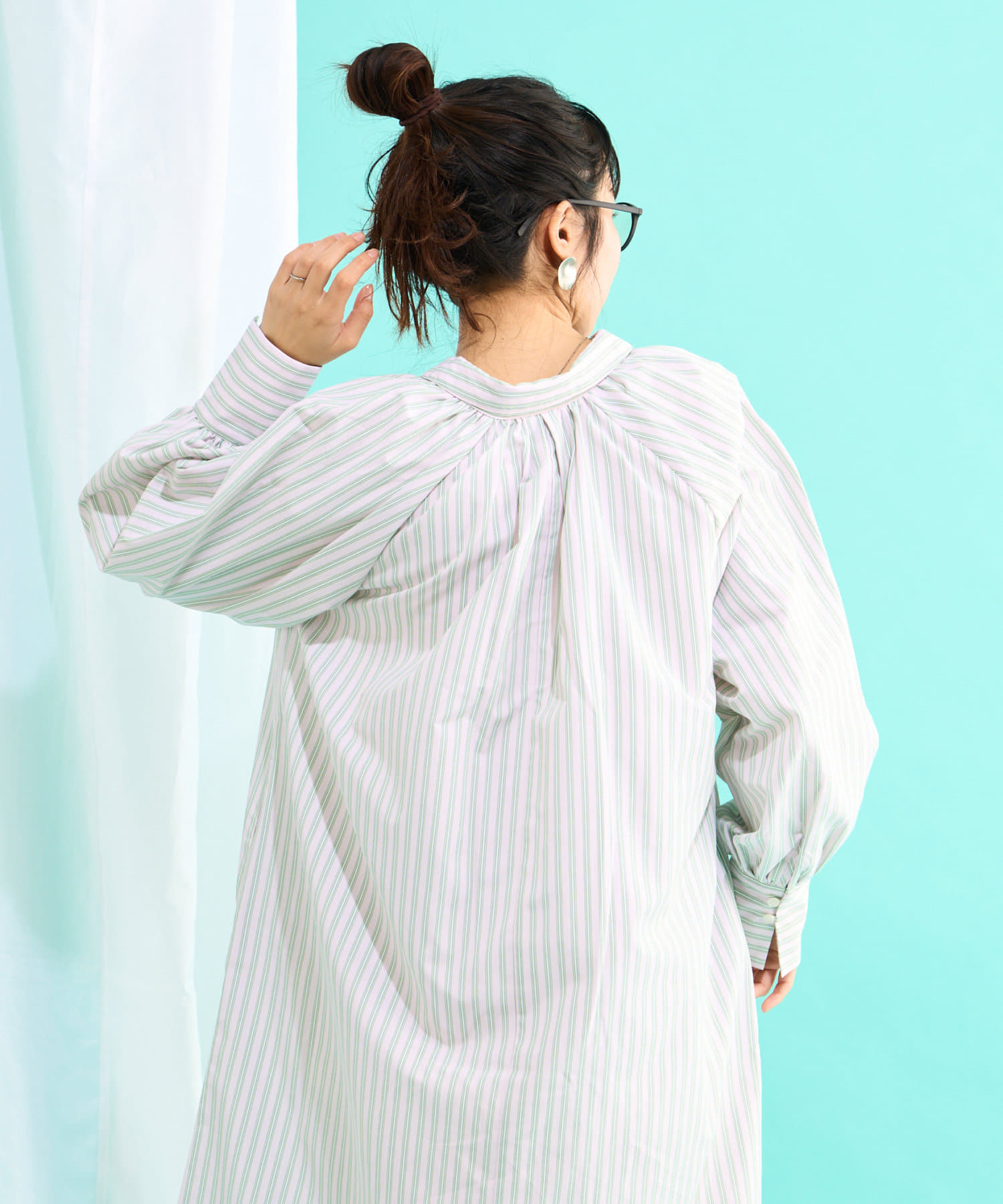 春らしいストライプが爽やかな、ゆったり大きめサイズのシャツワンピース。