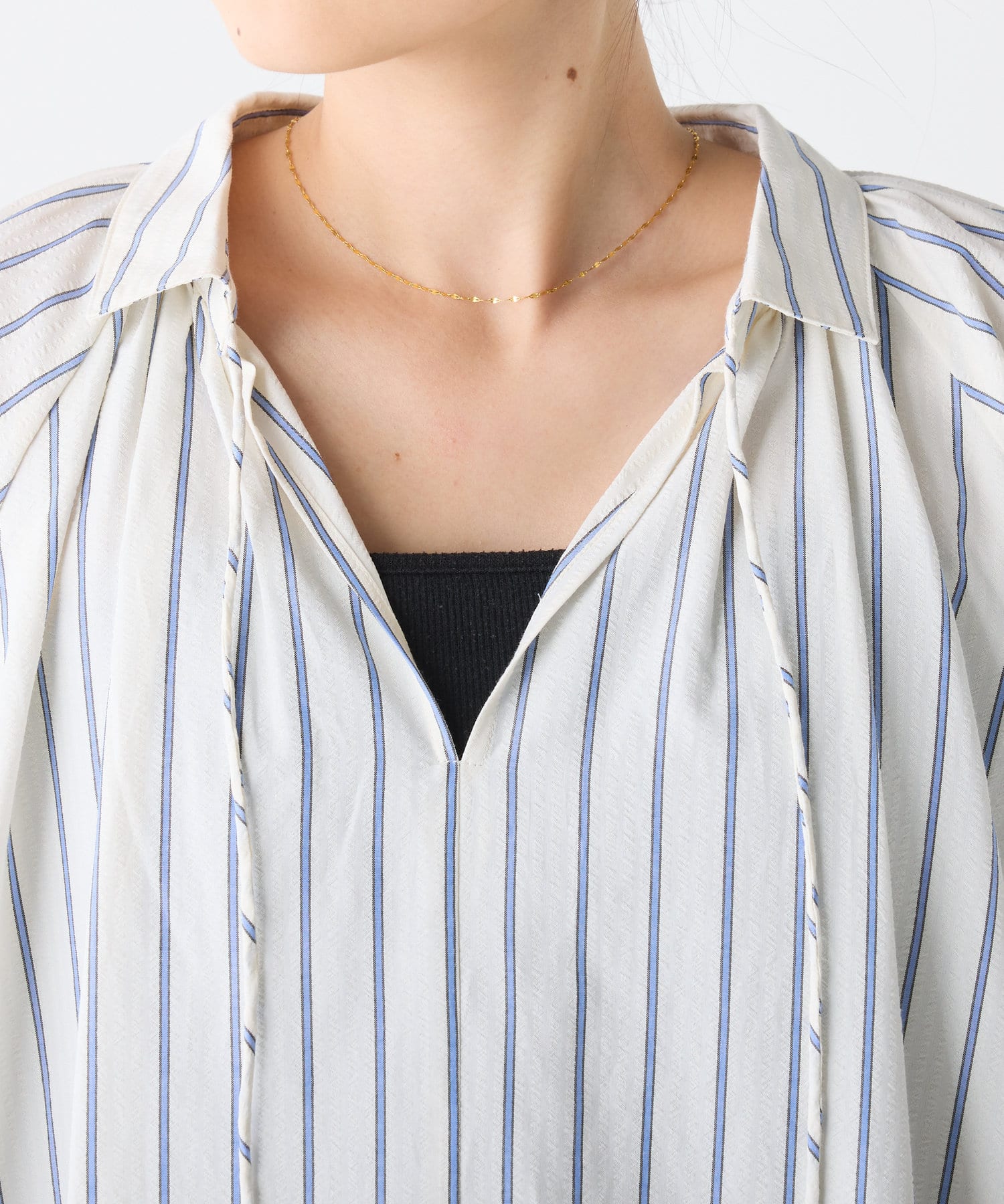 襟元の深めのスキッパーデザインが抜け感を演出してくれます♪