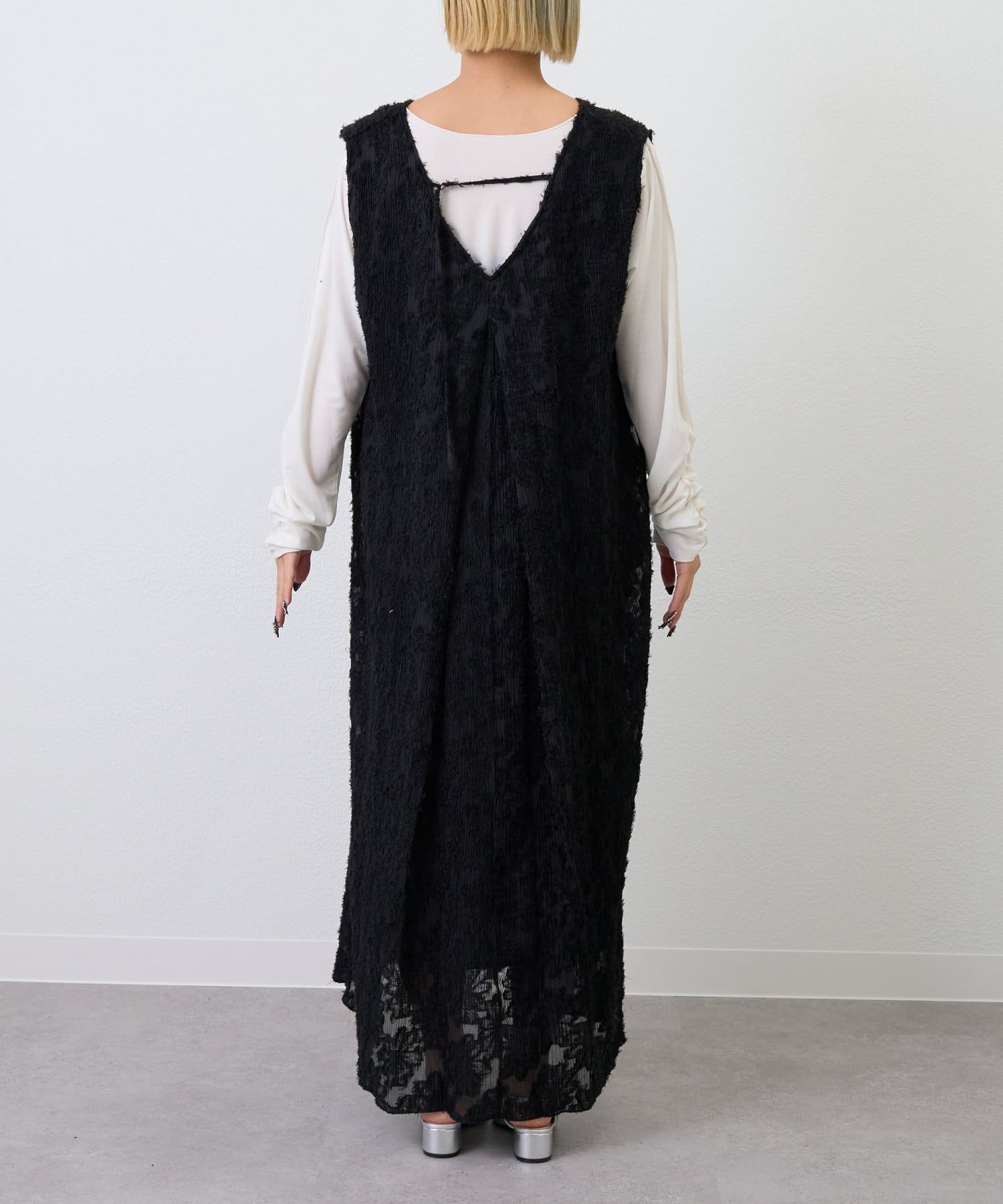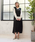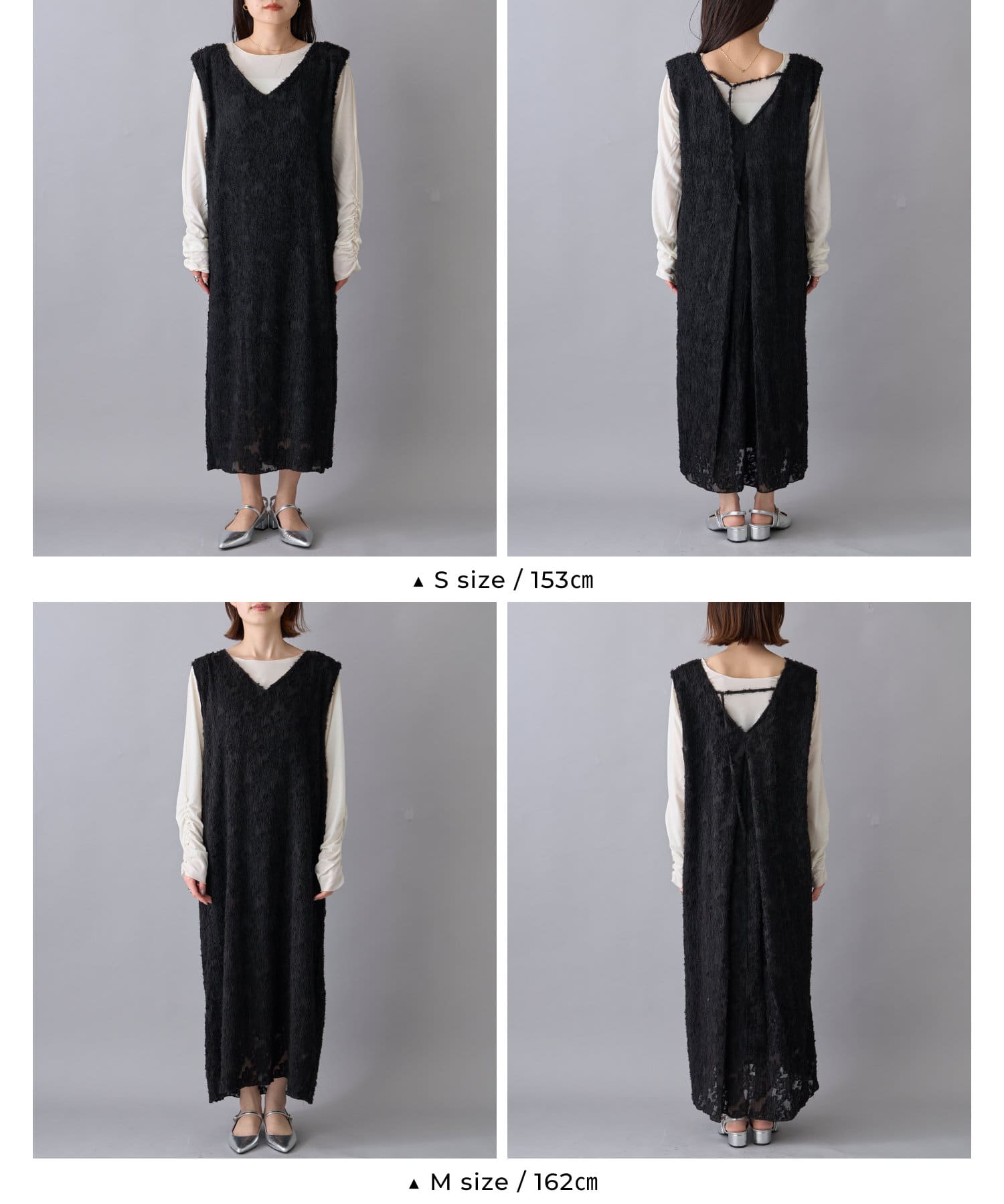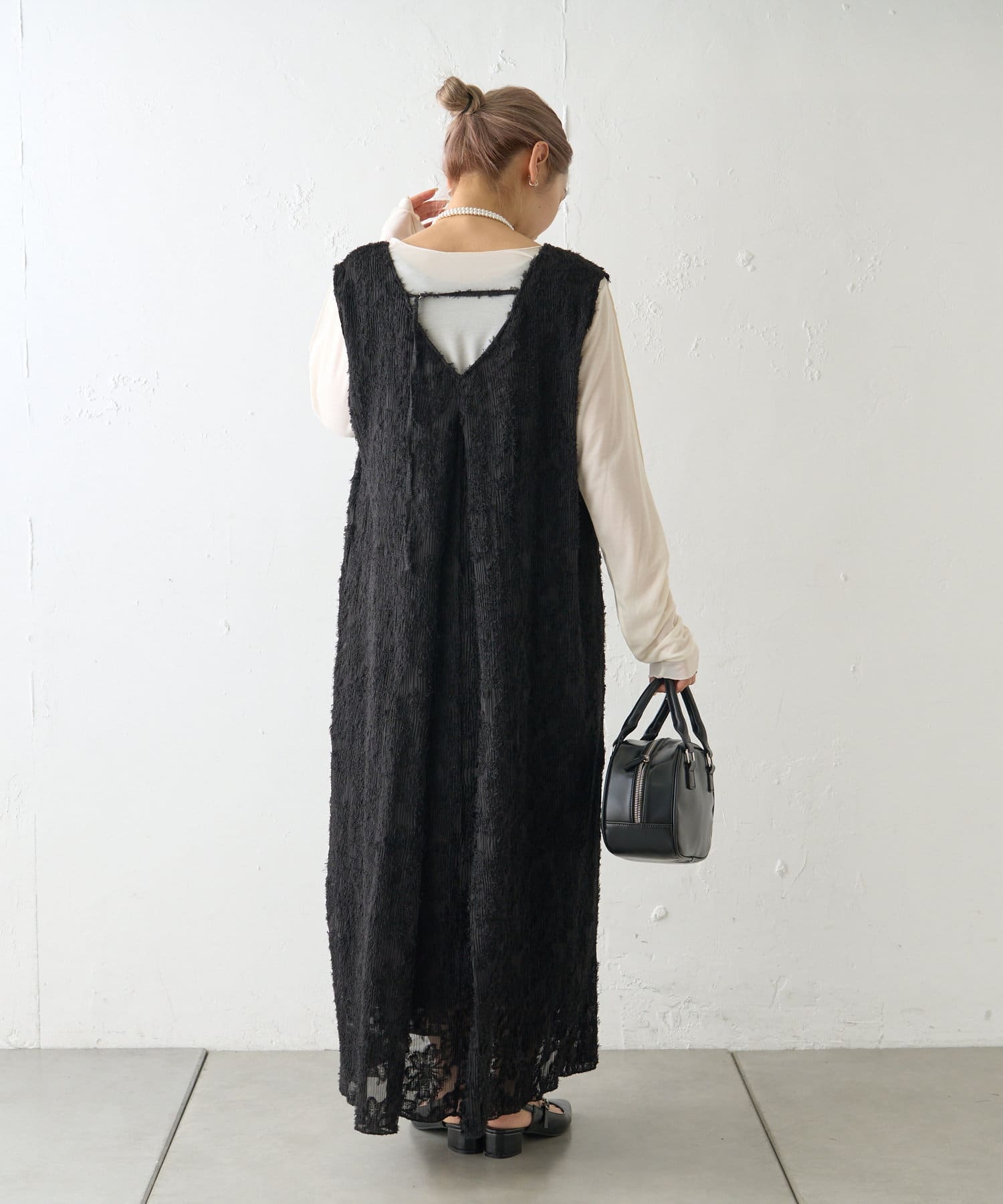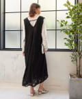 バックデザインや足元の透け感にもこだわった女性らしい1着。