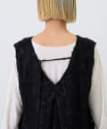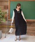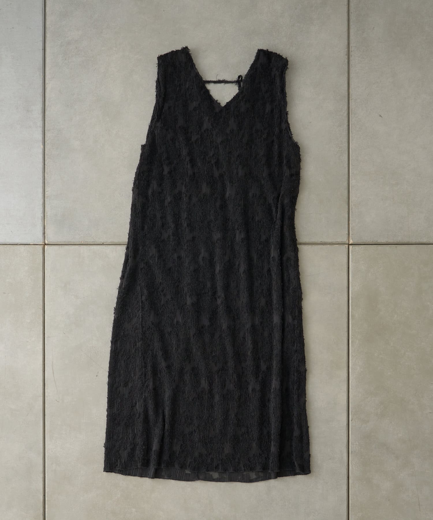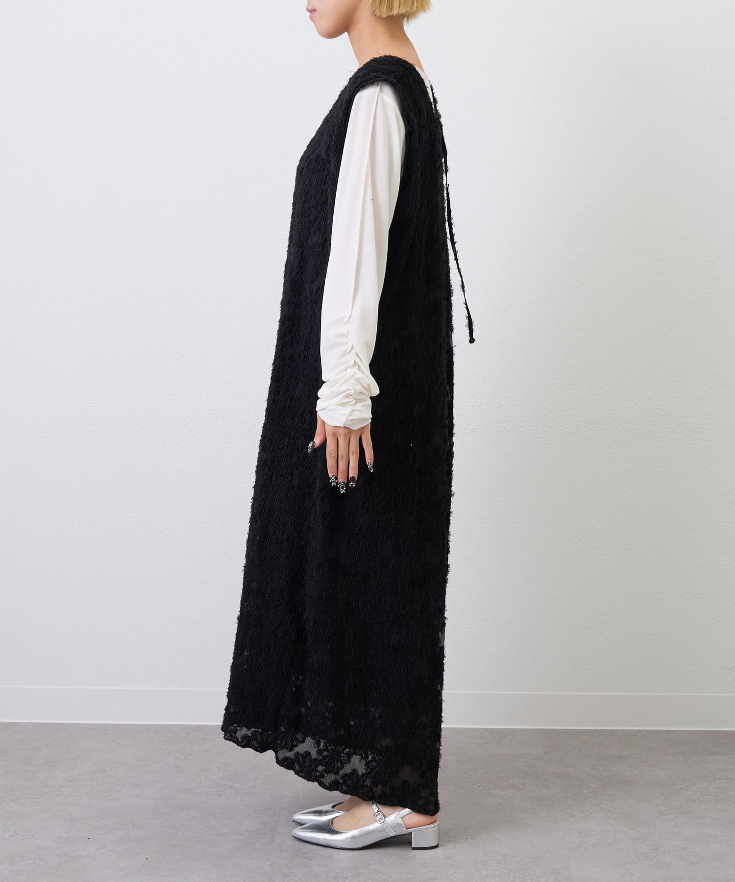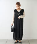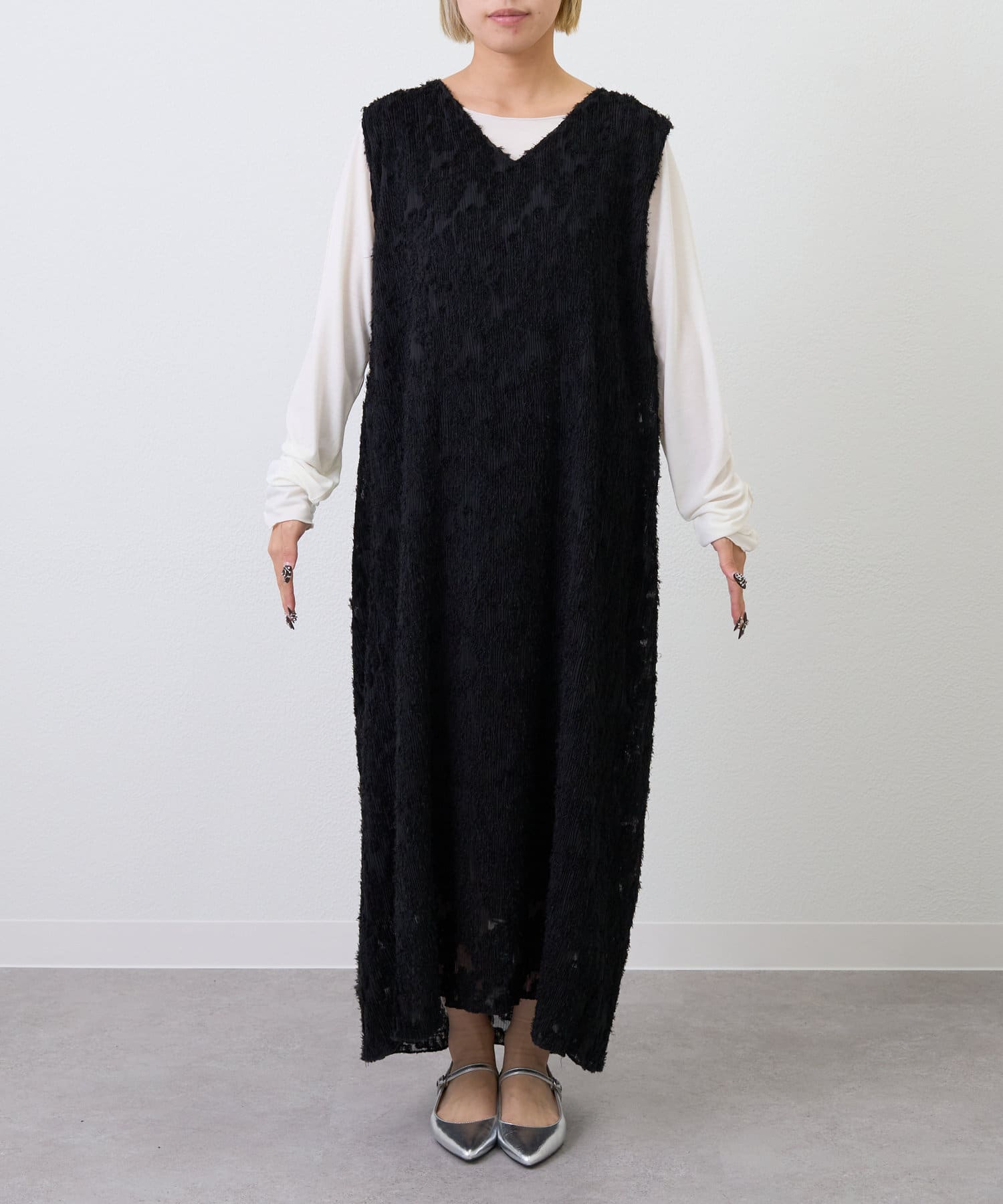 バックデザインや足元の透け感にもこだわった女性らしい1着。