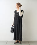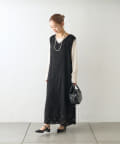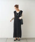 ワンピ単品使いではロゴTEEを合わせてカジュアルにお出かけスタイルも。