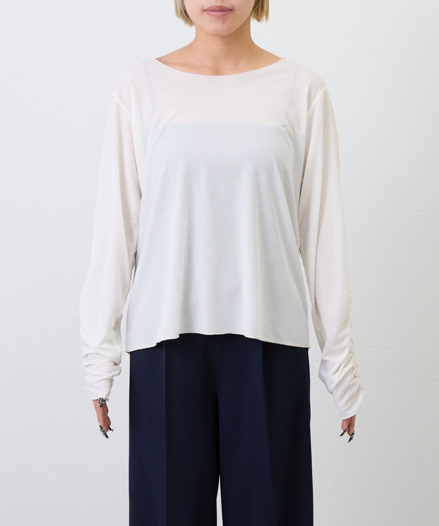 シアートップスとセットでのレイヤードスタイルがおすすめ!