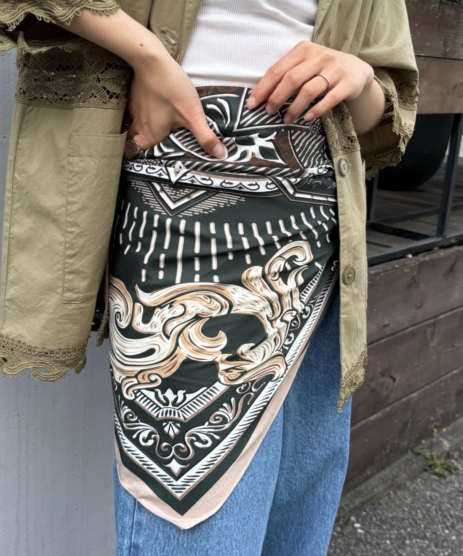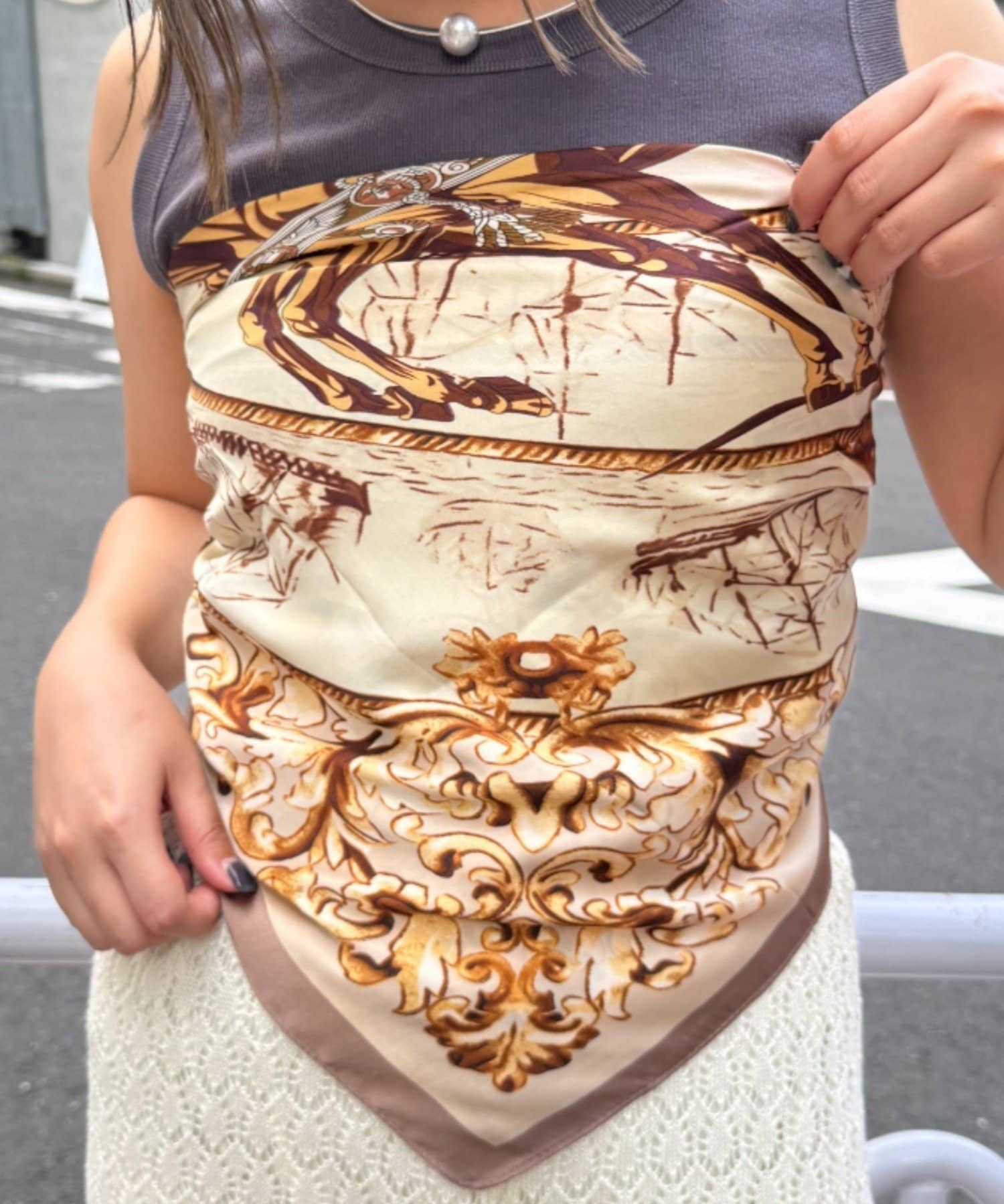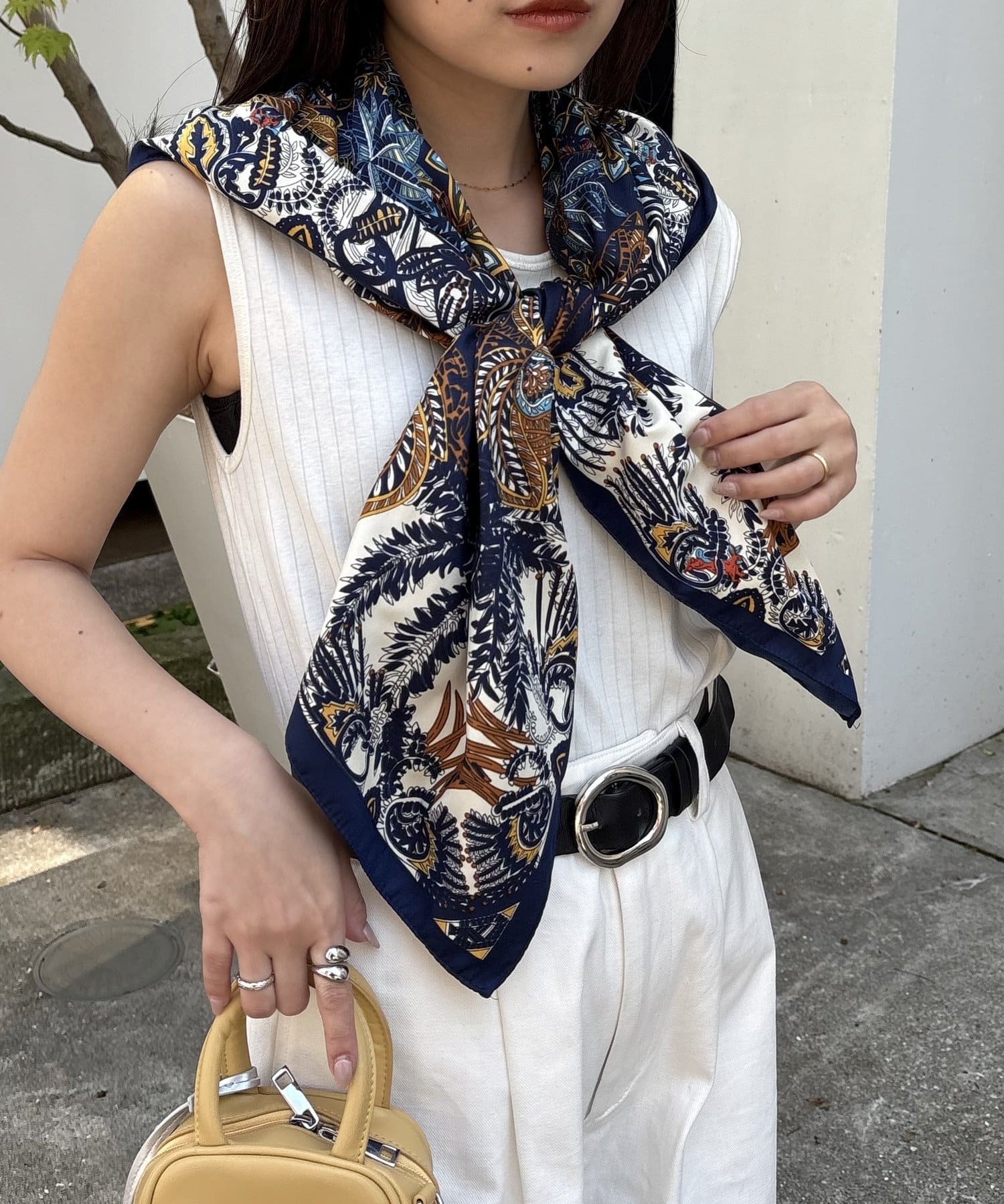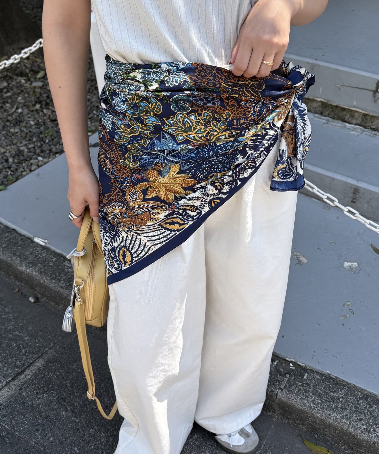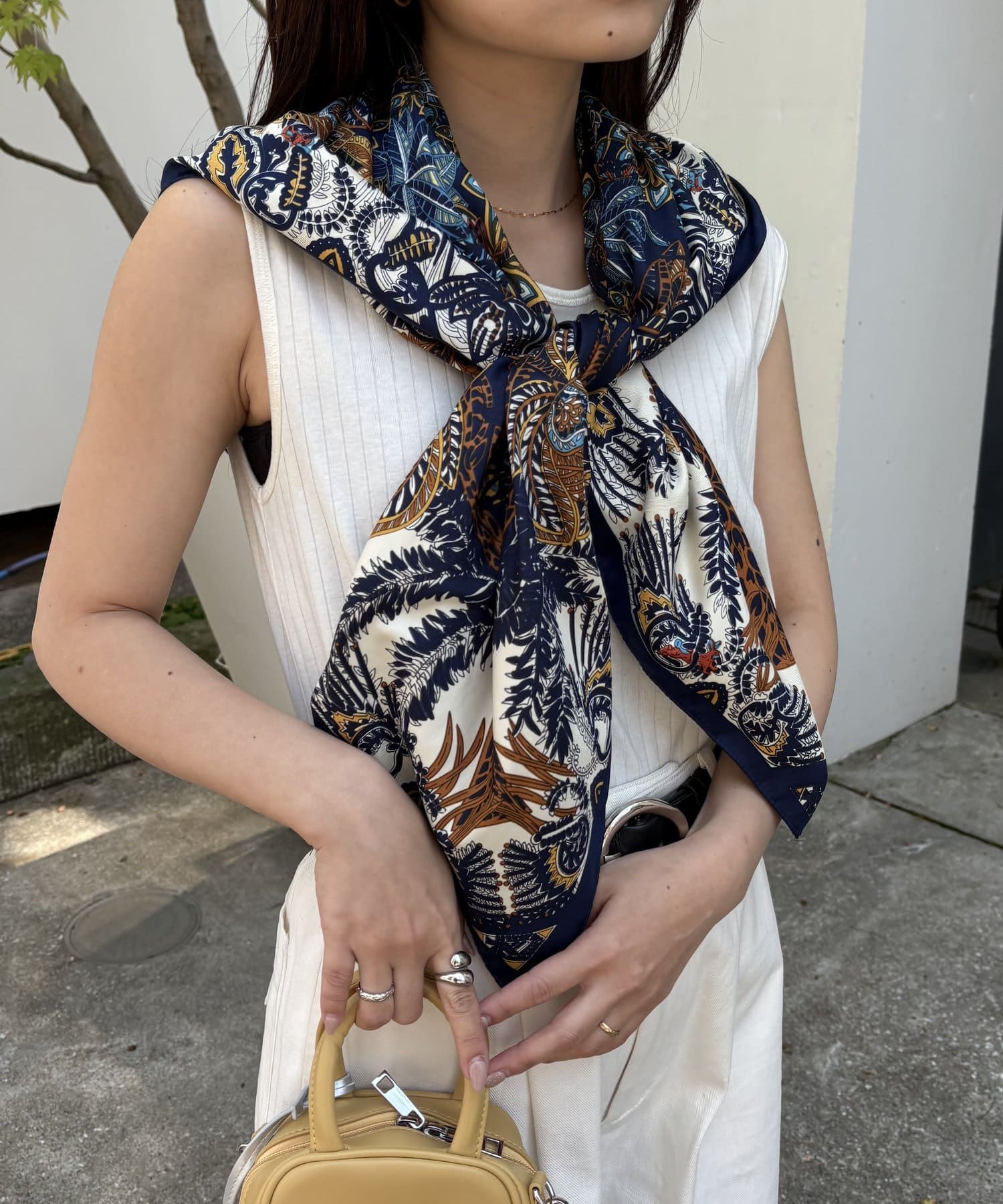 様々な使い方ができるアソート柄スカーフ