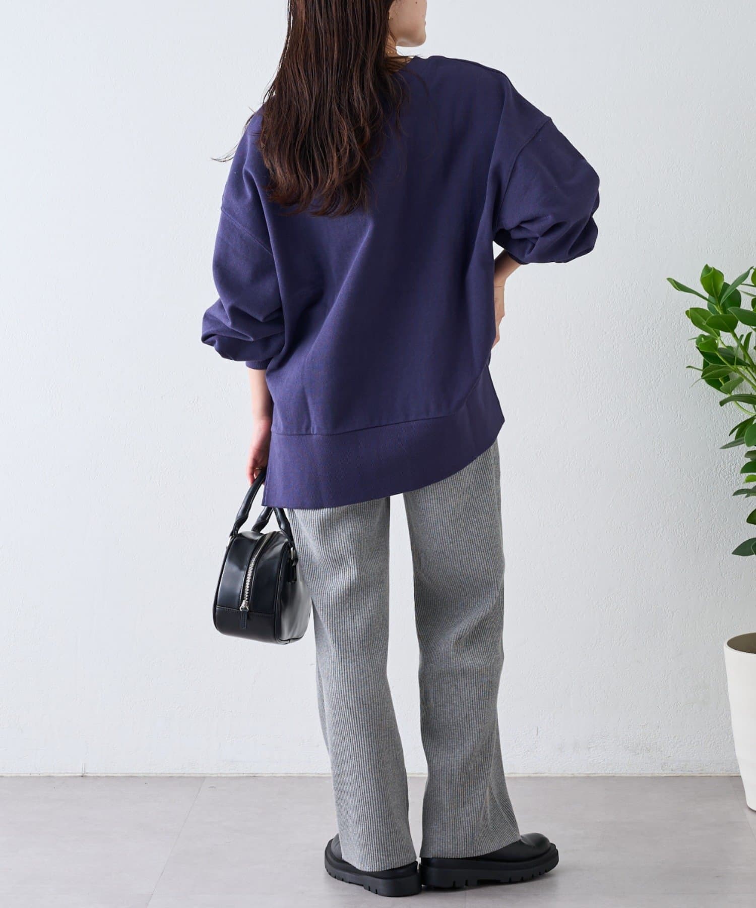 柔らかな生地にウエストゴムで、リラックスして履けるイージーパンツ仕様。