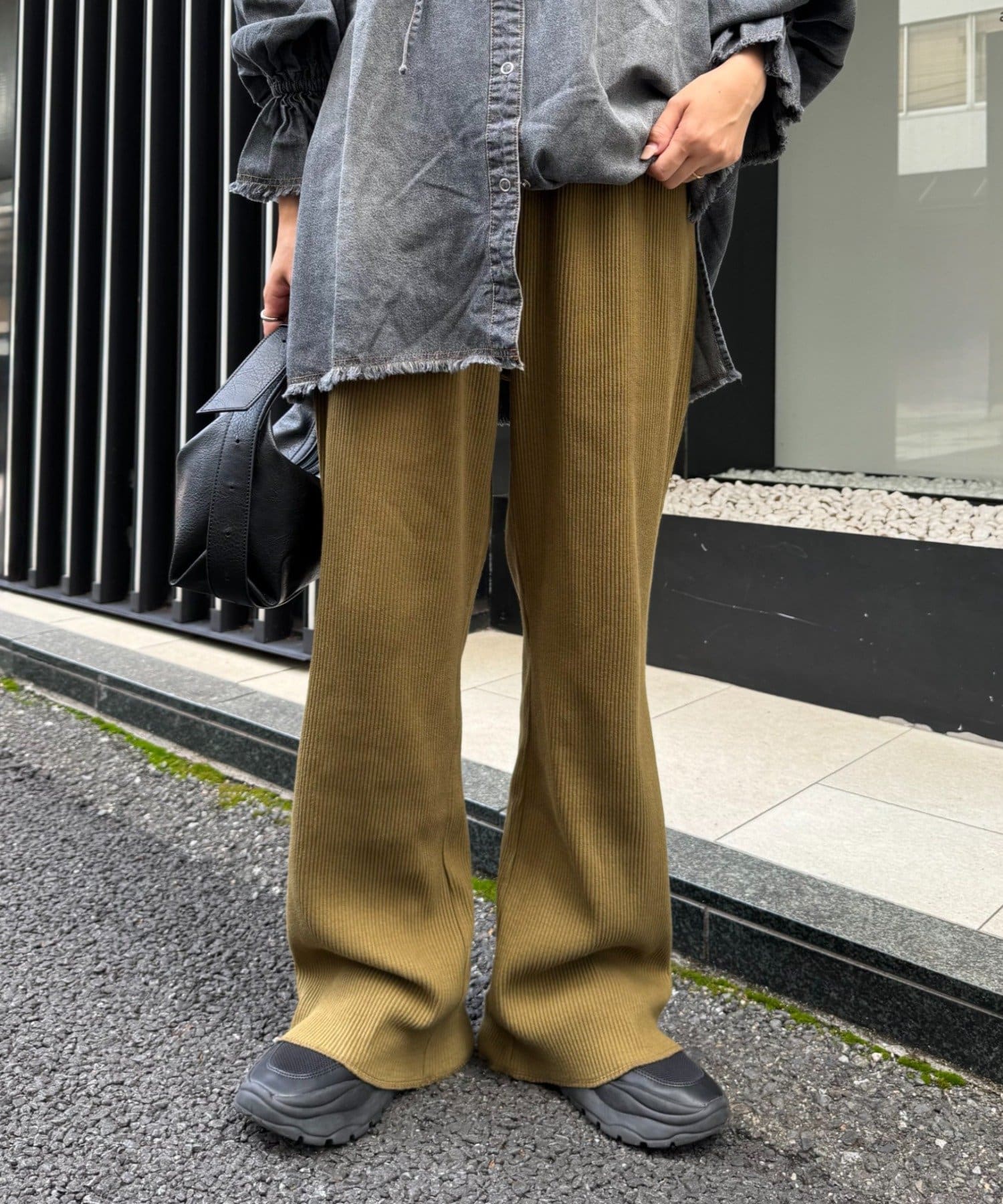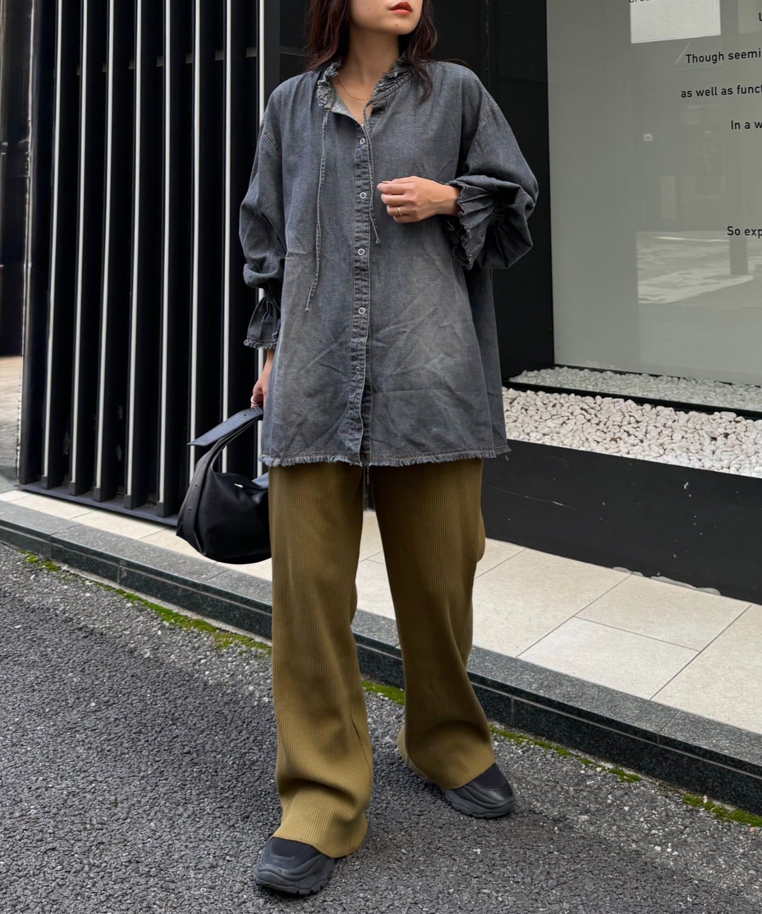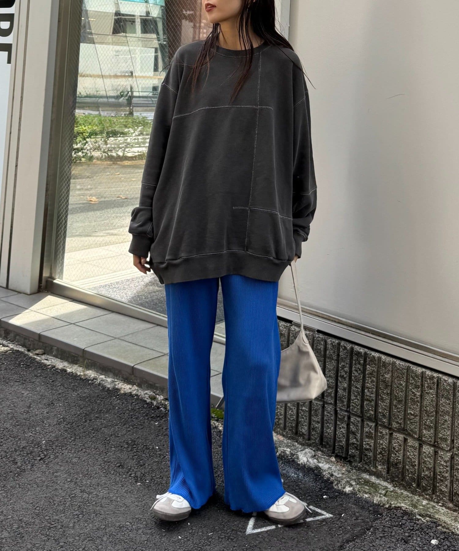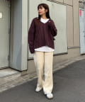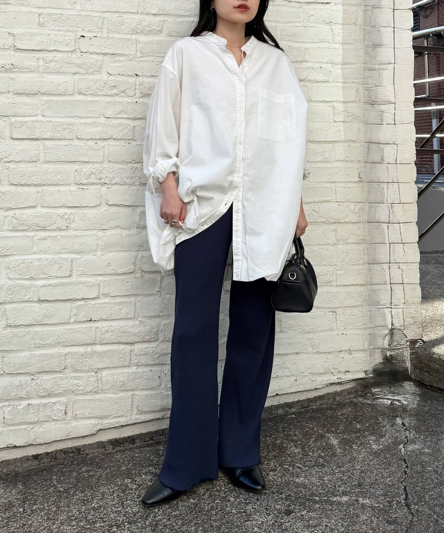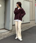オーバーサイズのカットソーやシャツとあわせてメリハリをつけて着こなすと旬なスタイルに。