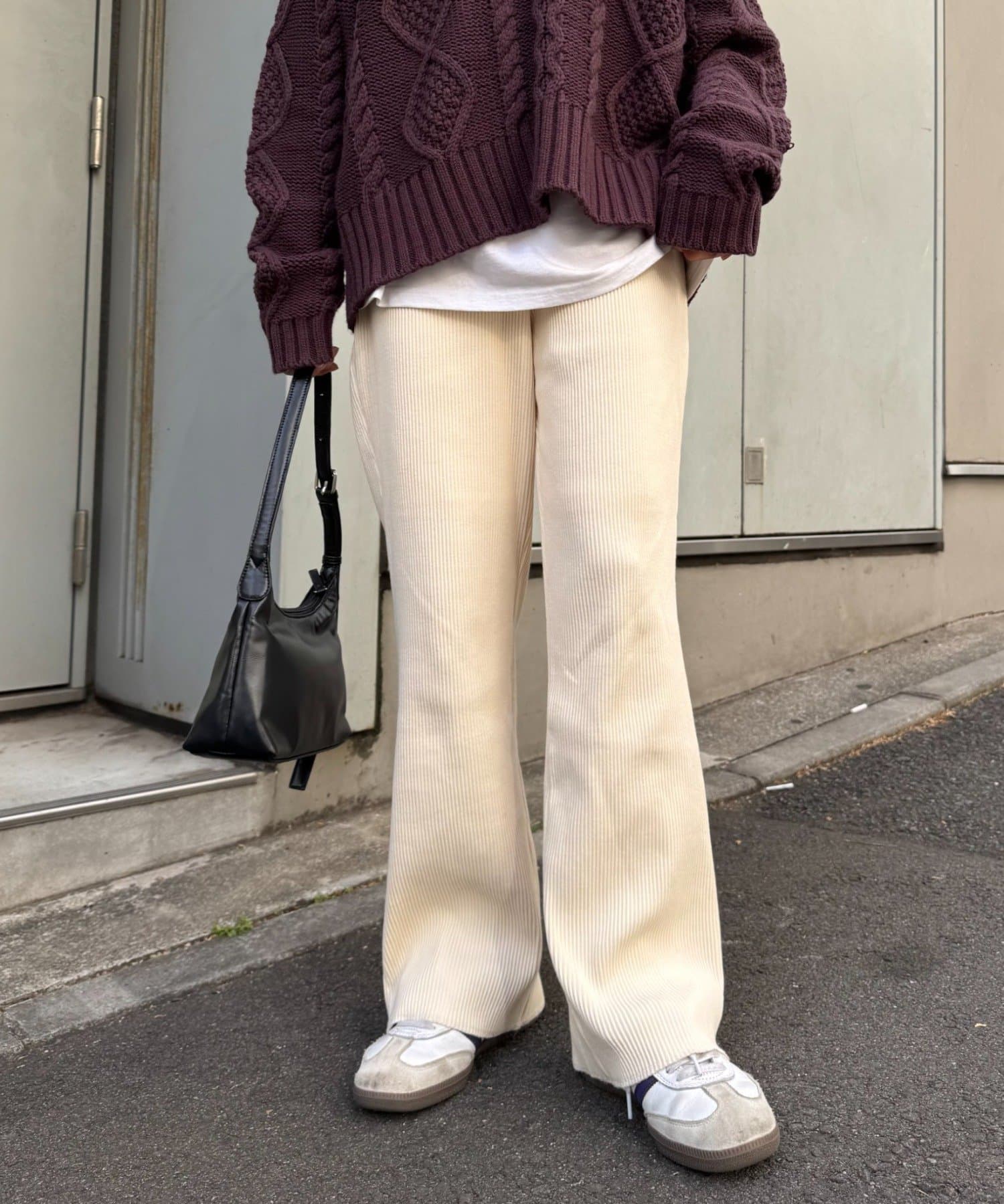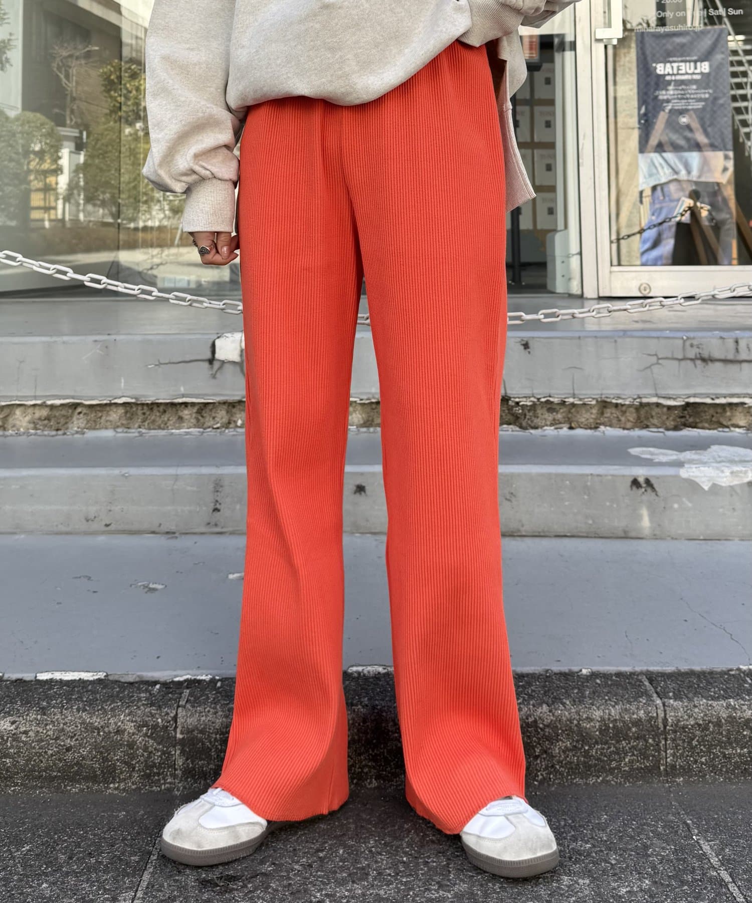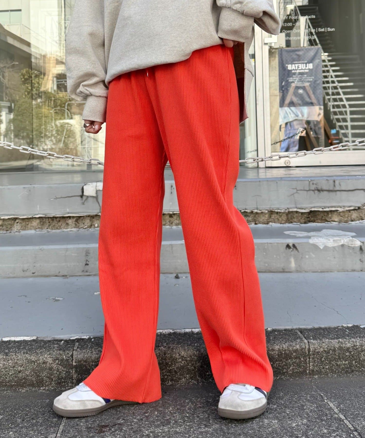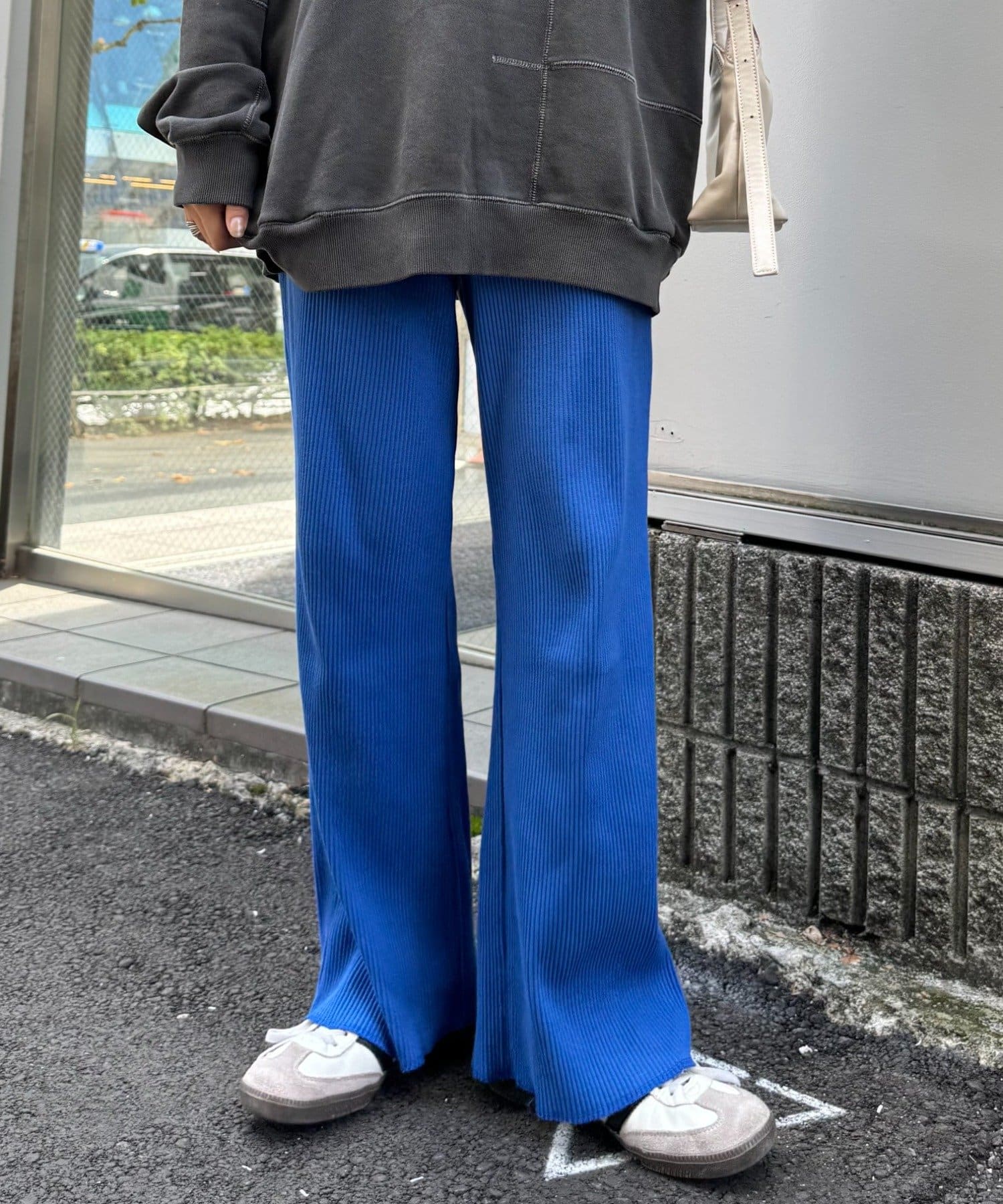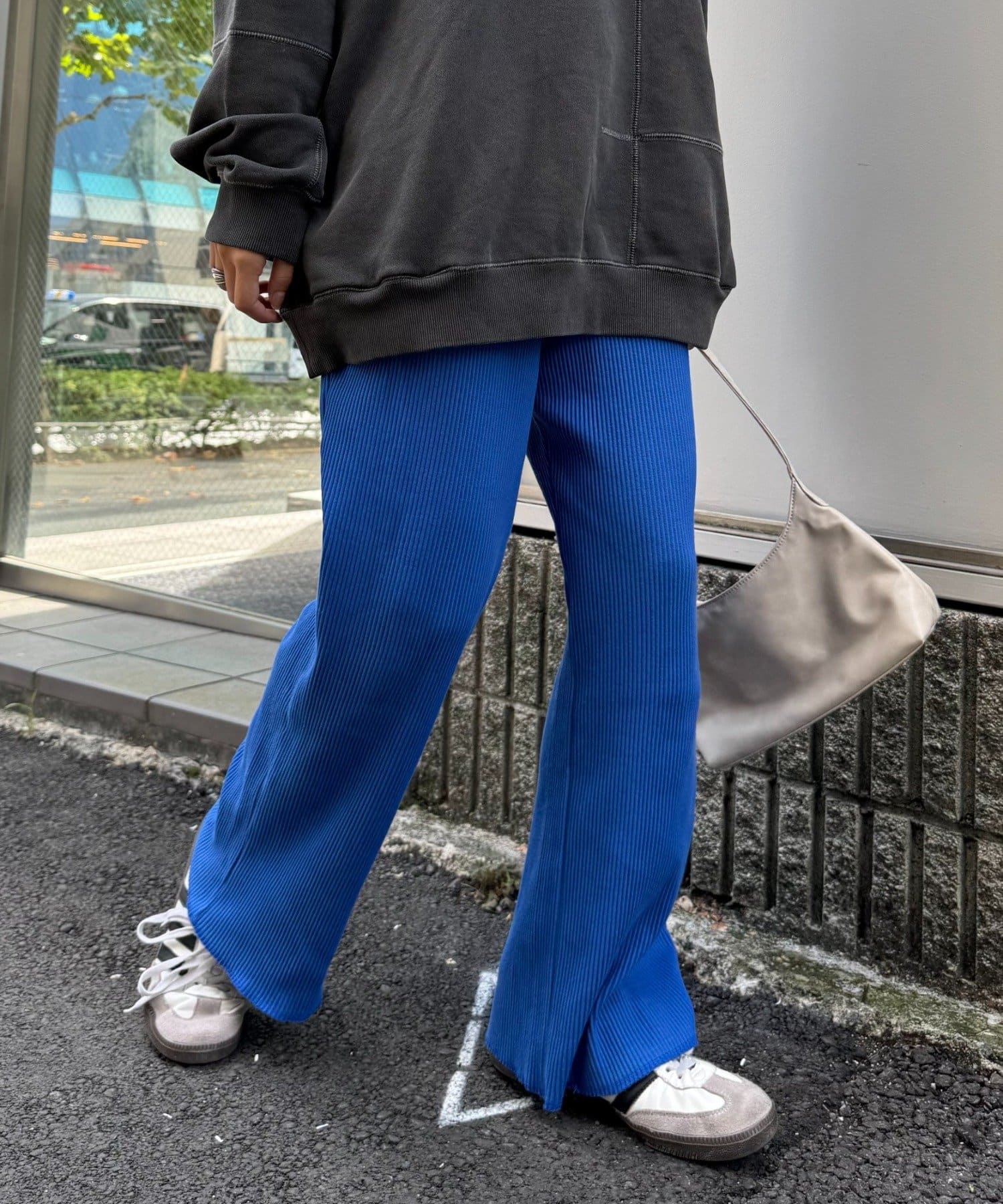 オーバーサイズのカットソーやシャツとあわせてメリハリをつけて着こなすと旬なスタイルに。