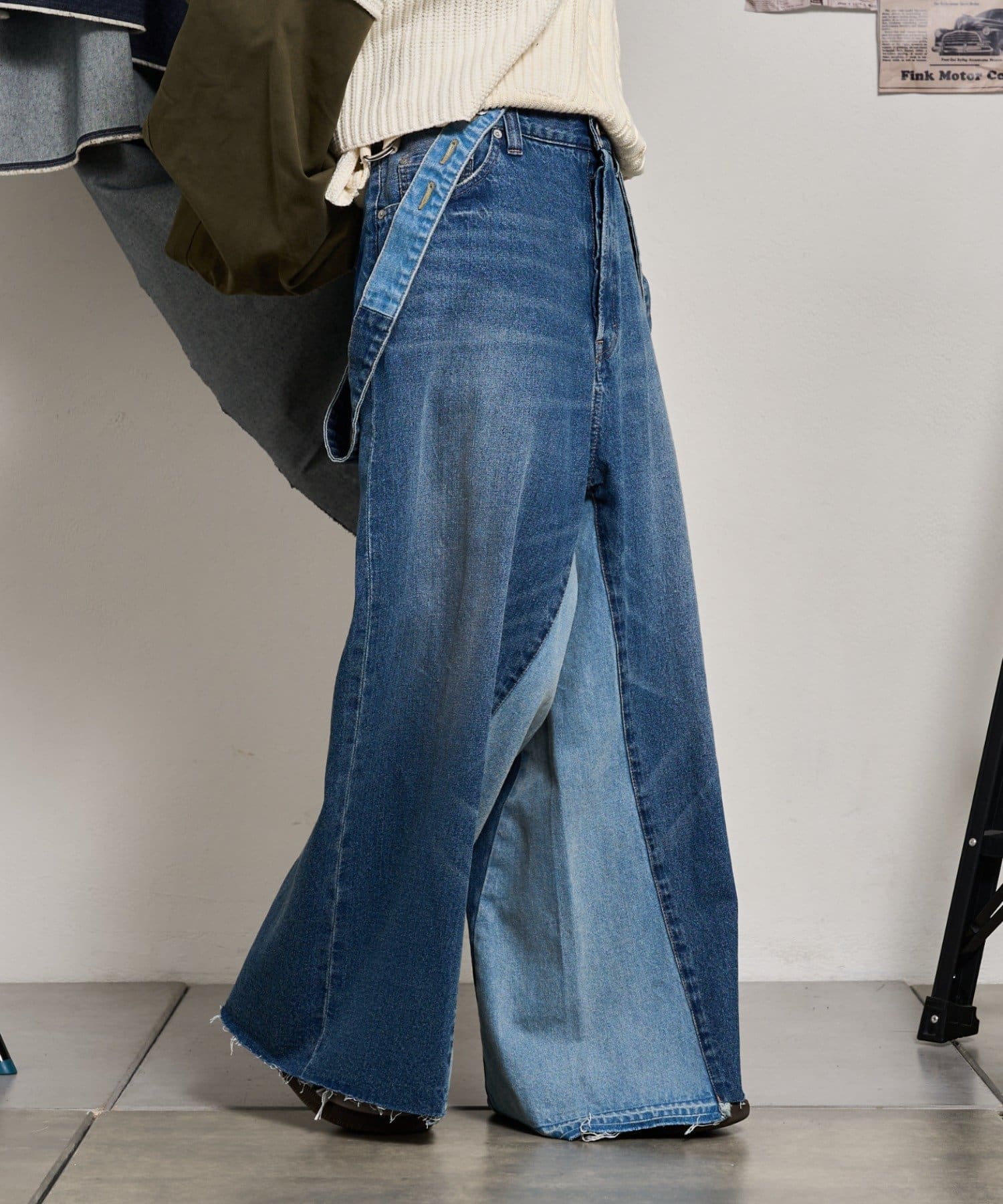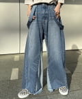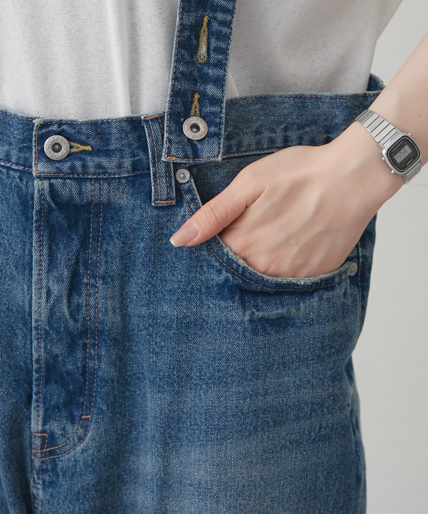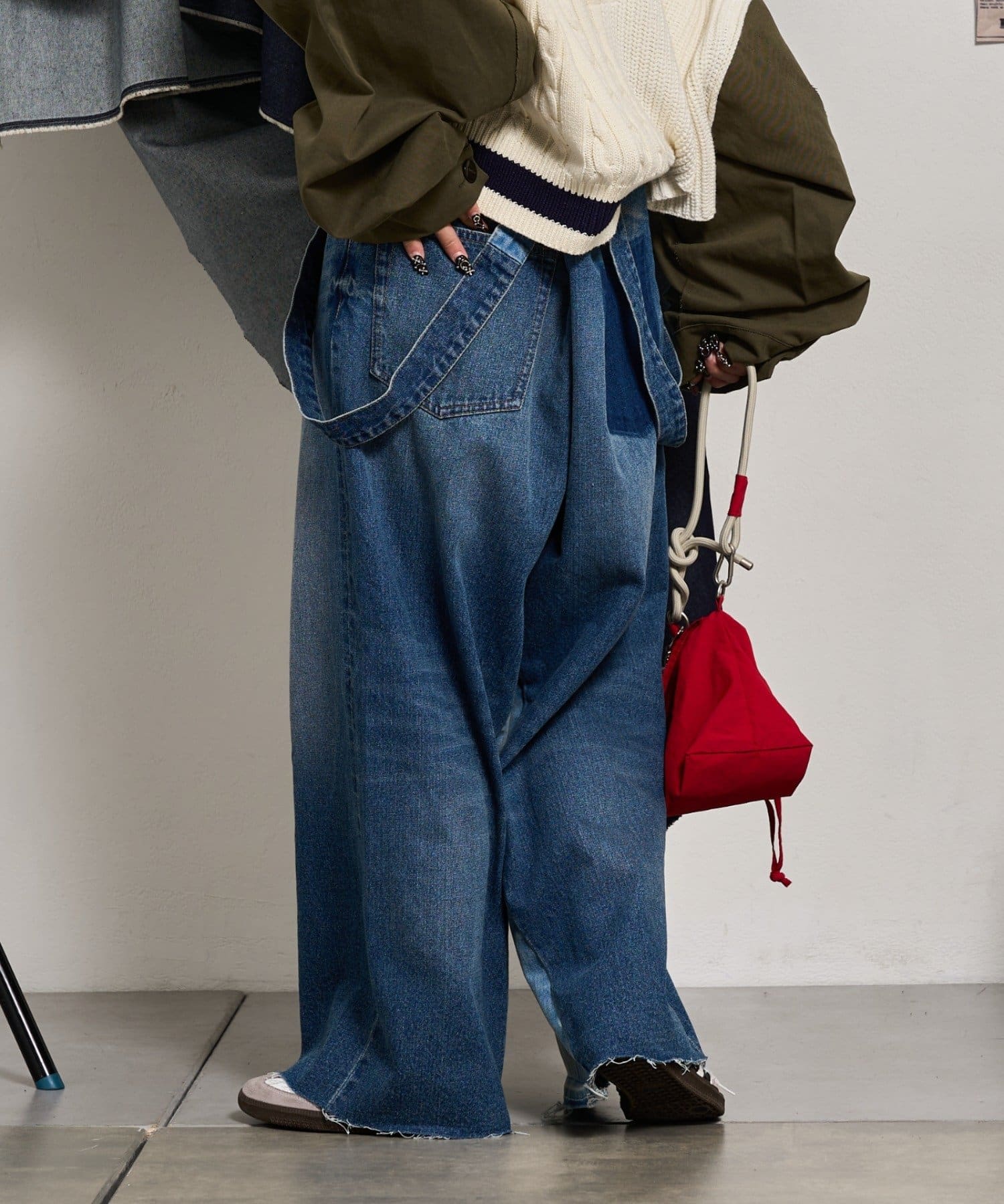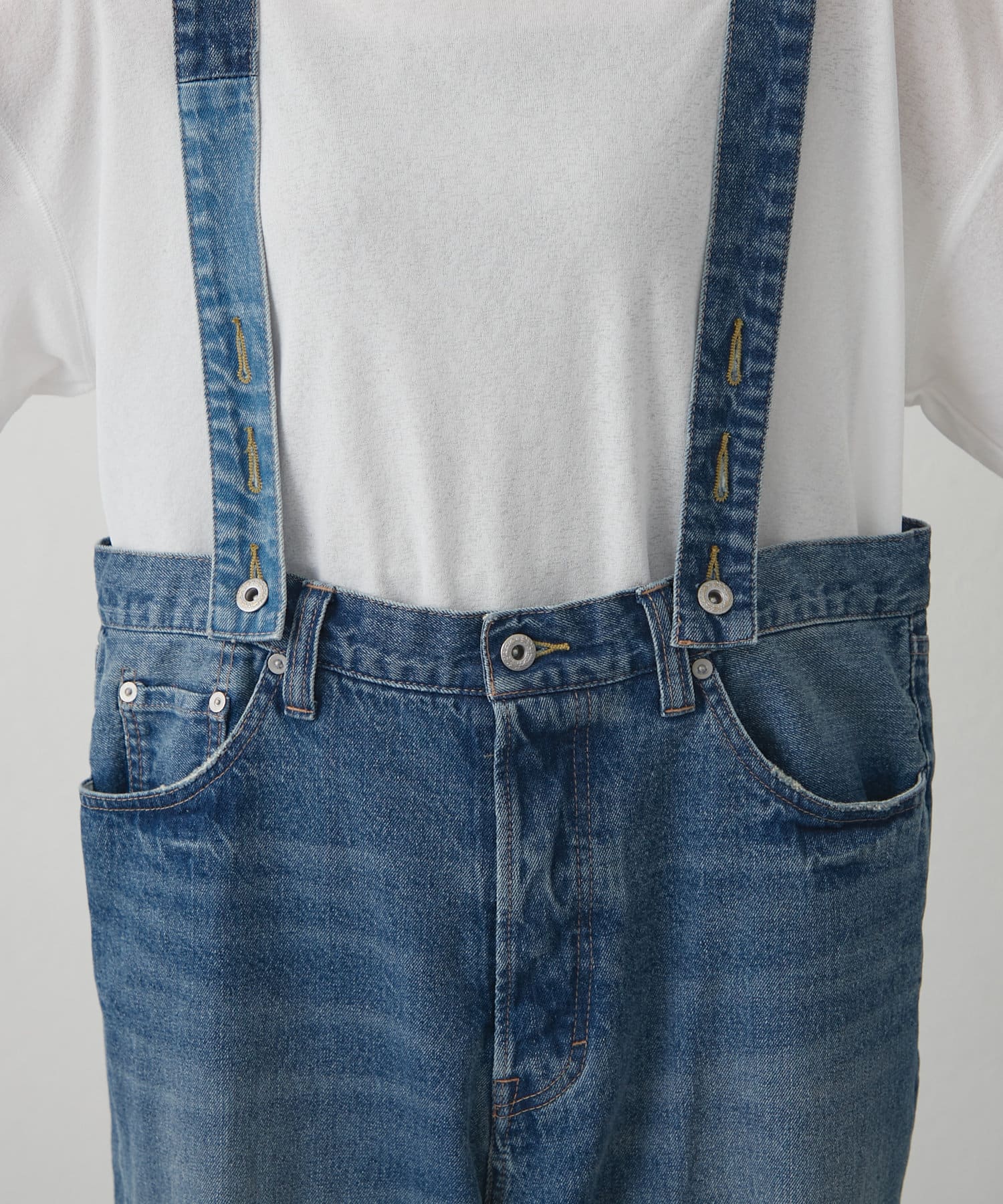 ワイドシルエットで存在感抜群のデニムです。取り外し可能なサス付きで2WAY仕様。