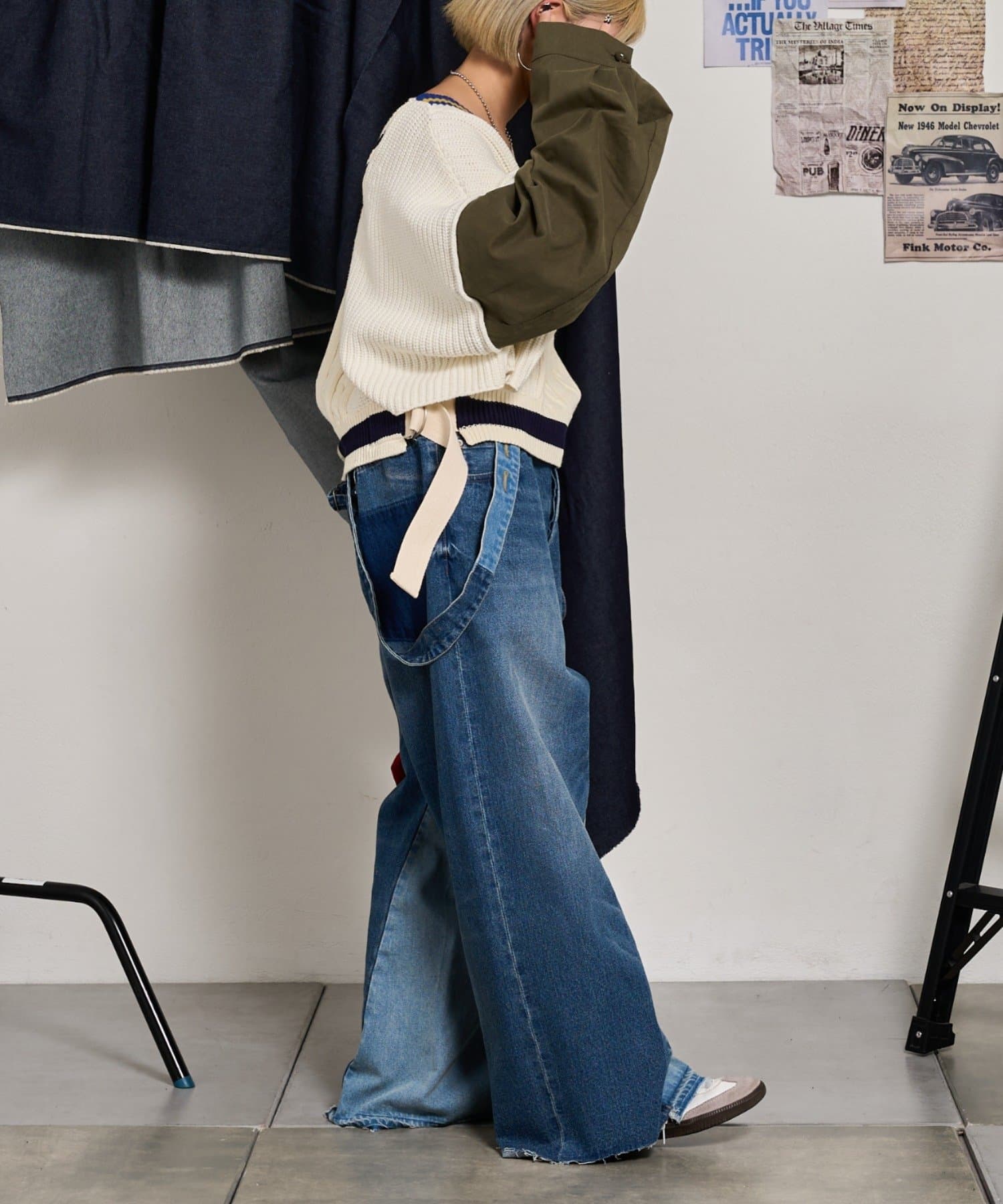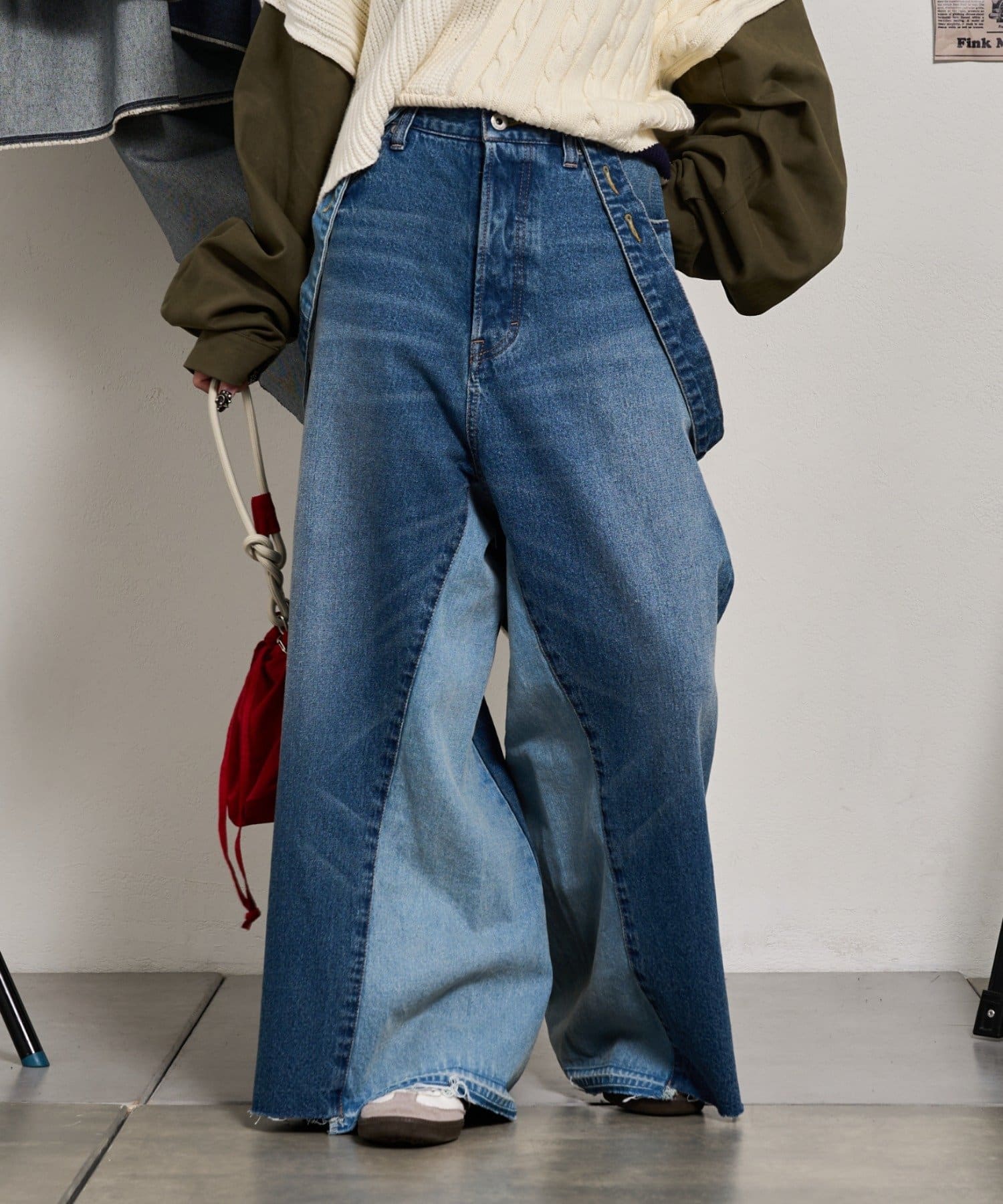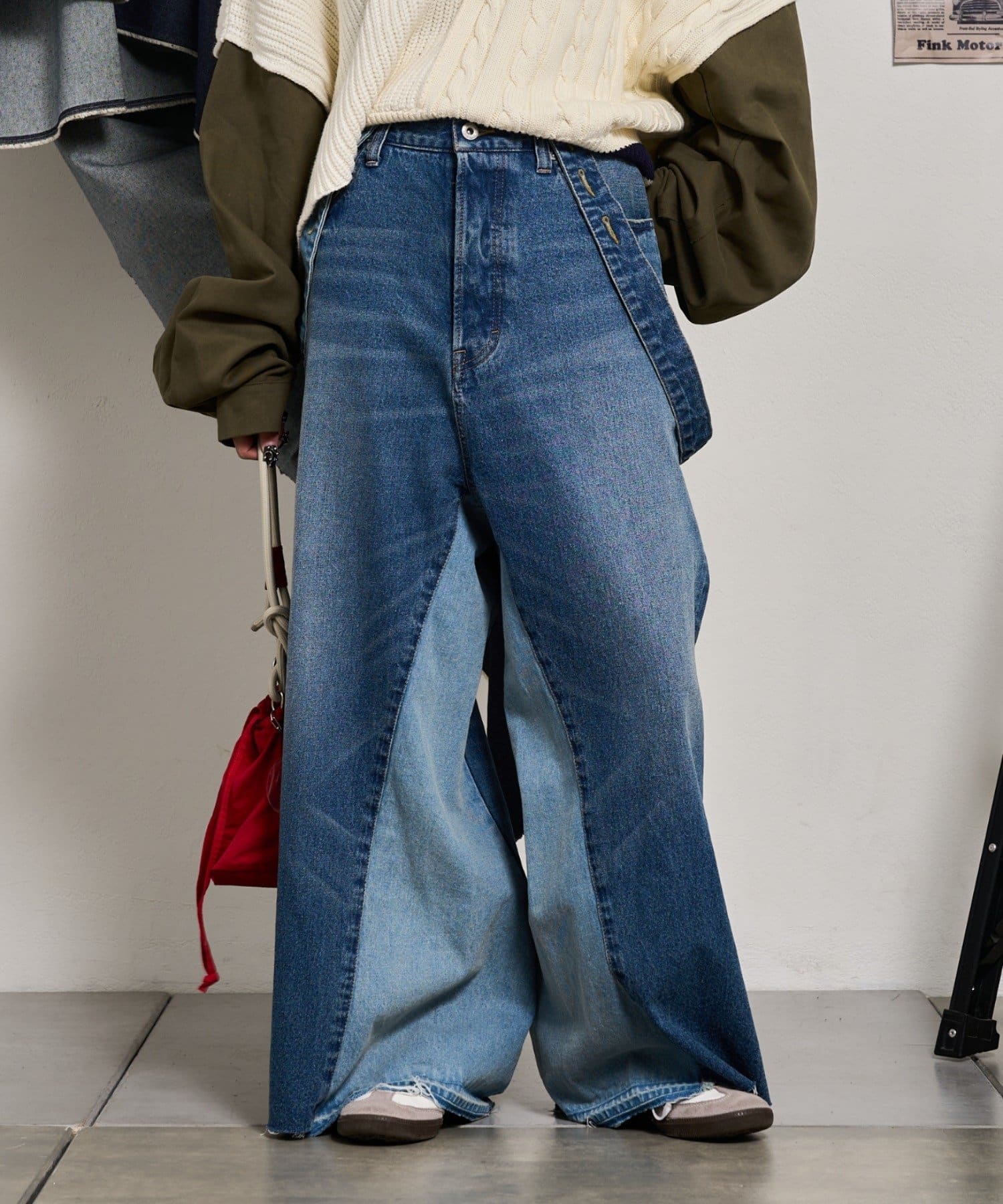ワイドシルエットで存在感抜群のデニムです。取り外し可能なサス付きで2WAY仕様。