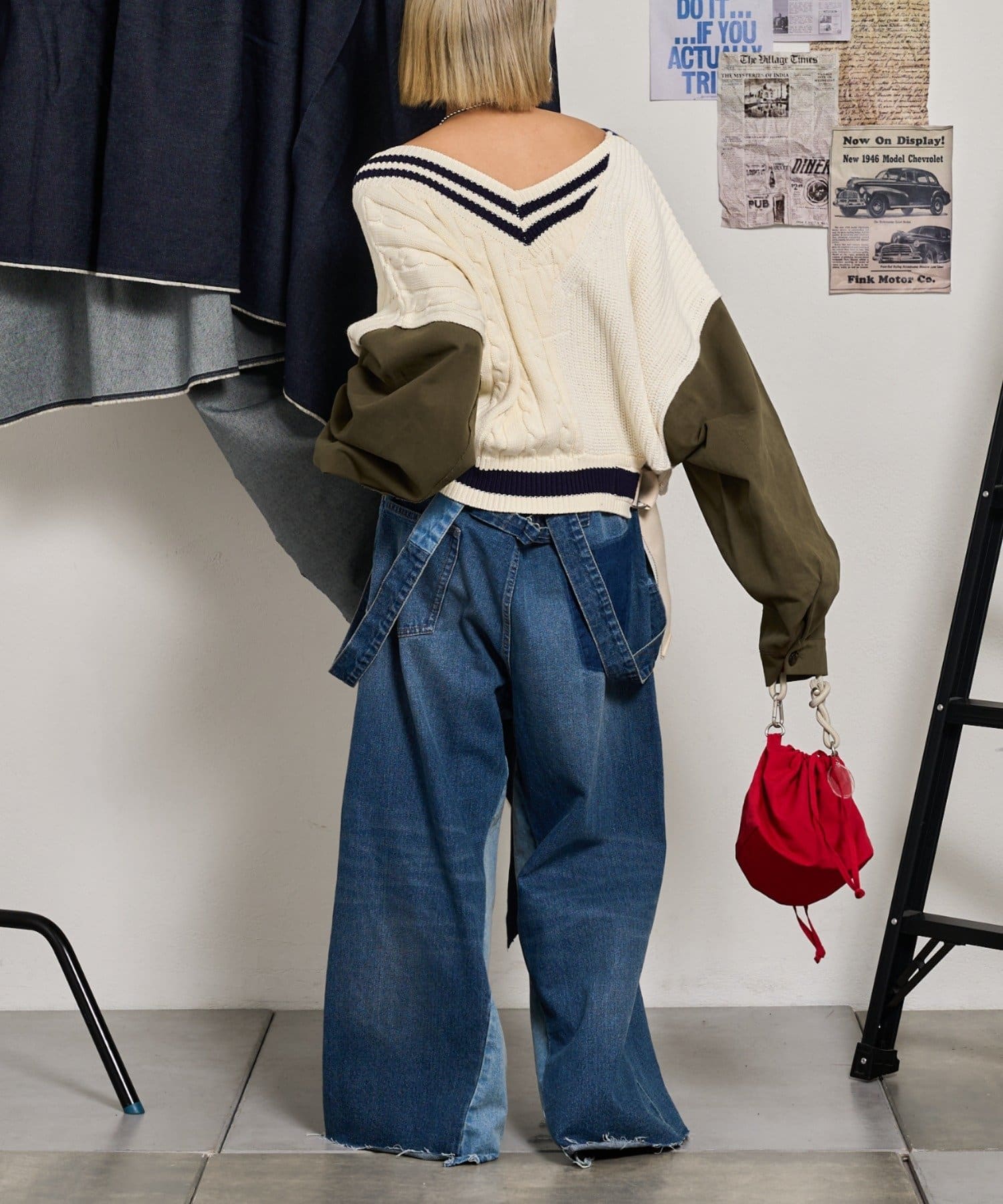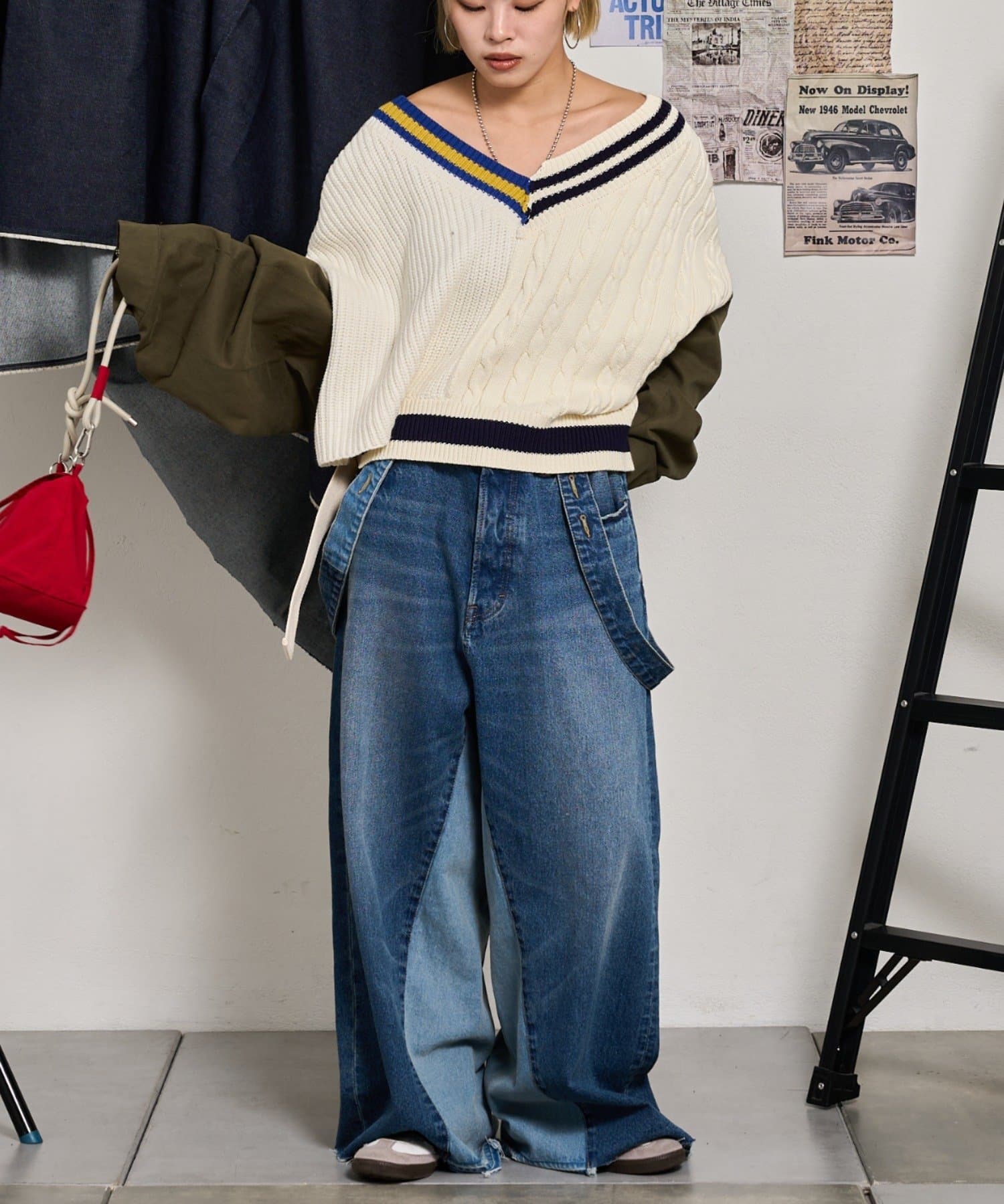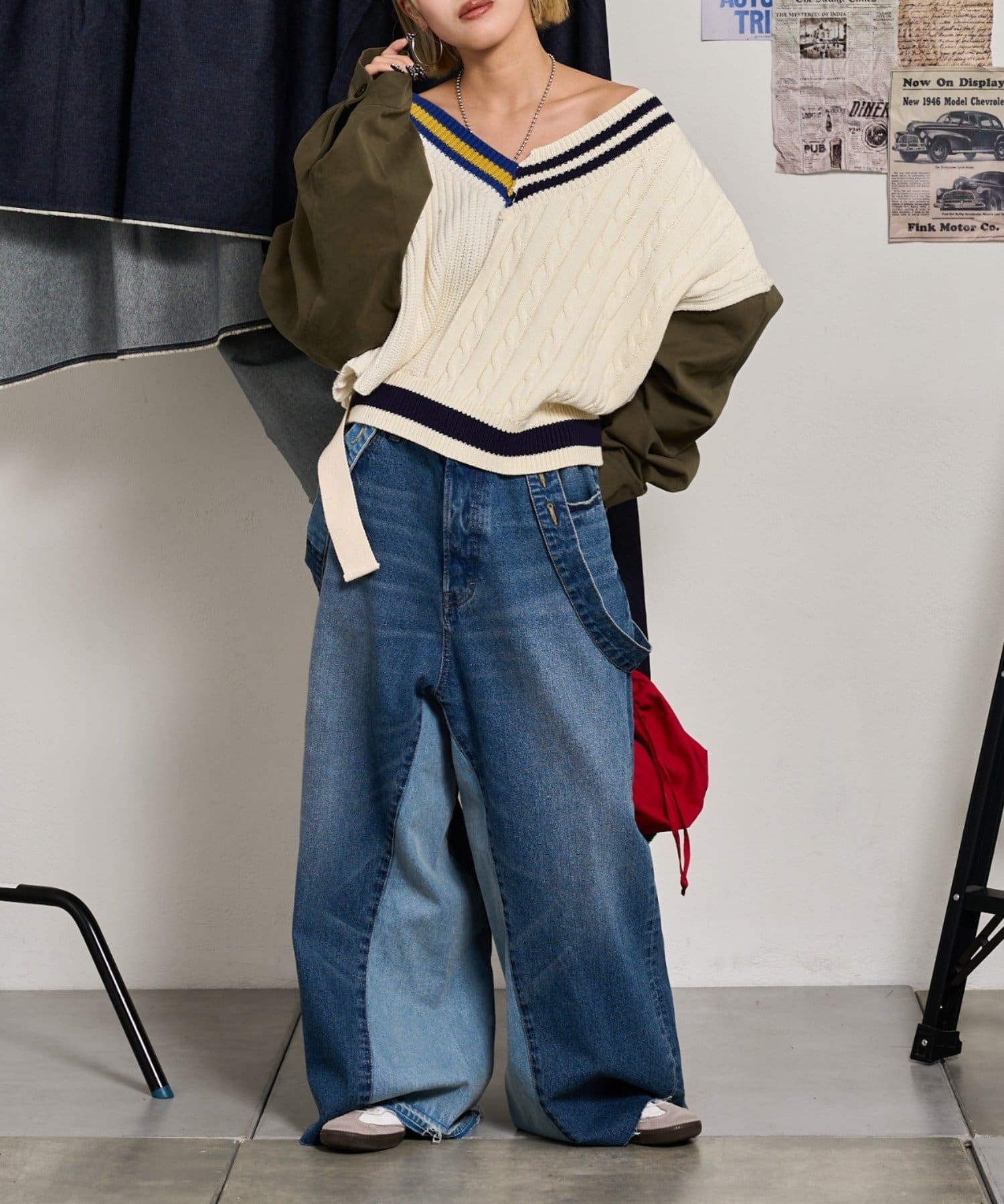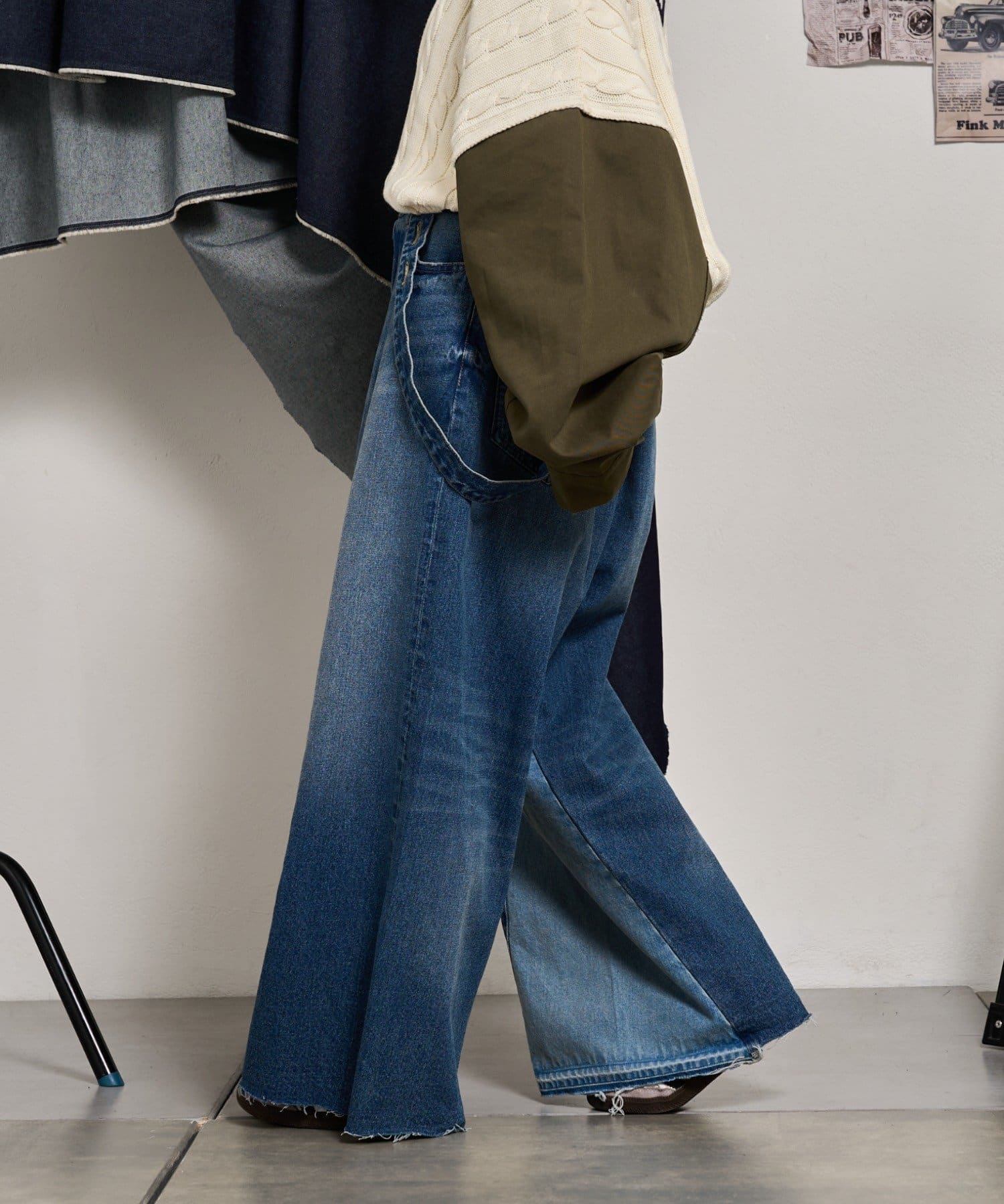 ワイドシルエットで存在感抜群のデニムです。取り外し可能なサス付きで2WAY仕様。