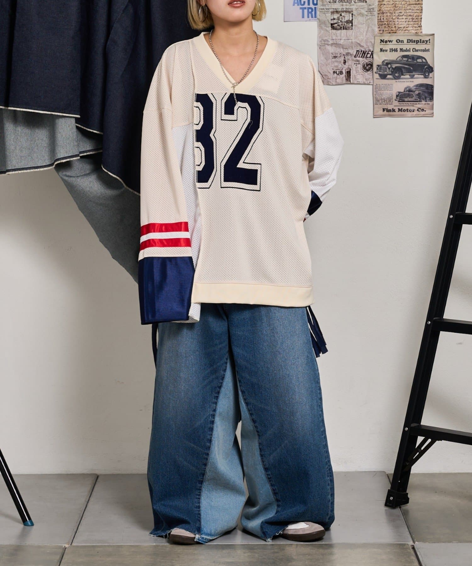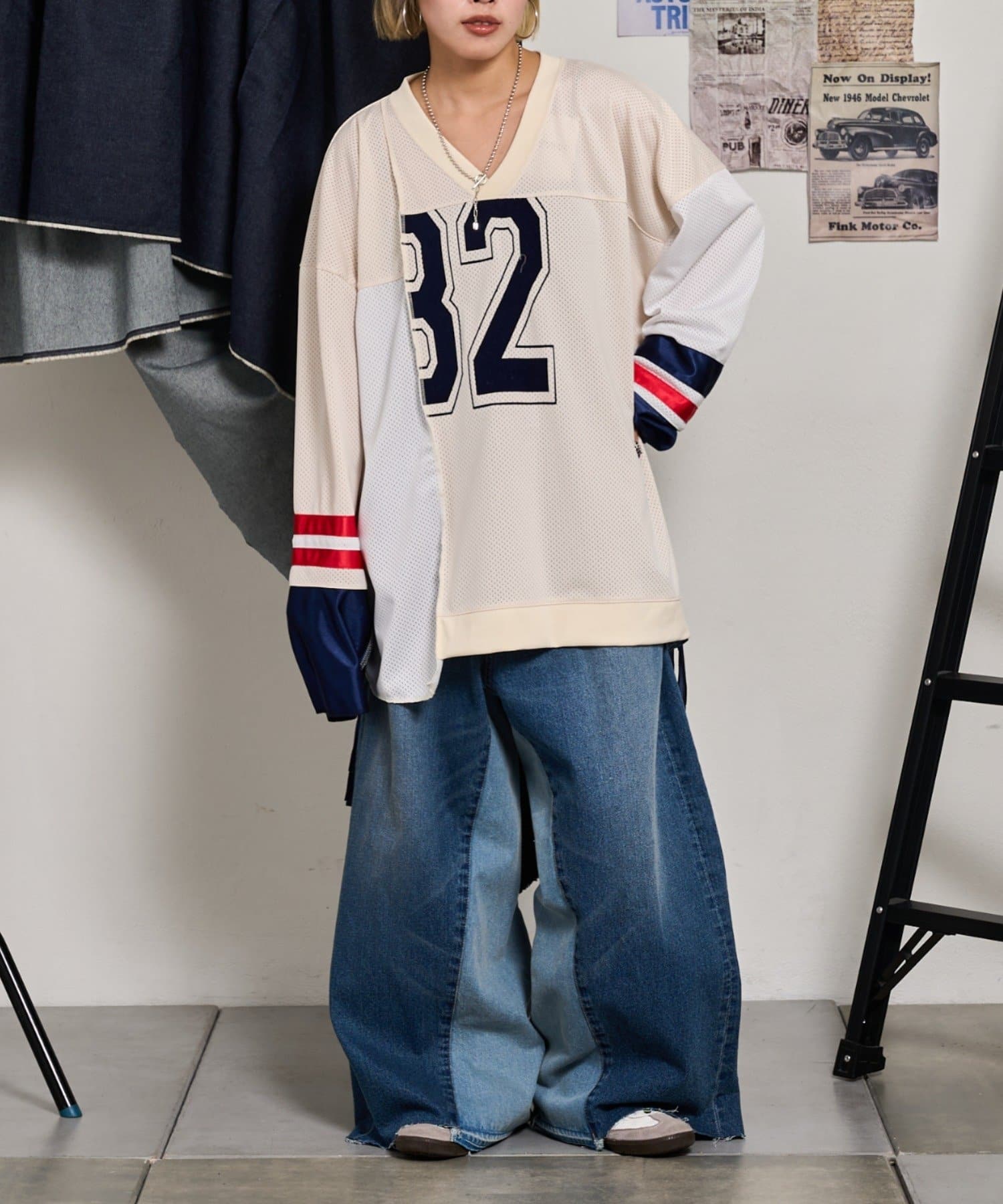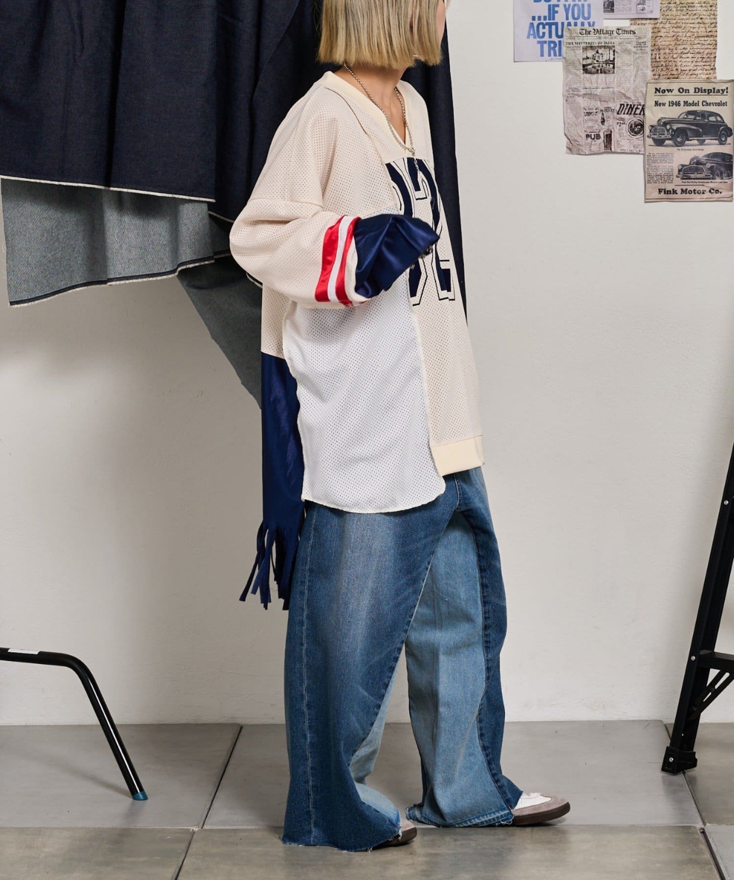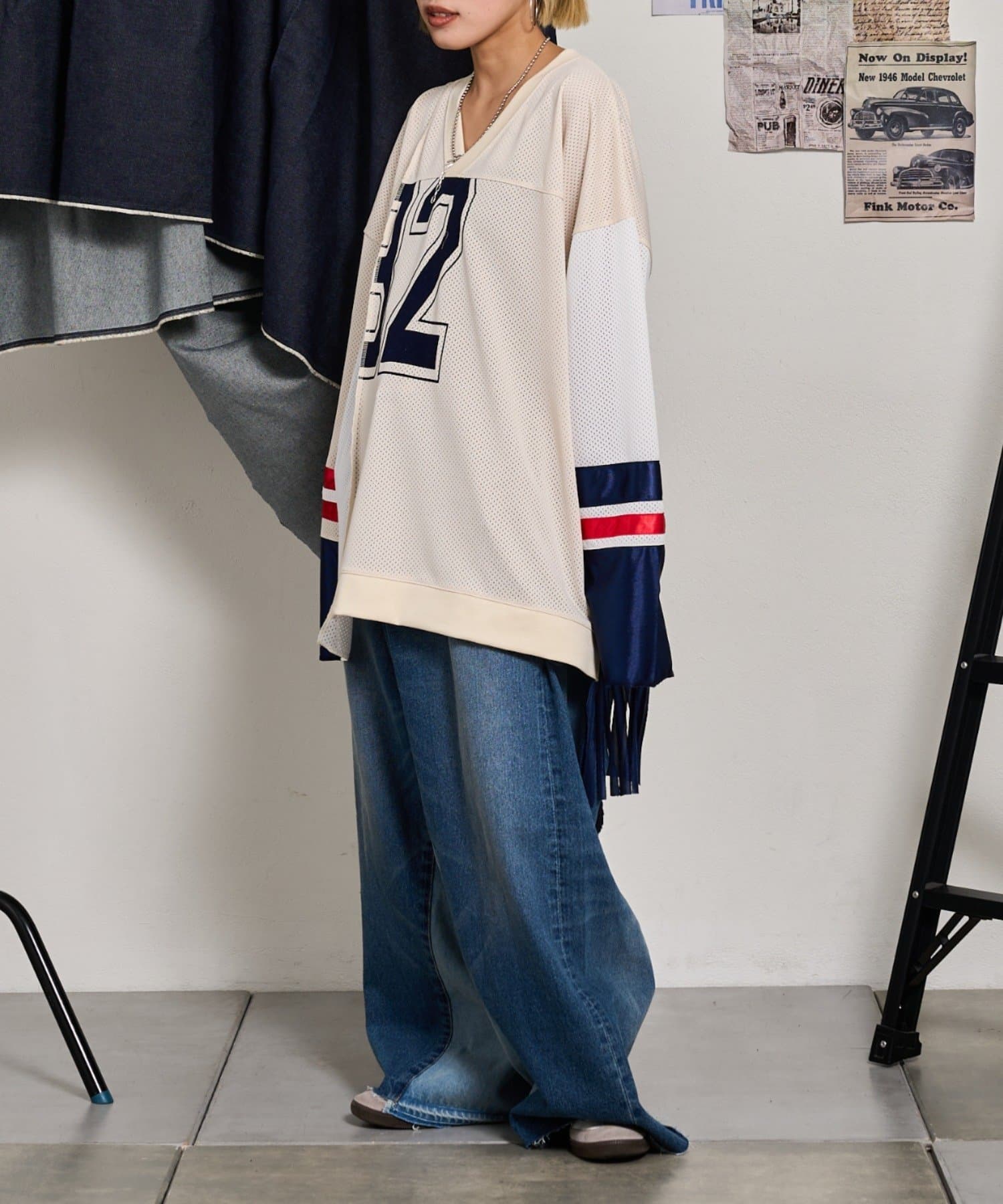オーバーサイズのトップスと合わせたズルズルなスタイリングも◎