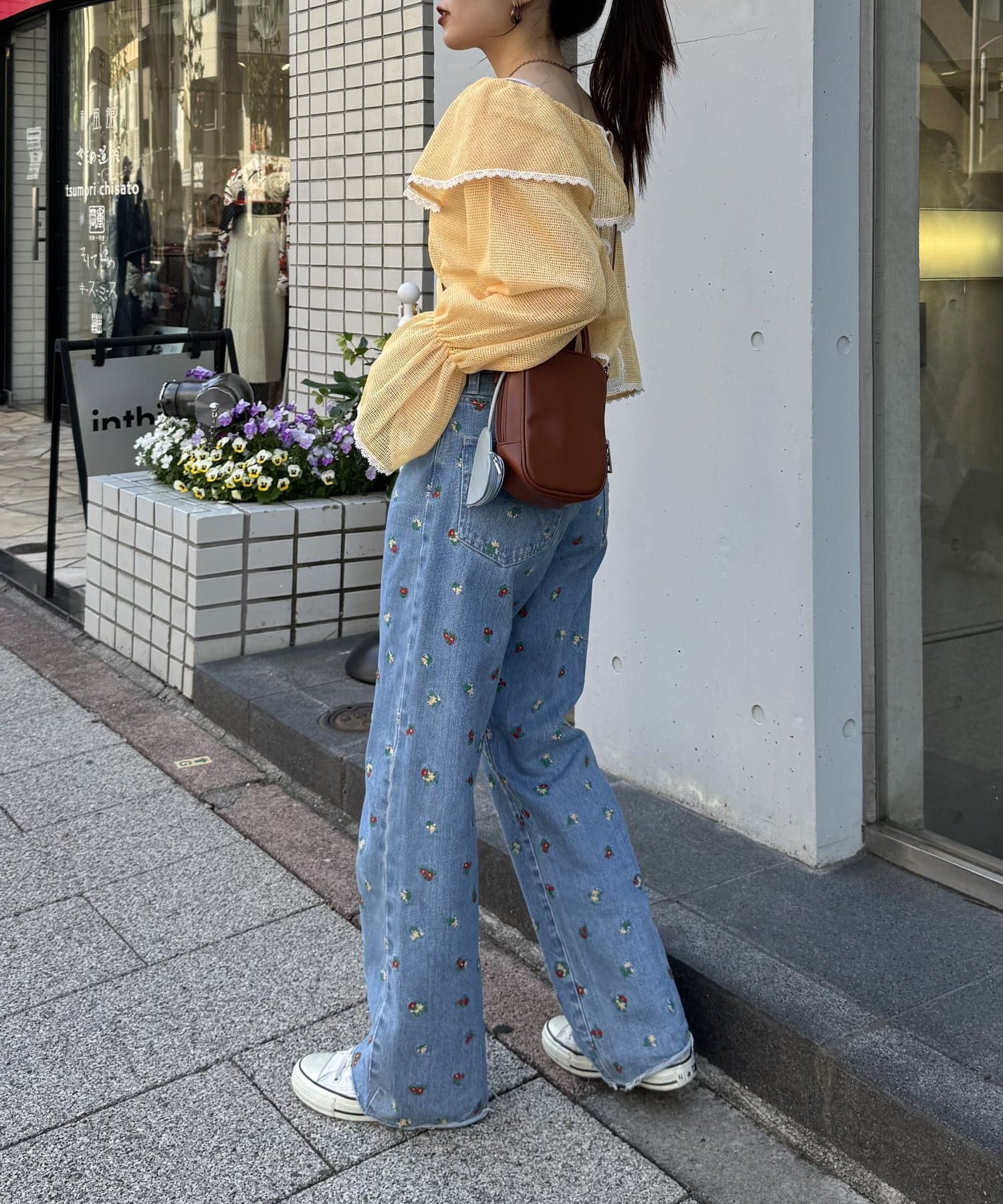 【HELLO.SANFRANCISCO】フラワー刺繍デニム
