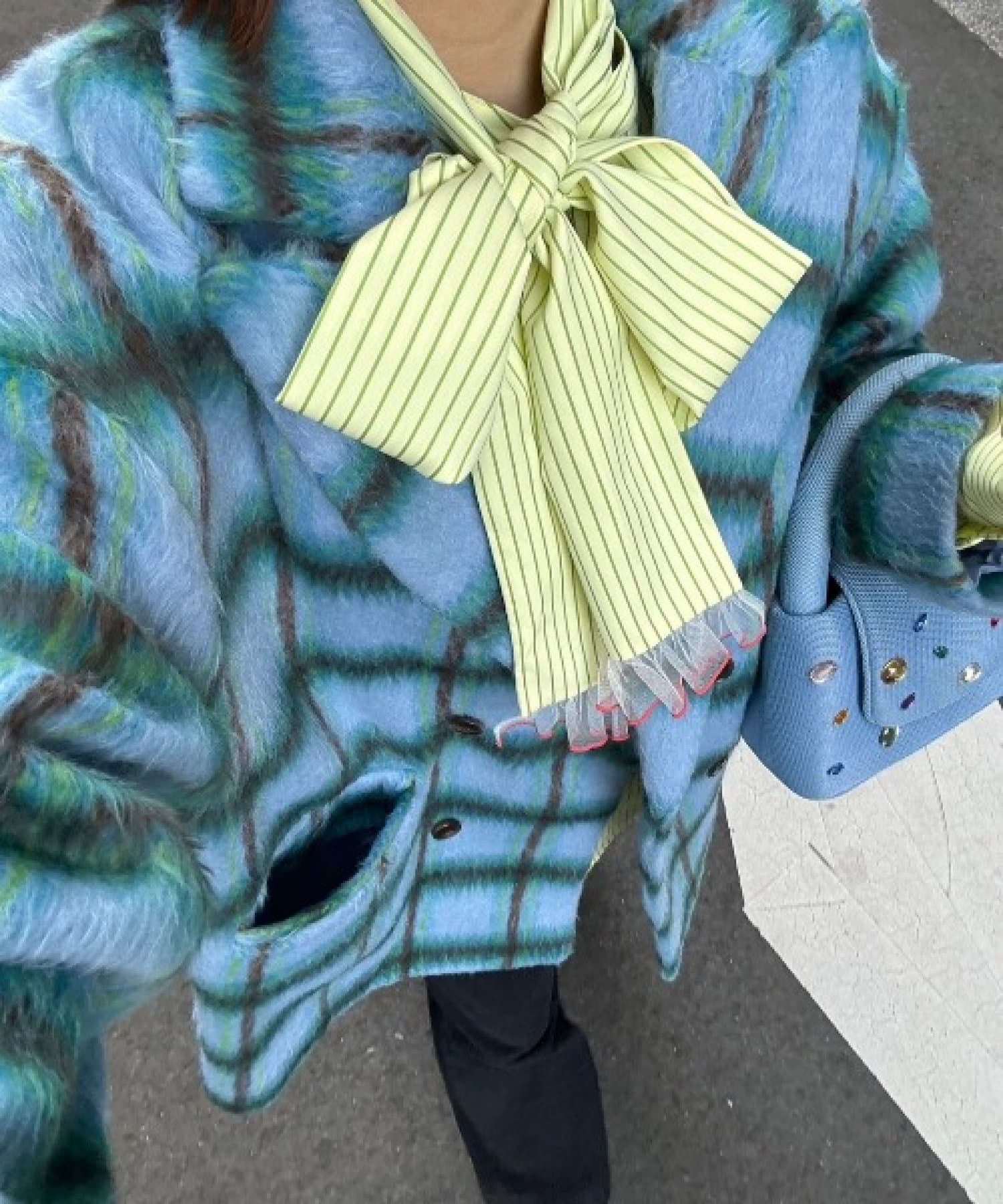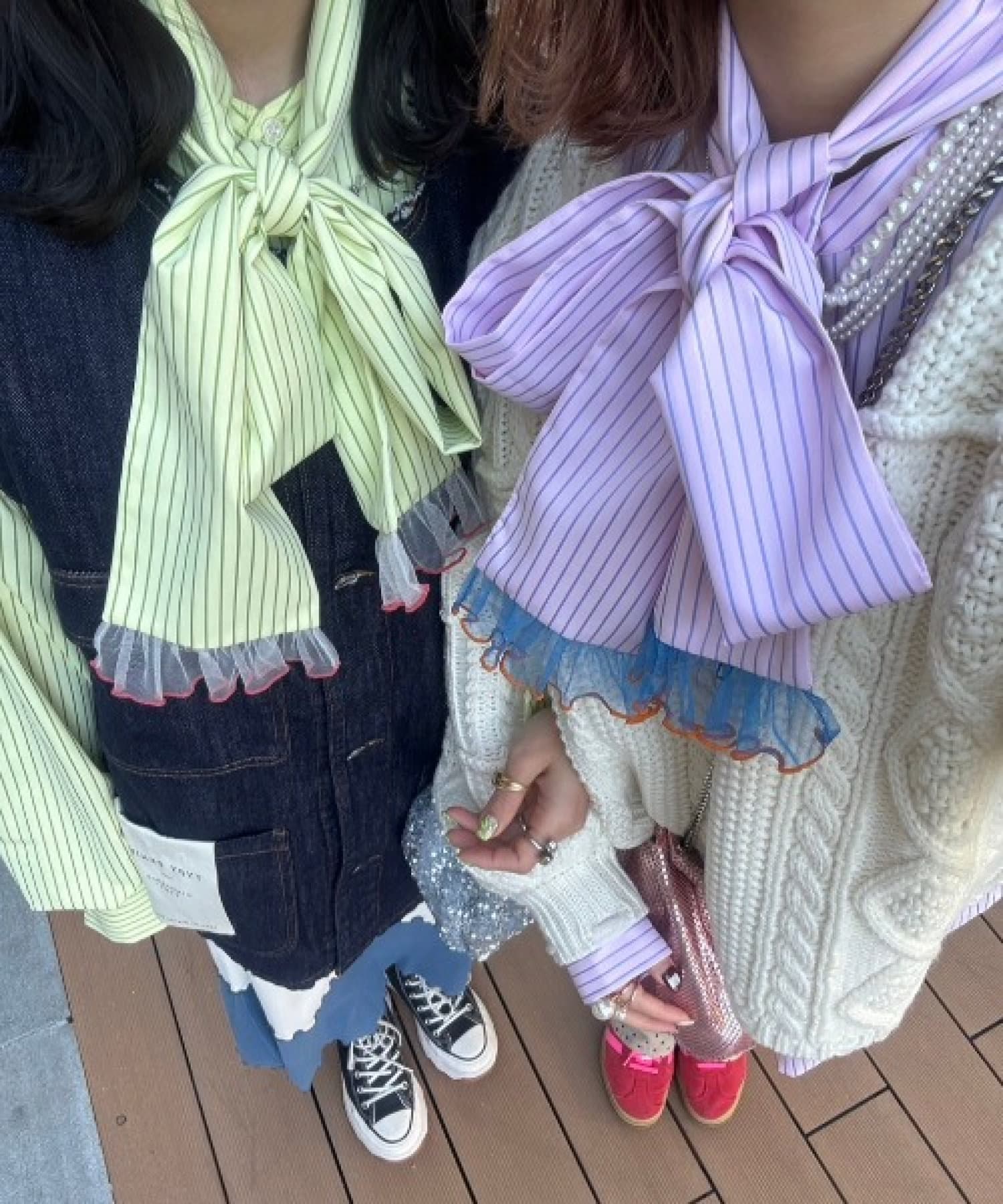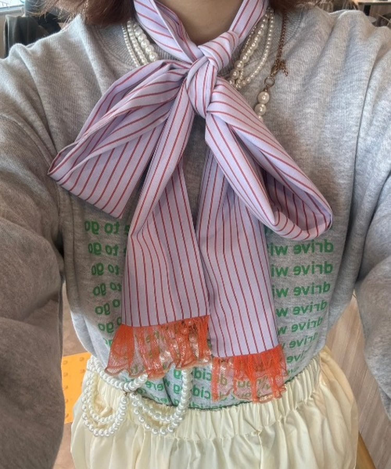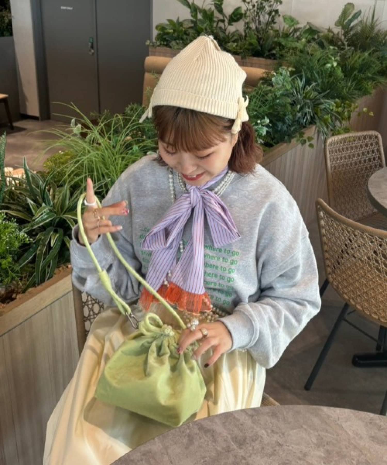 リボンをセットで着用するのはもちろん、お持ちのスウェットやブラウスに合わせたり、バッグに付けての使用も◎