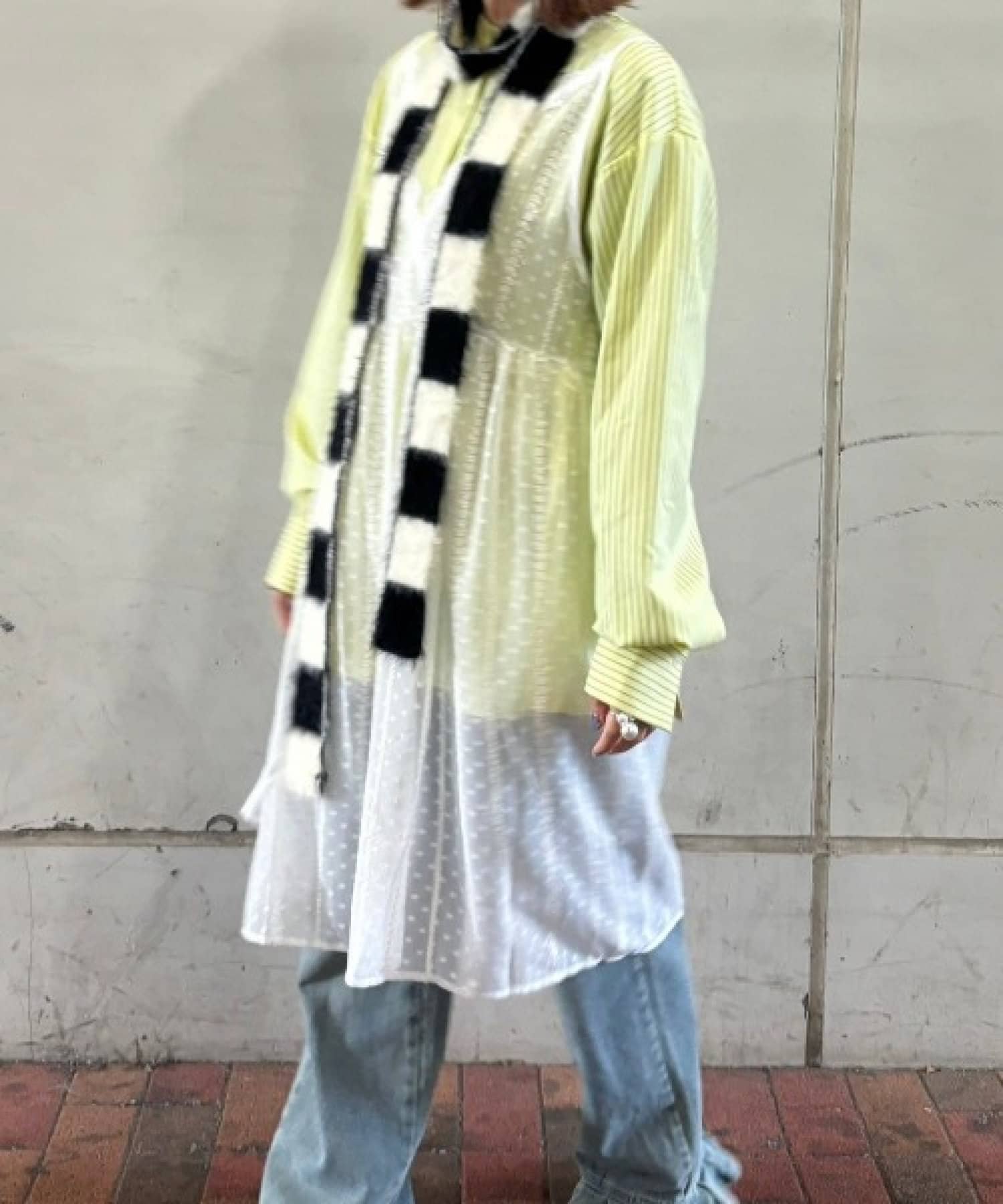 シャツはキャミワンピやミニ丈トップスとのレイヤードもおすすめです◎