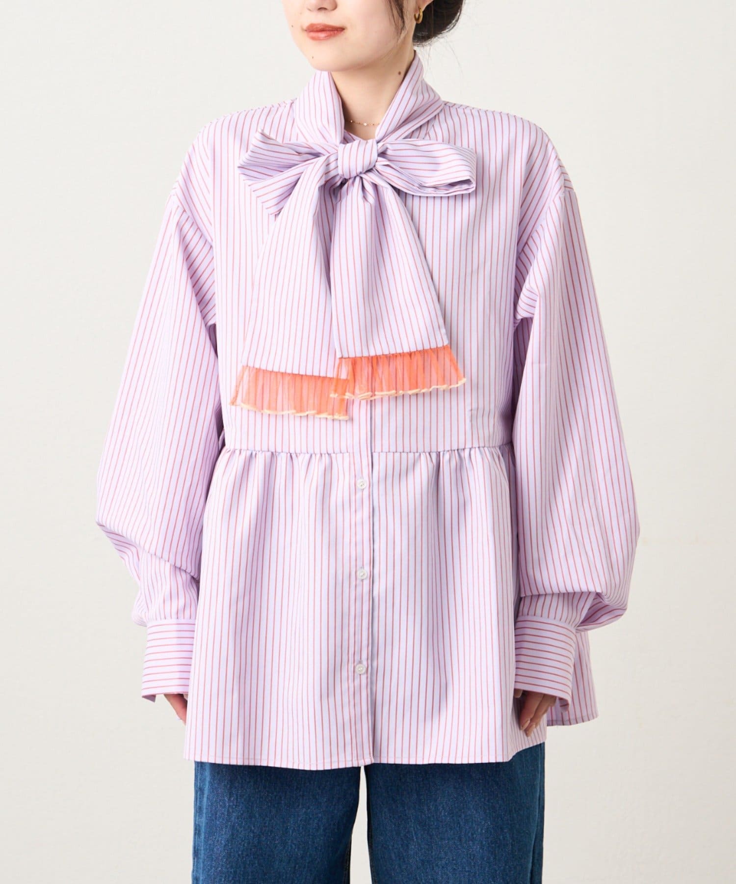 【HELLO.SANFRANCISCO】【momo企画】ストライプ2wayボウタイブラウス