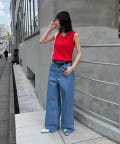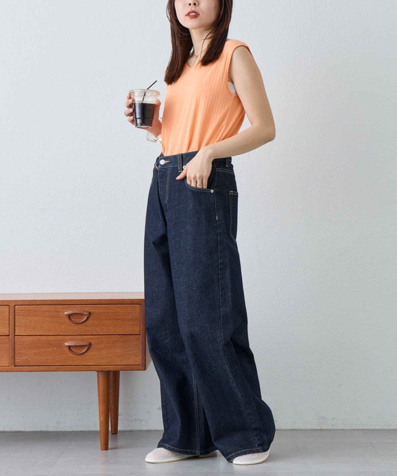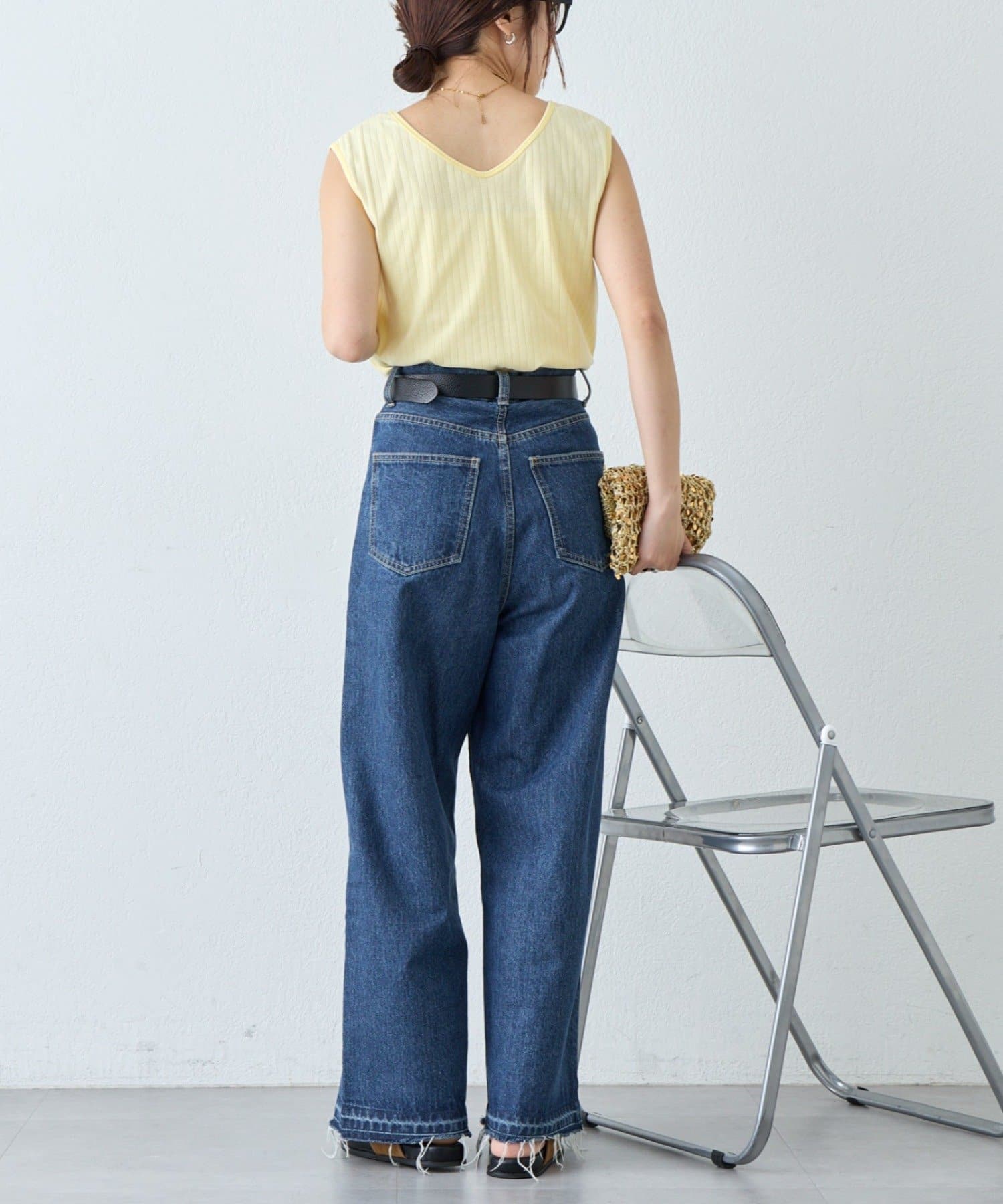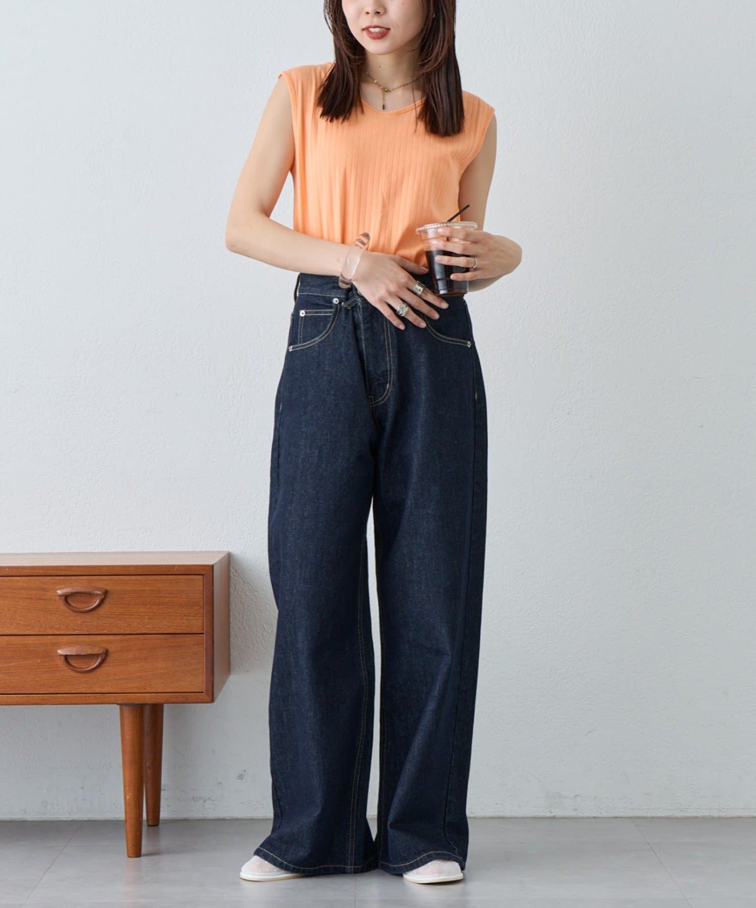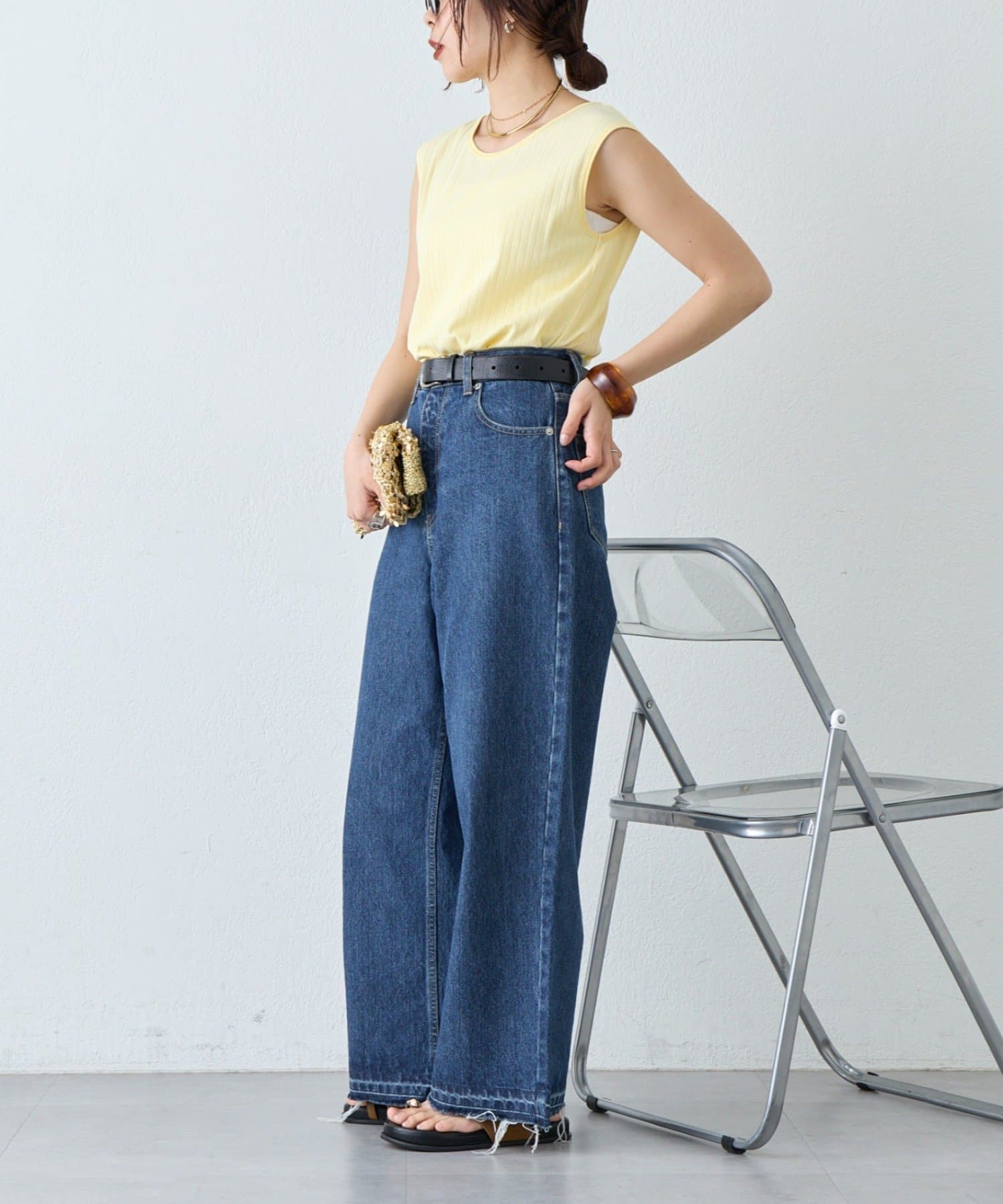 デニムやスラックス、スカートと1枚で着こなす涼し気コーデもおすすめです。
