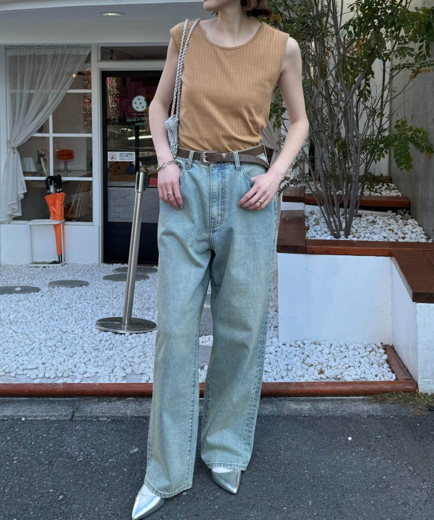 購入場所:店舗シアースラブ刺繍Tに合わせようと購入しましたが、色味が他のトップスにも合わせやすいのでほぼ毎日着ています。