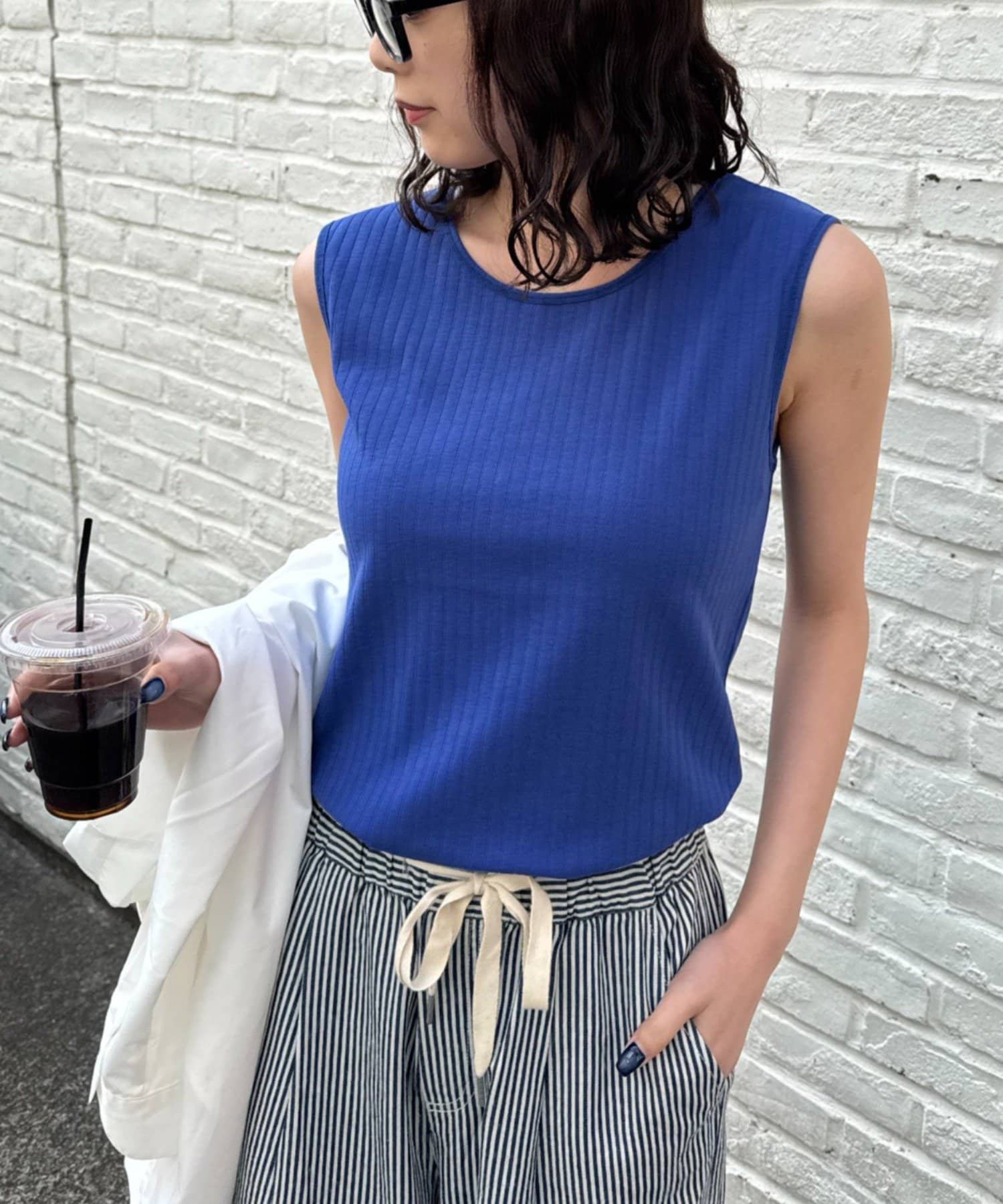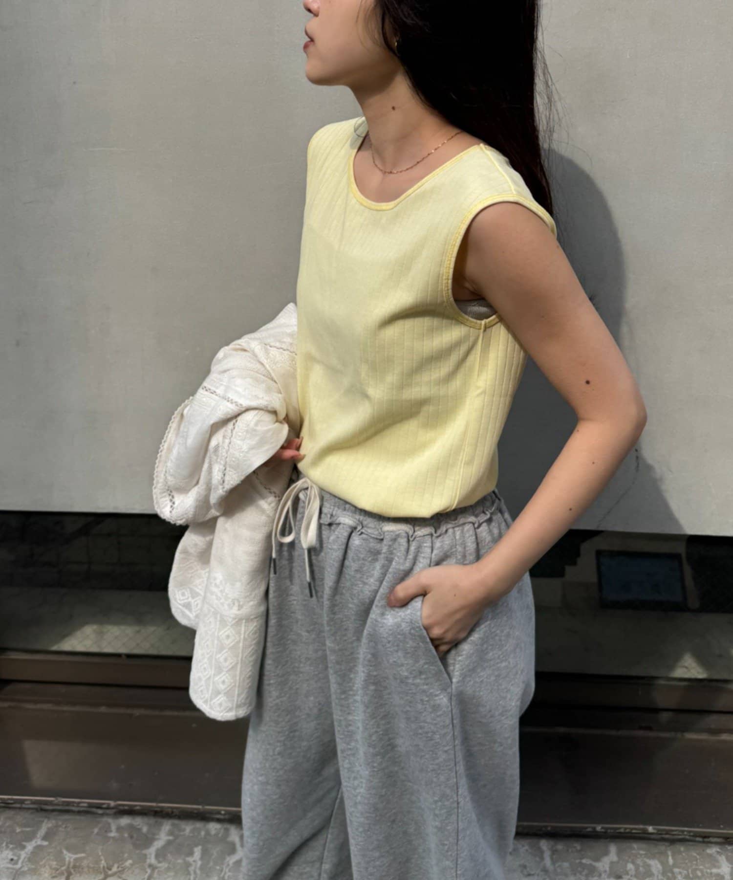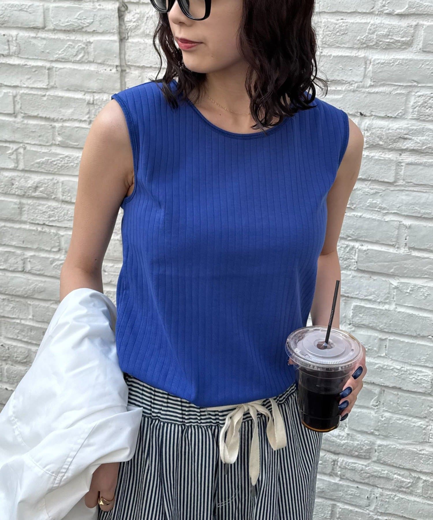 肩部分が太めになっているので安心感があり、夏は1枚で着ても◎