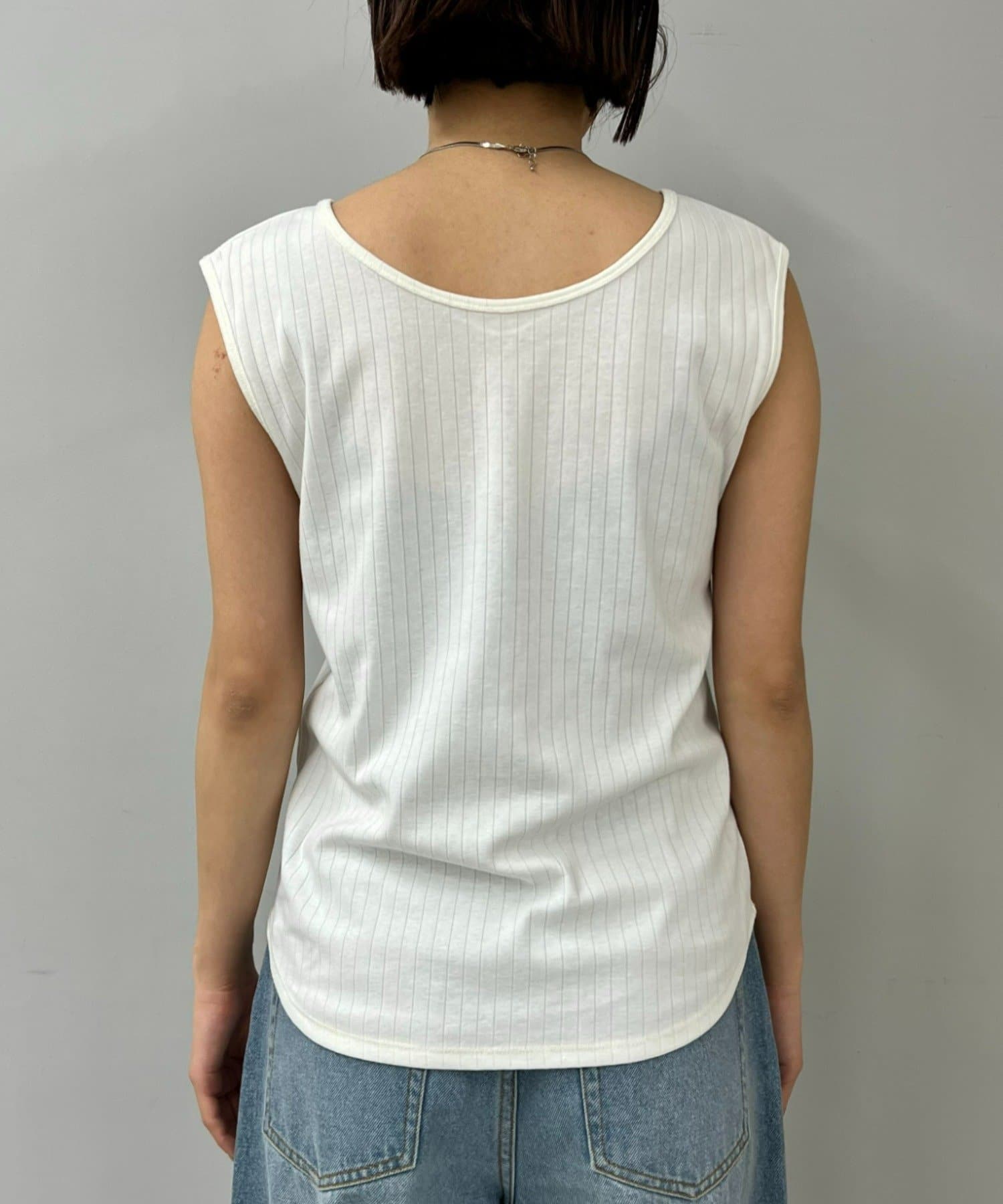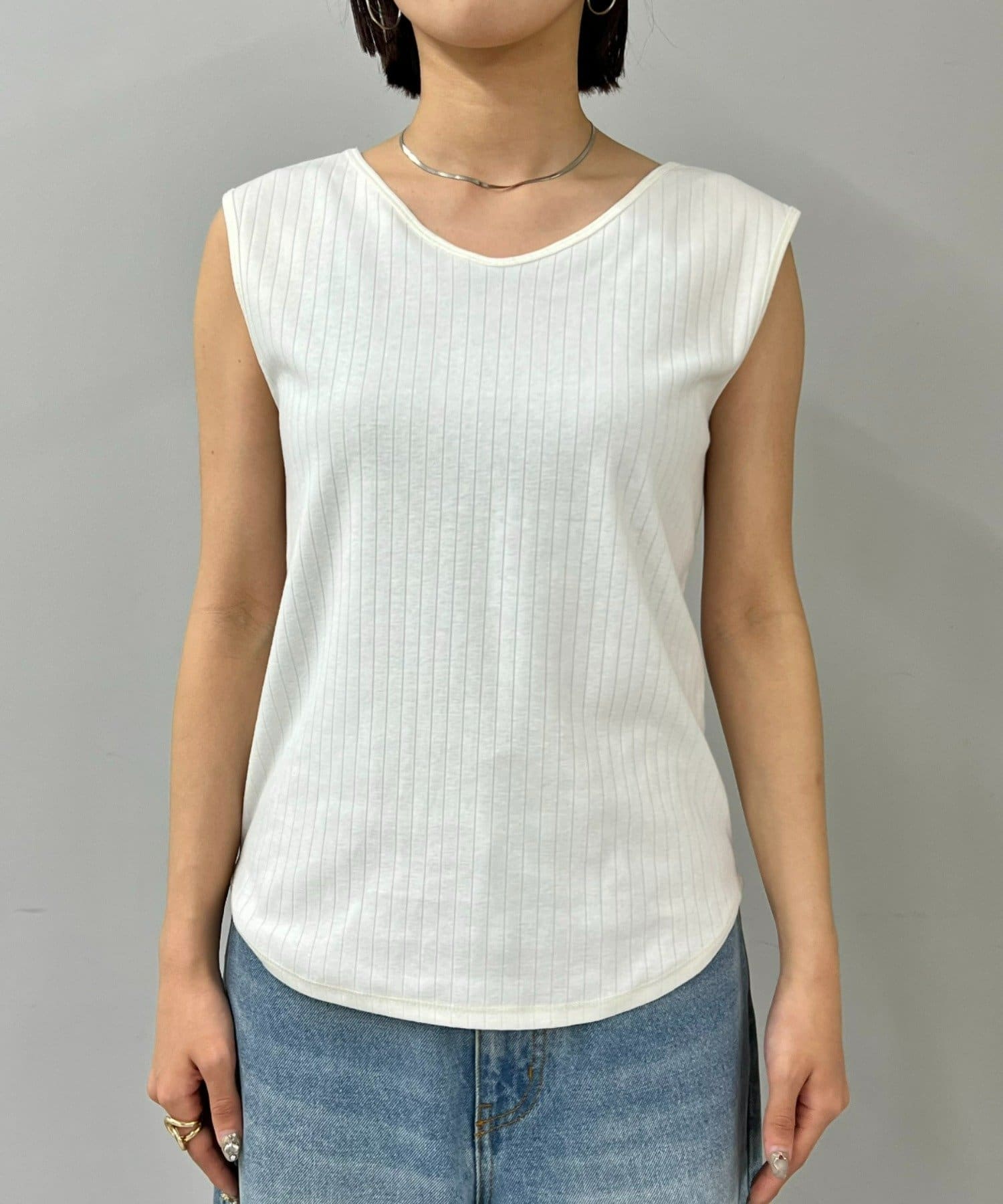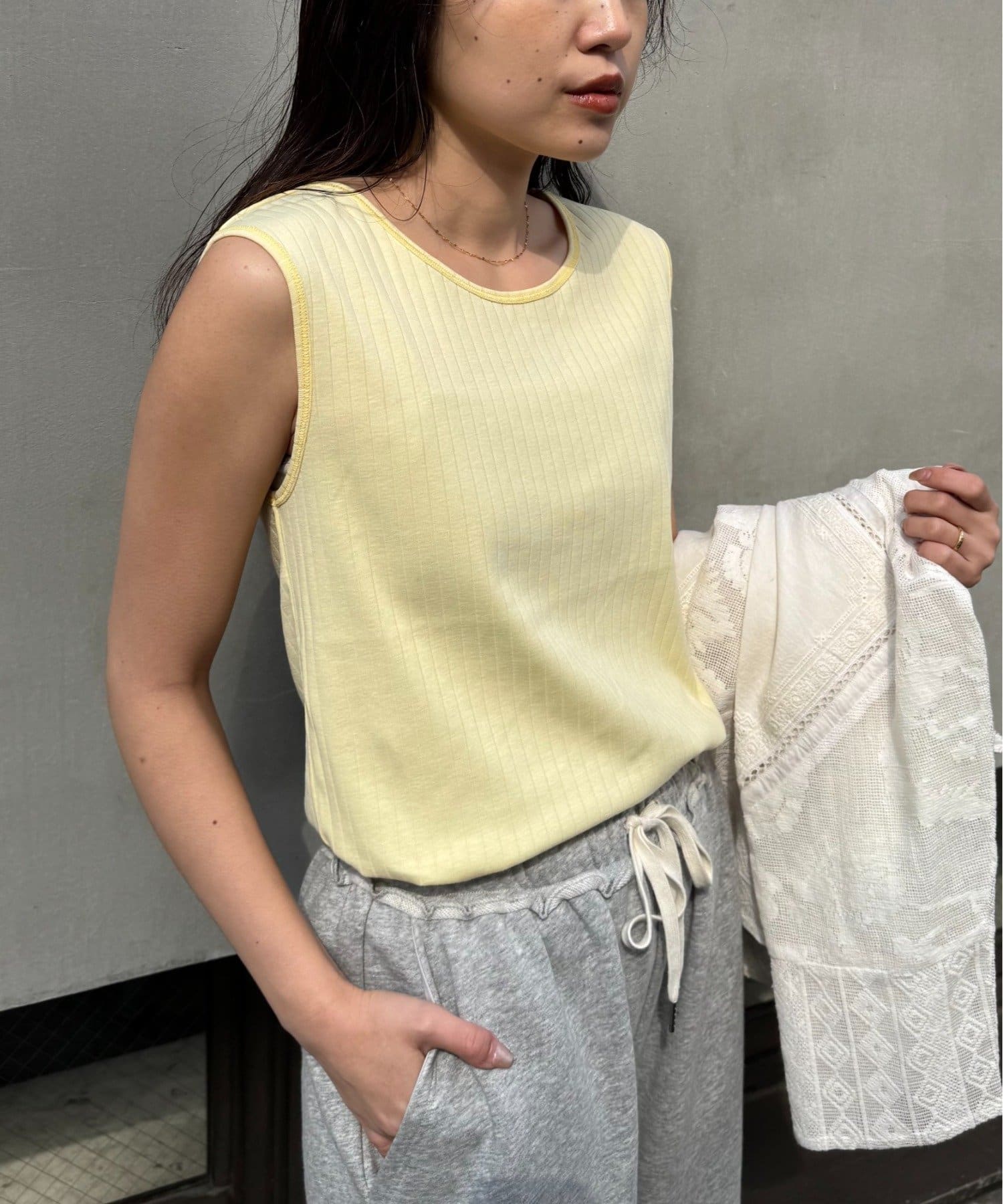 Vネックとクルーネックの前後2WAYで着用いただける便利なタンクトップ。