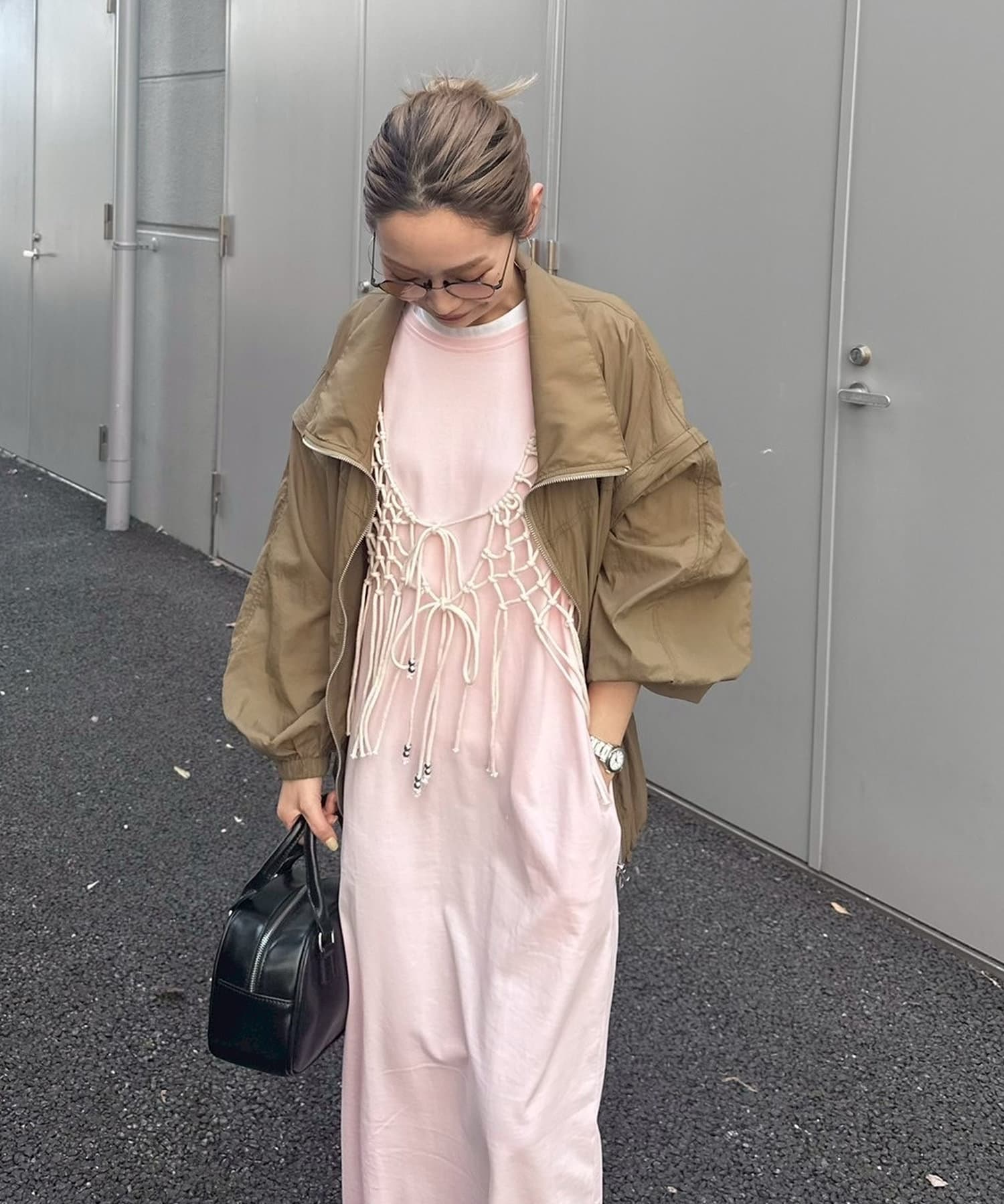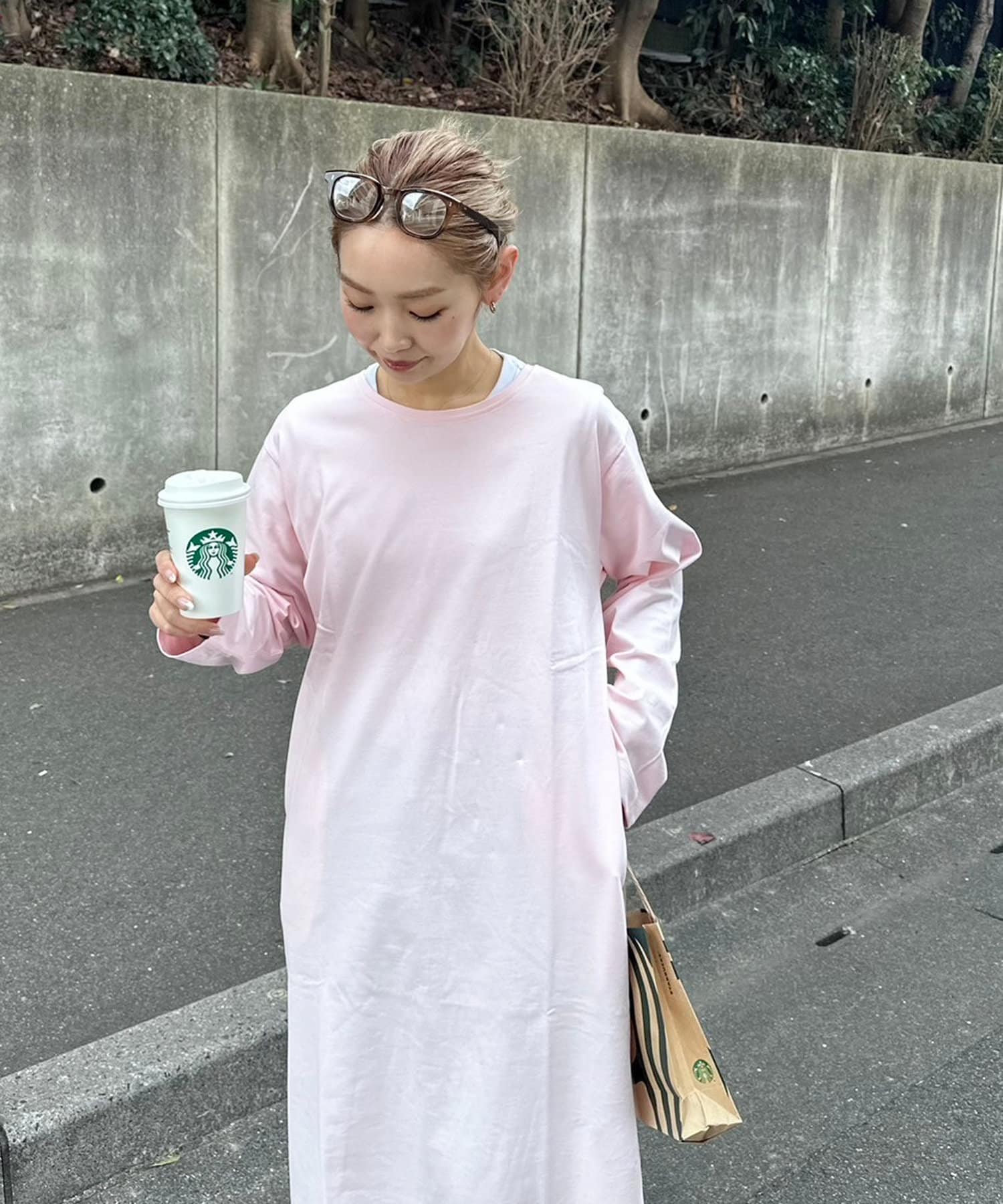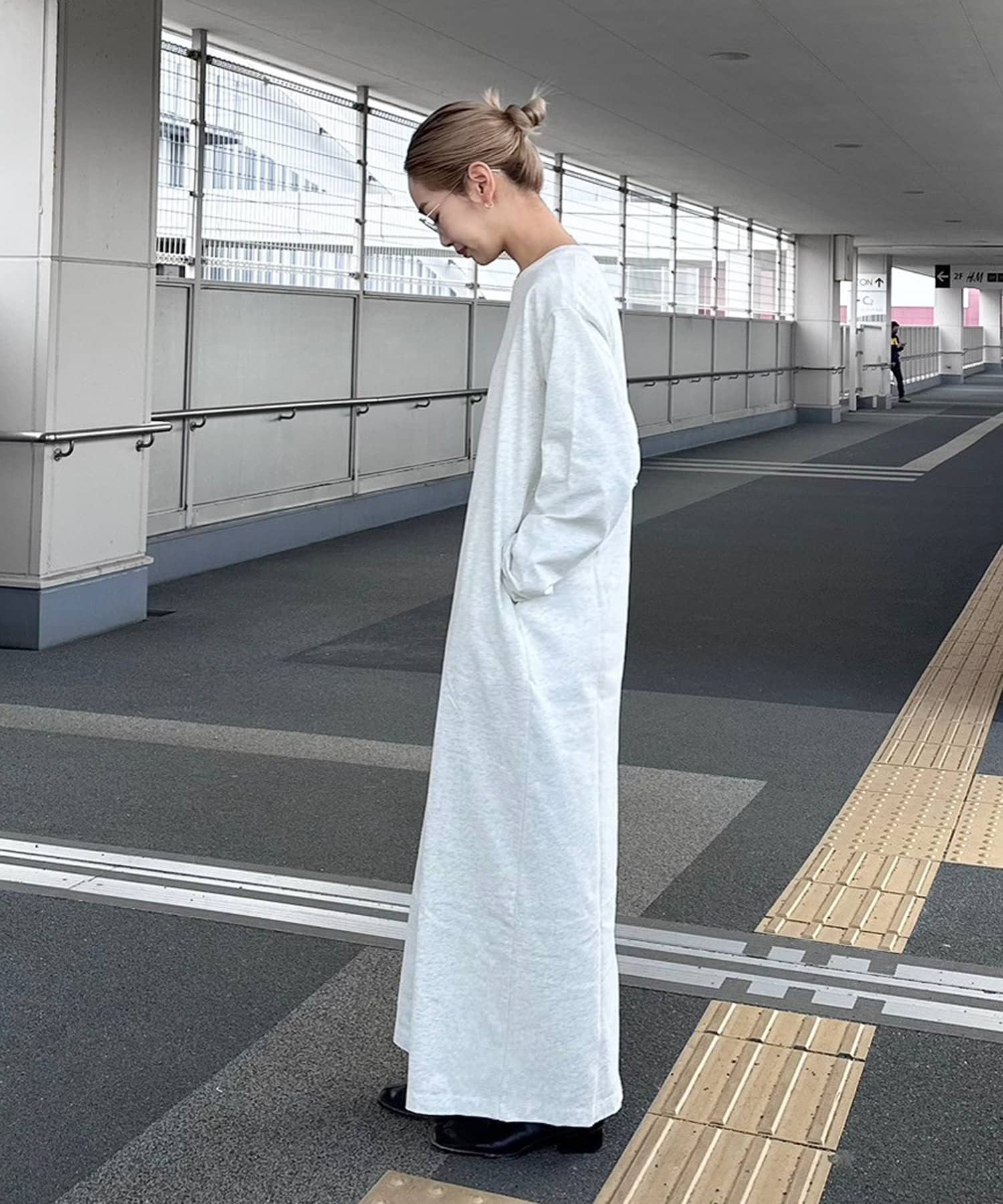 シンプルなのでいろんなアレンジ、レイヤードができる万能マキシ丈ワンピース。
