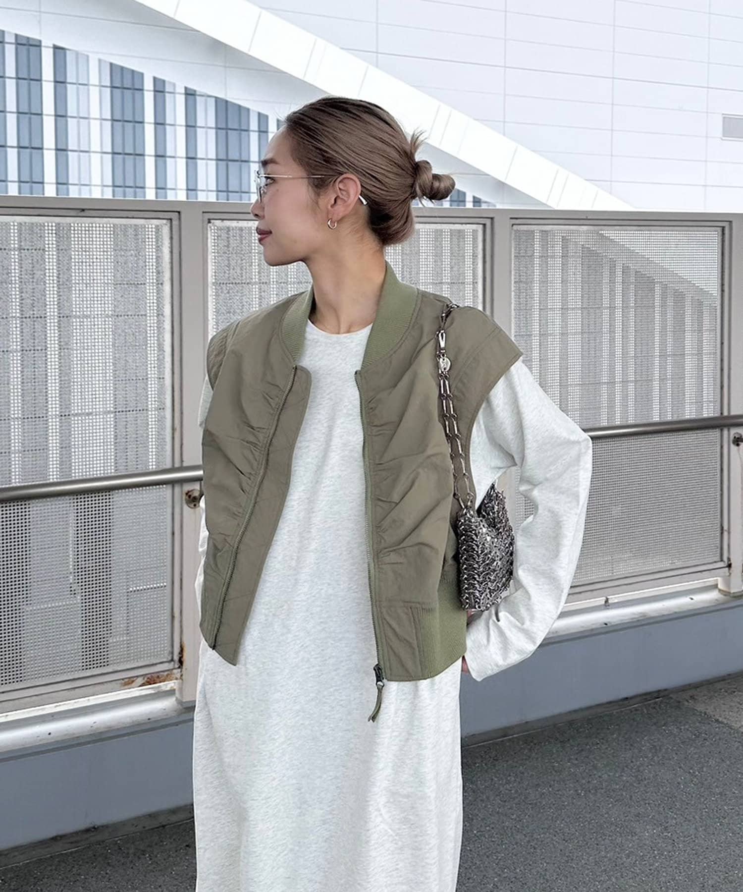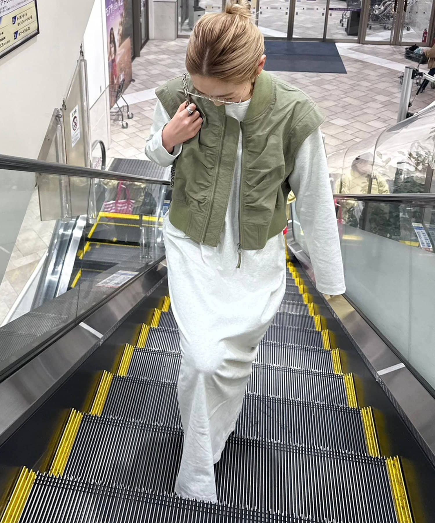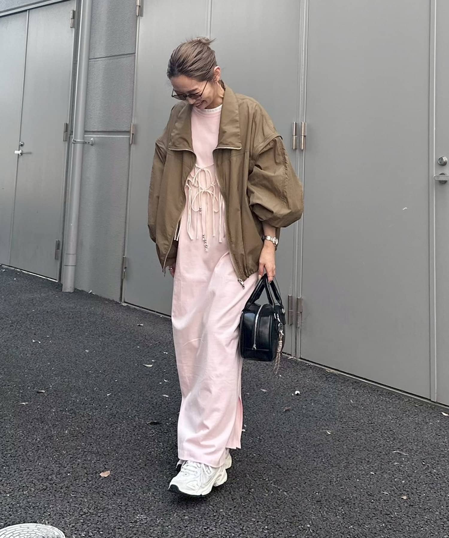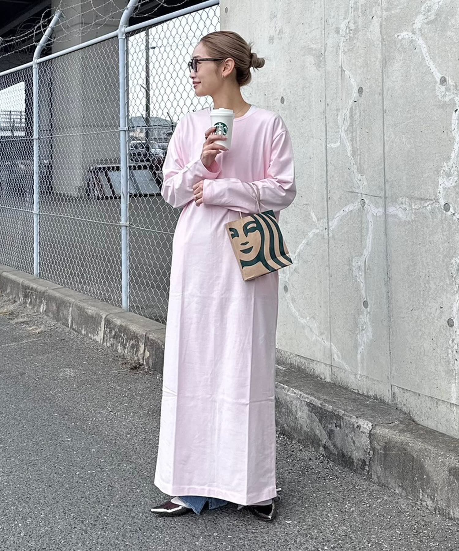 シンプルなのでいろんなアレンジ、レイヤードができる万能マキシ丈ワンピース。