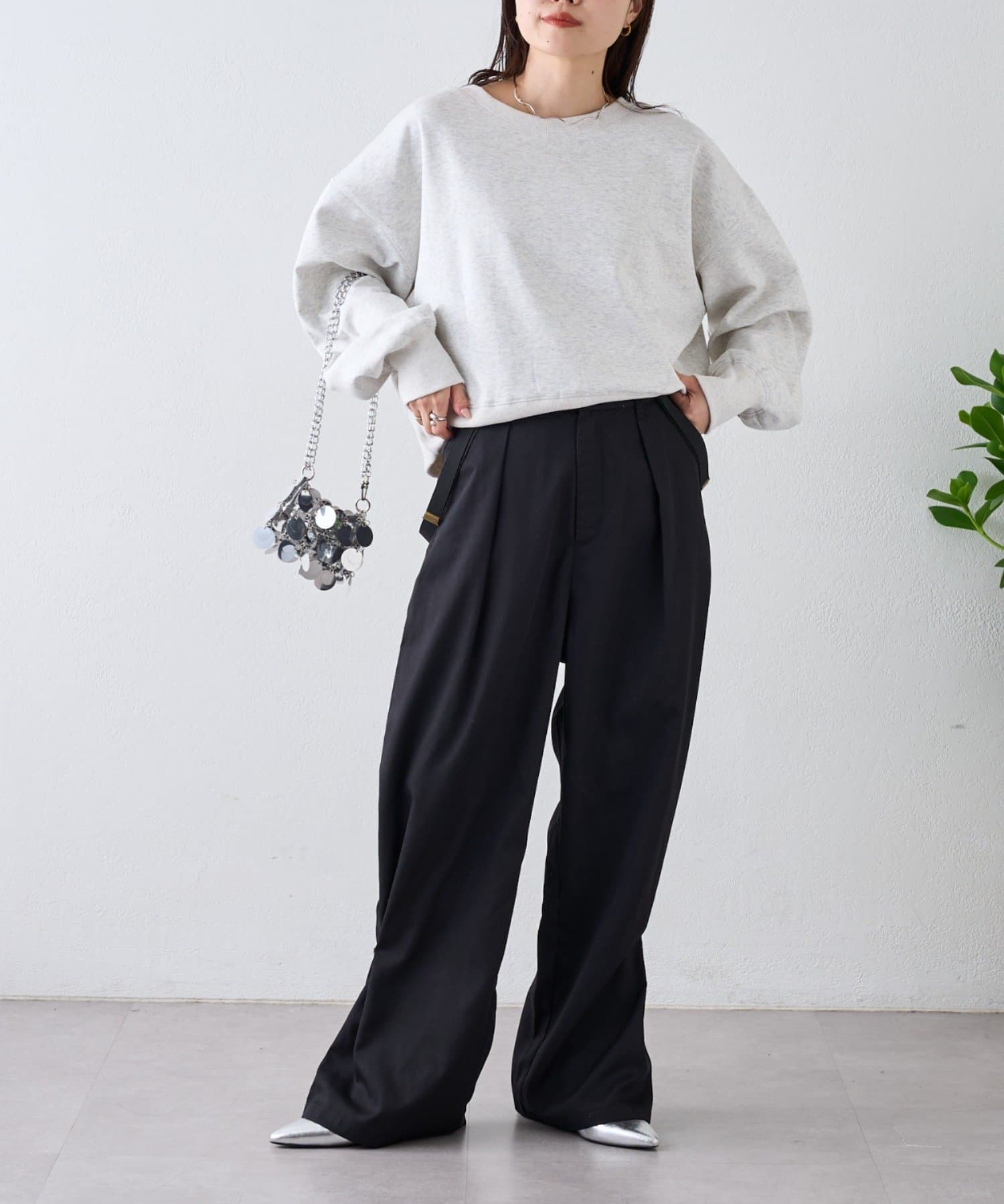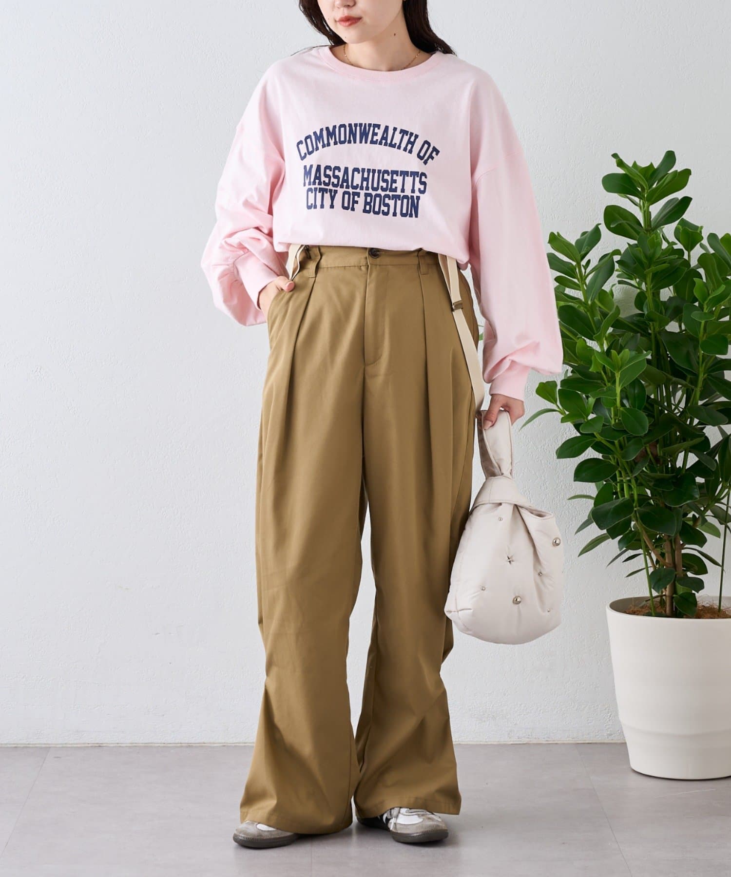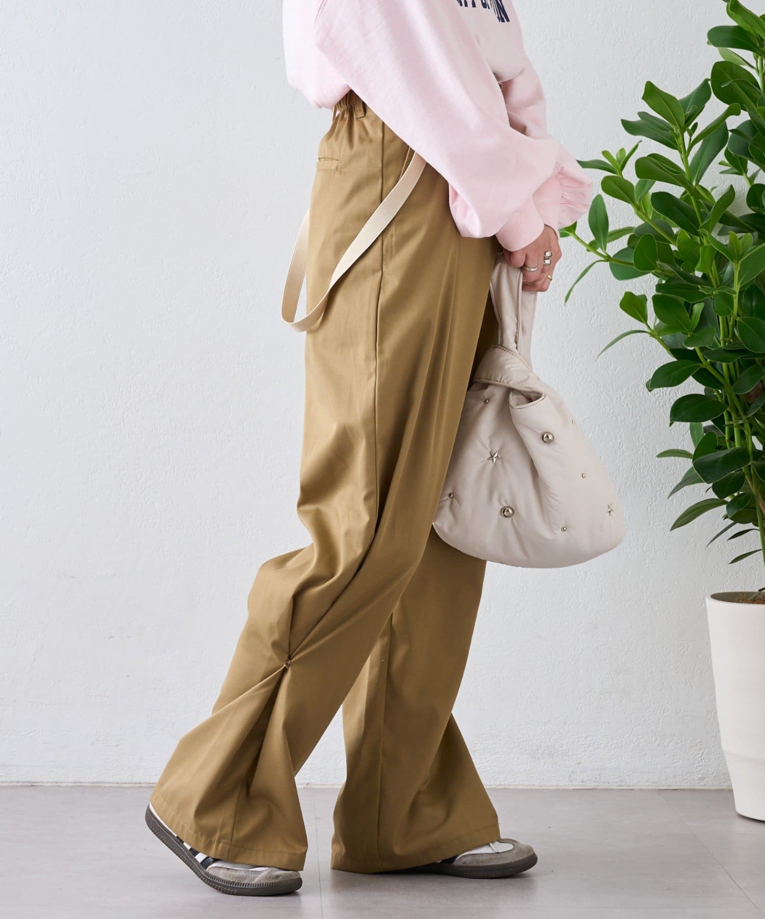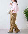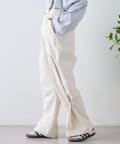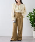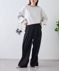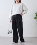 フレアシルエットにすると女性らしく、ワイドにするとカジュアルにご着用いただけるのが魅力のパンツ。