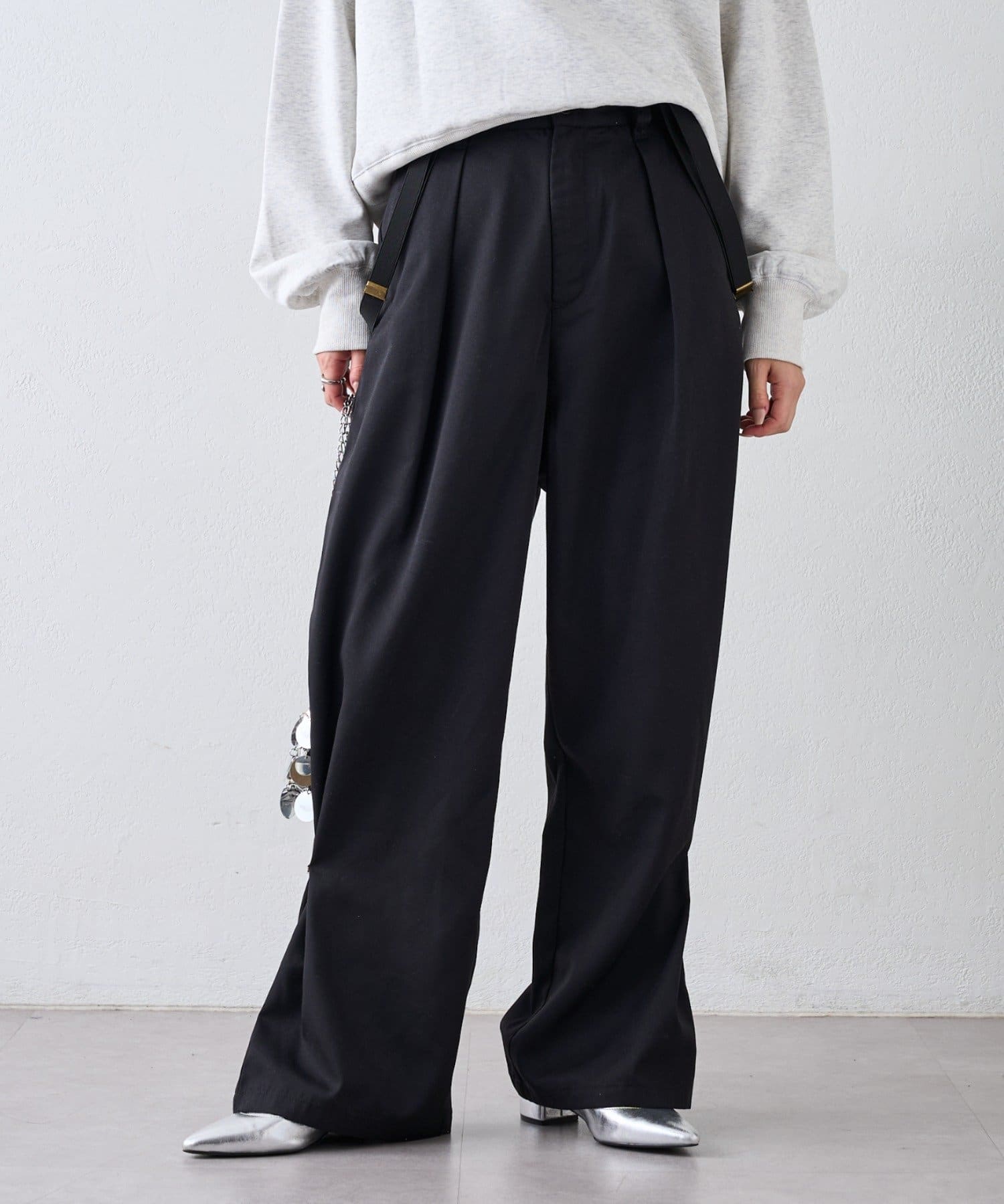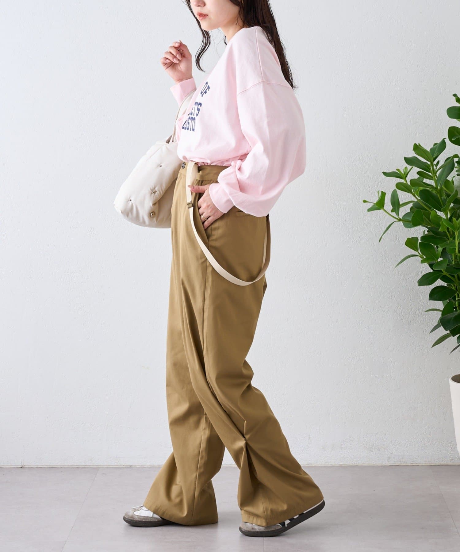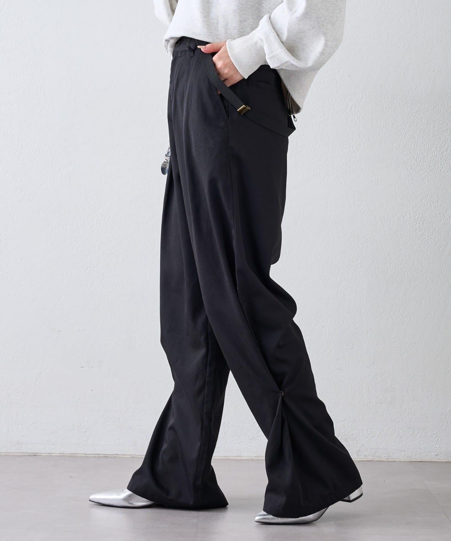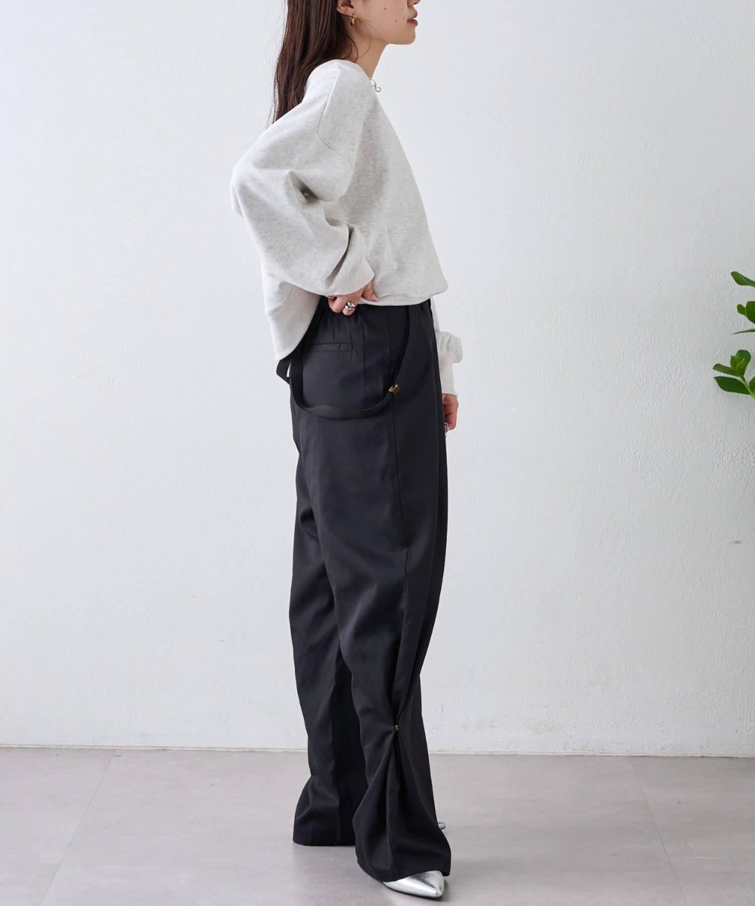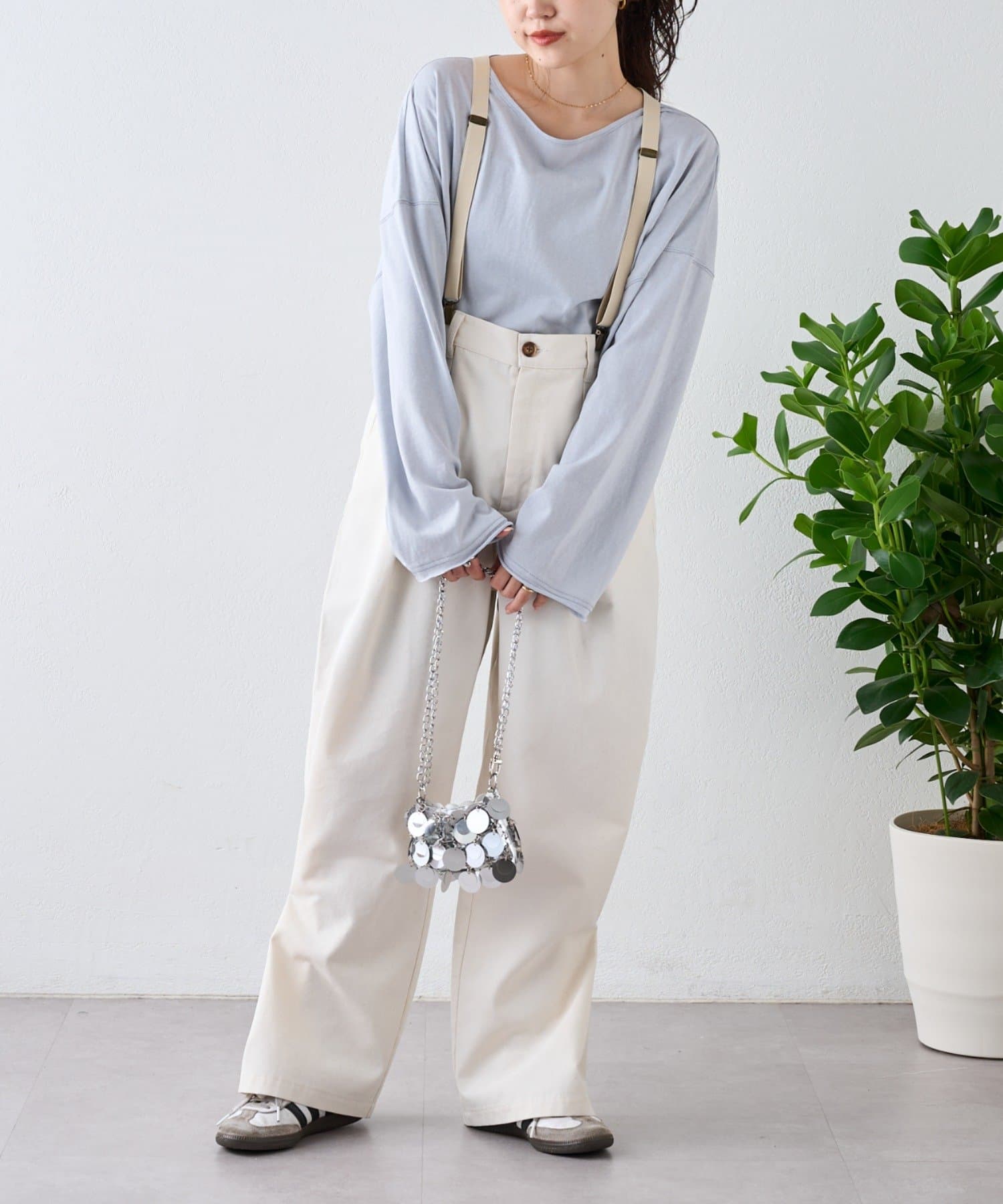 サイドボタンやサスペンダー次第で、コーデの幅が広がるパンツ。