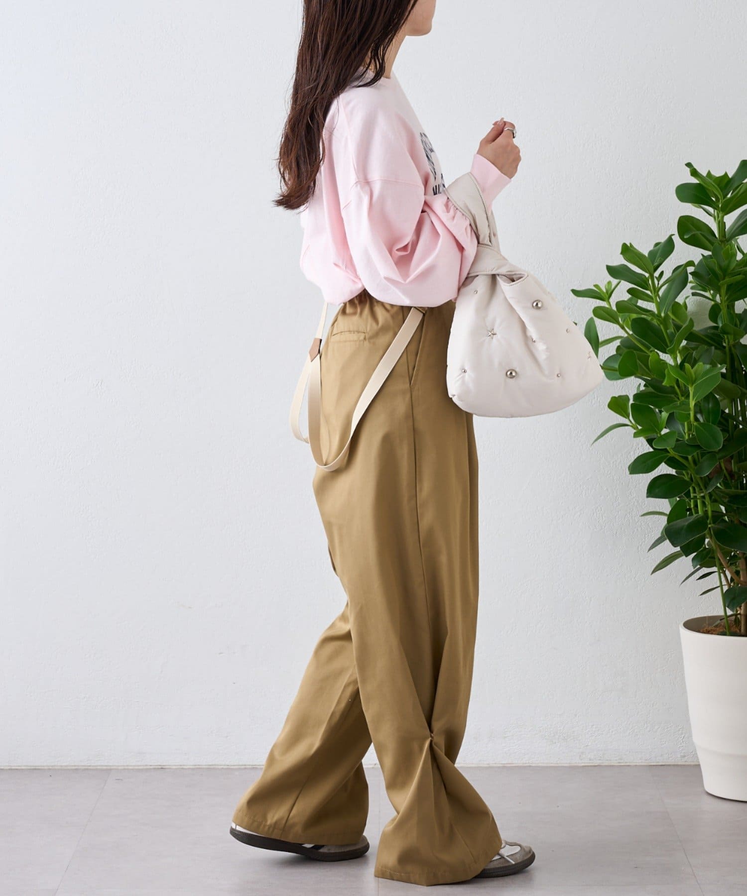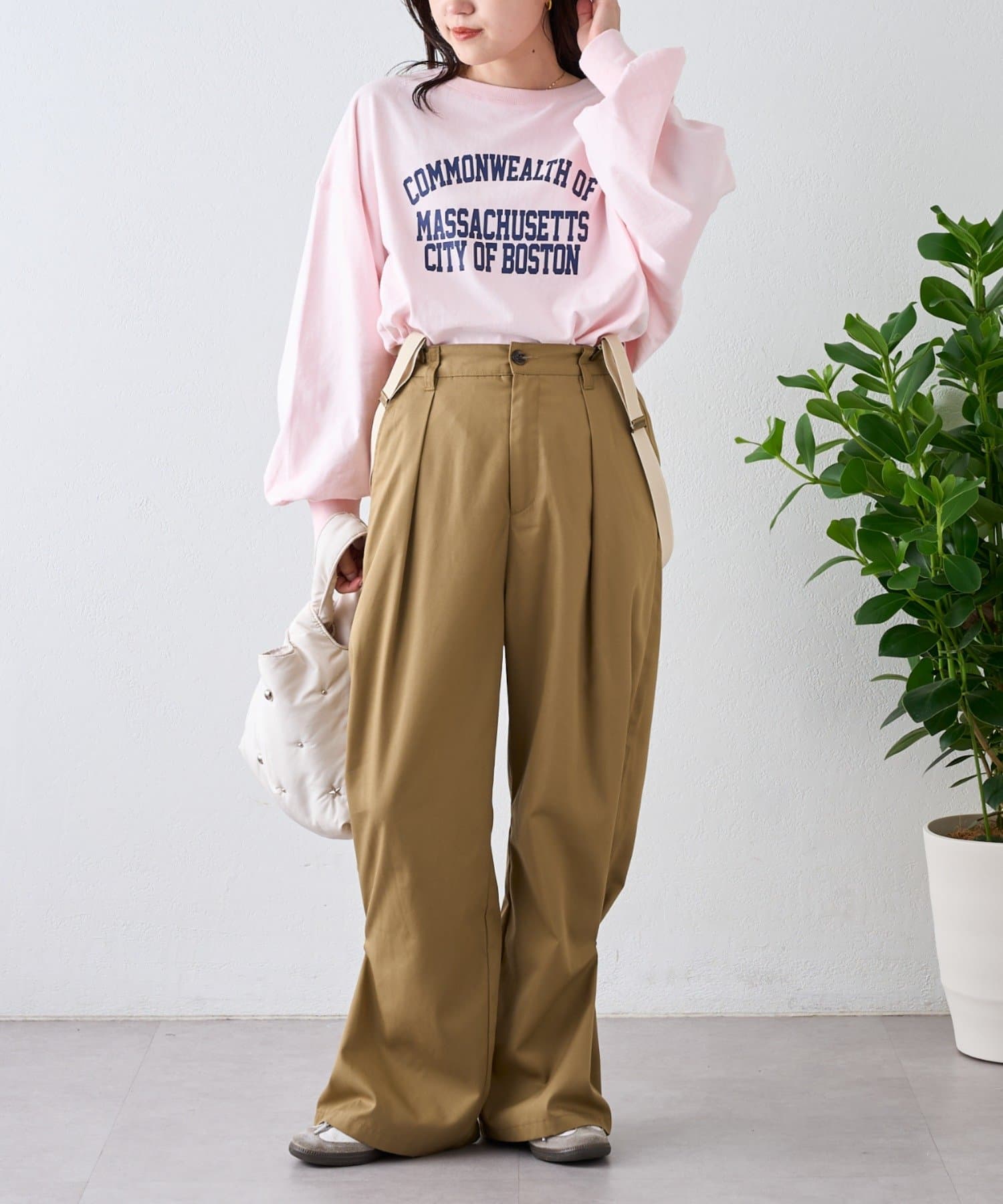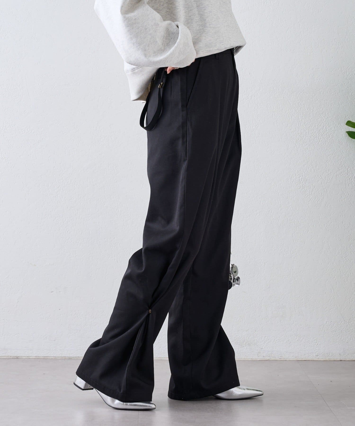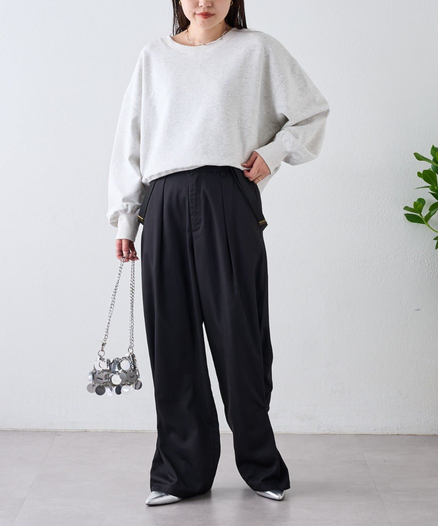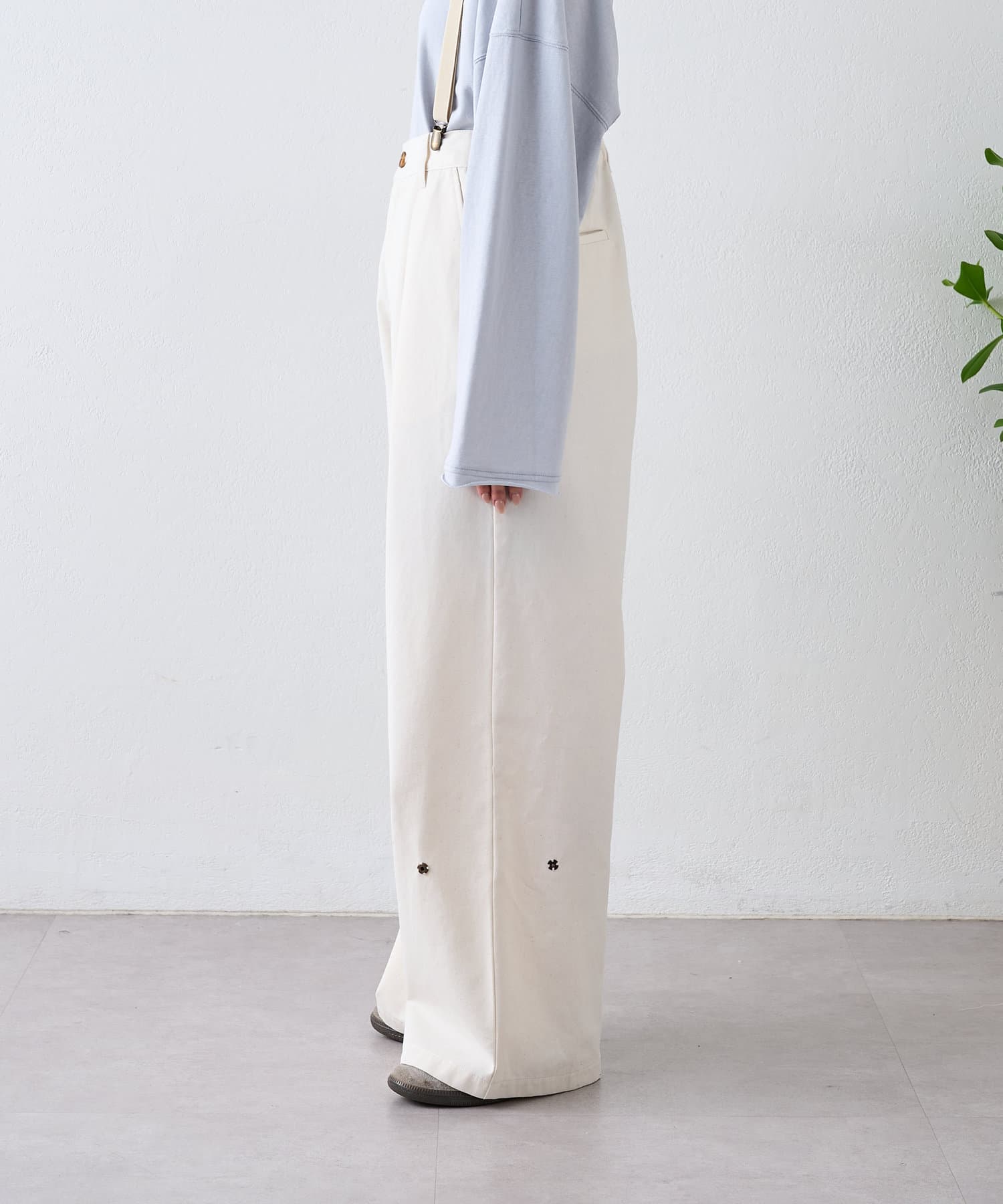サイドボタンやサスペンダー次第で、コーデの幅が広がるパンツ。