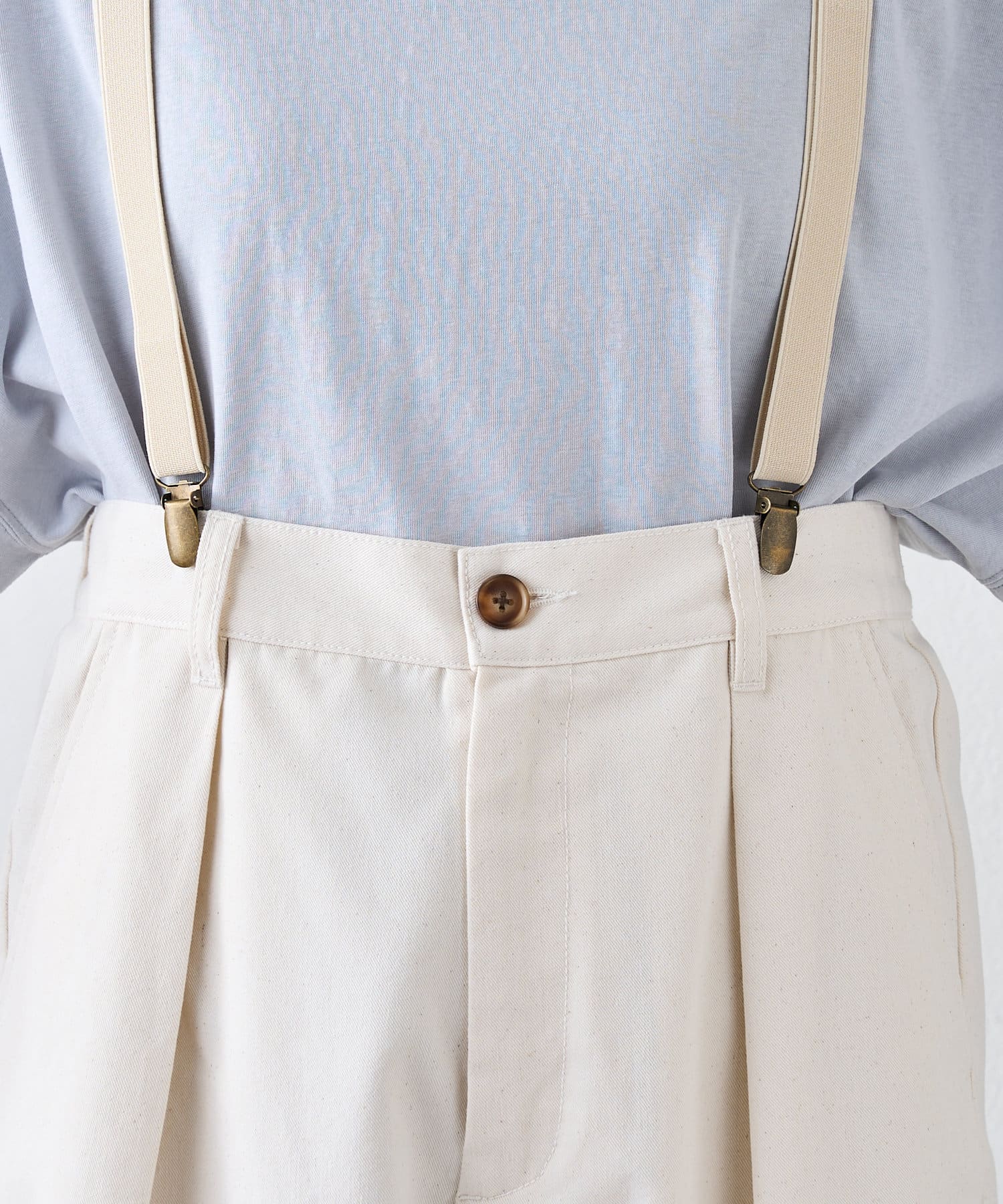 サスペンダーは付け外し可能なのであらゆる着こなしができます。