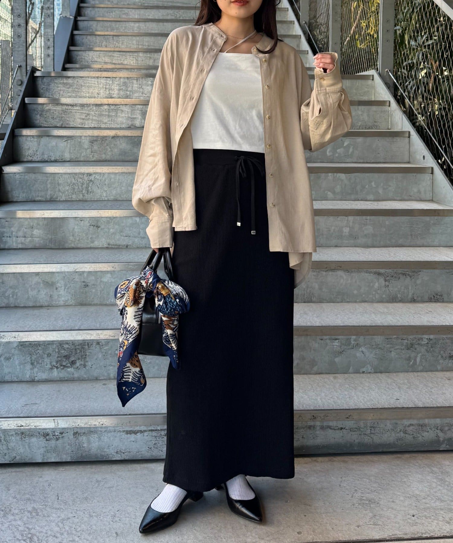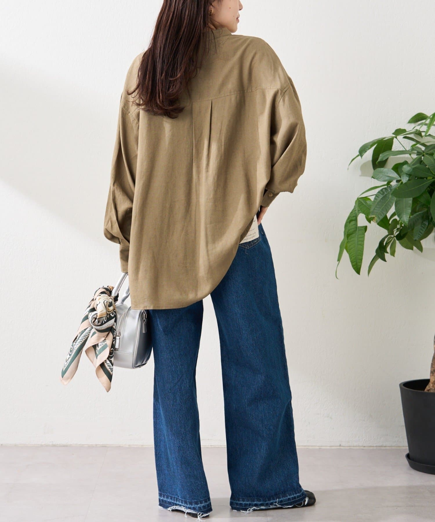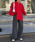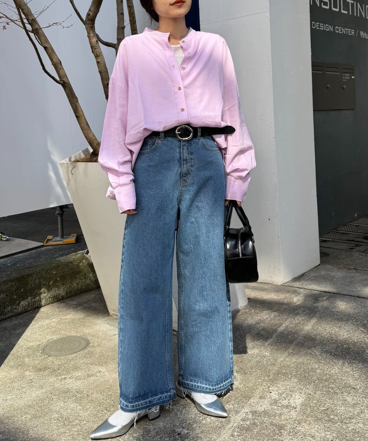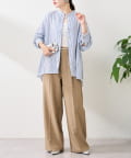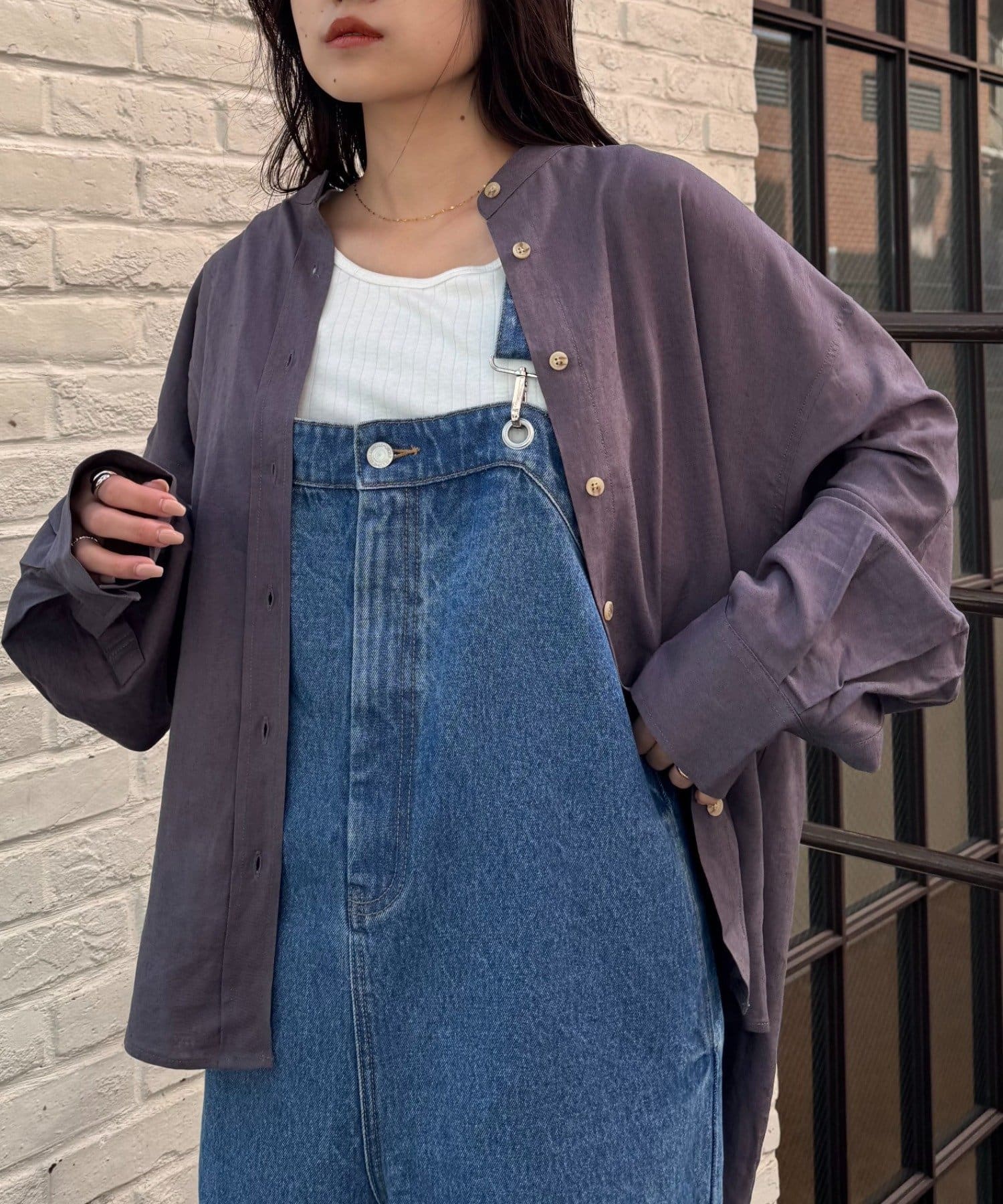 ボタンを閉めてトップスとして着用すればきちんと感のあるコーデに。