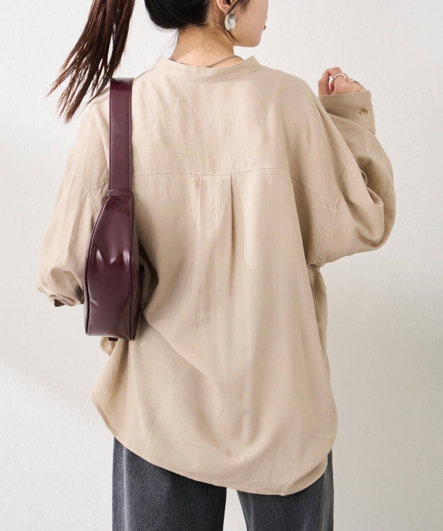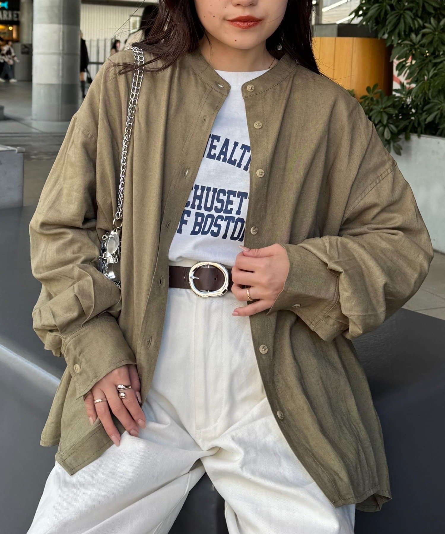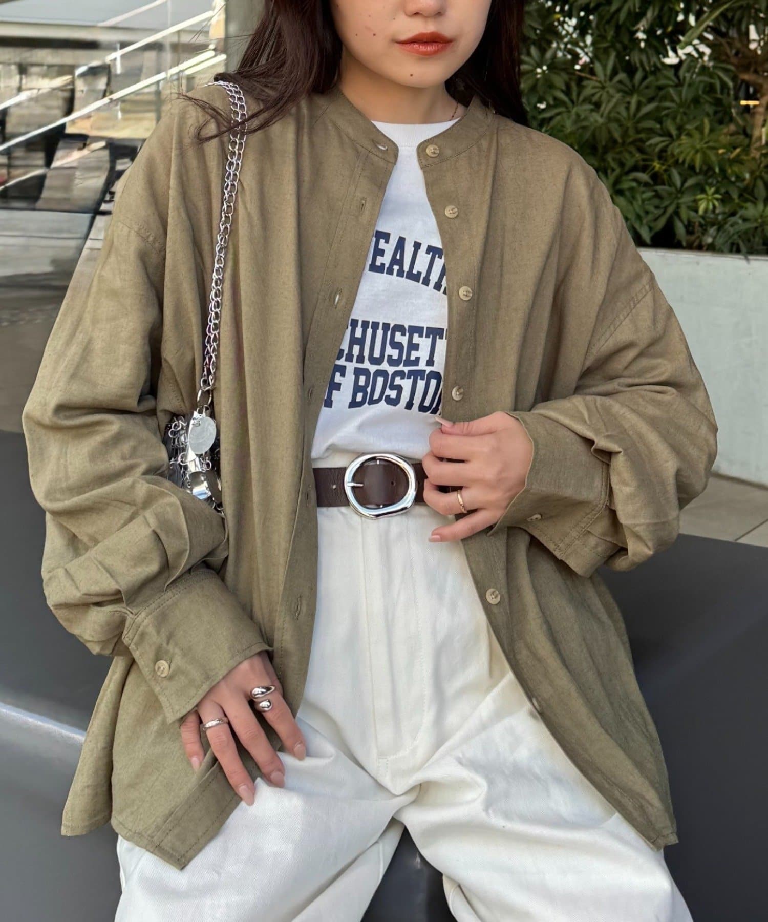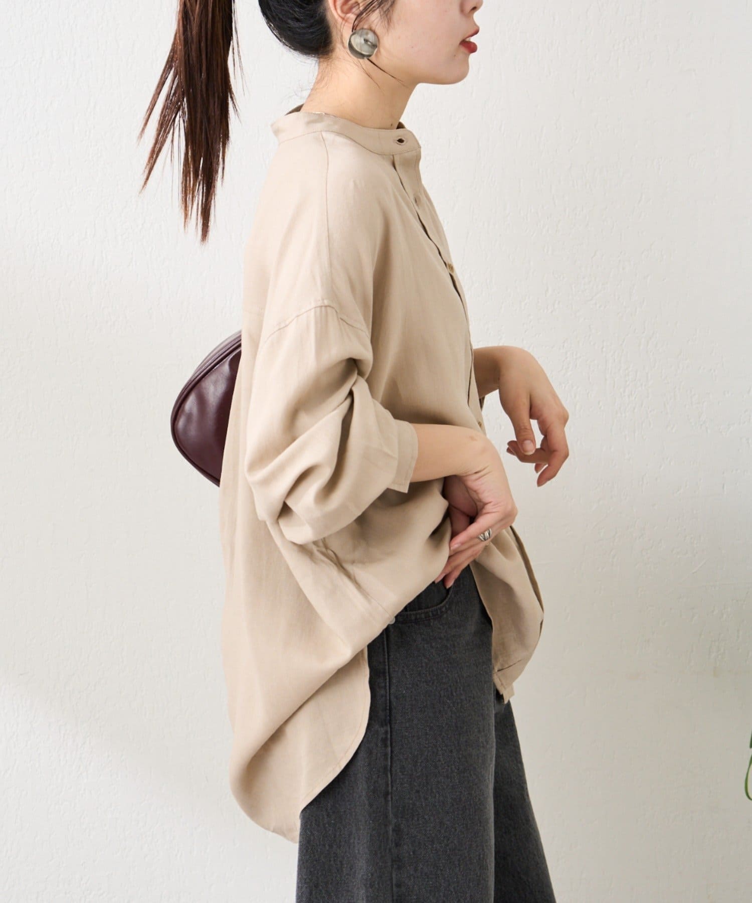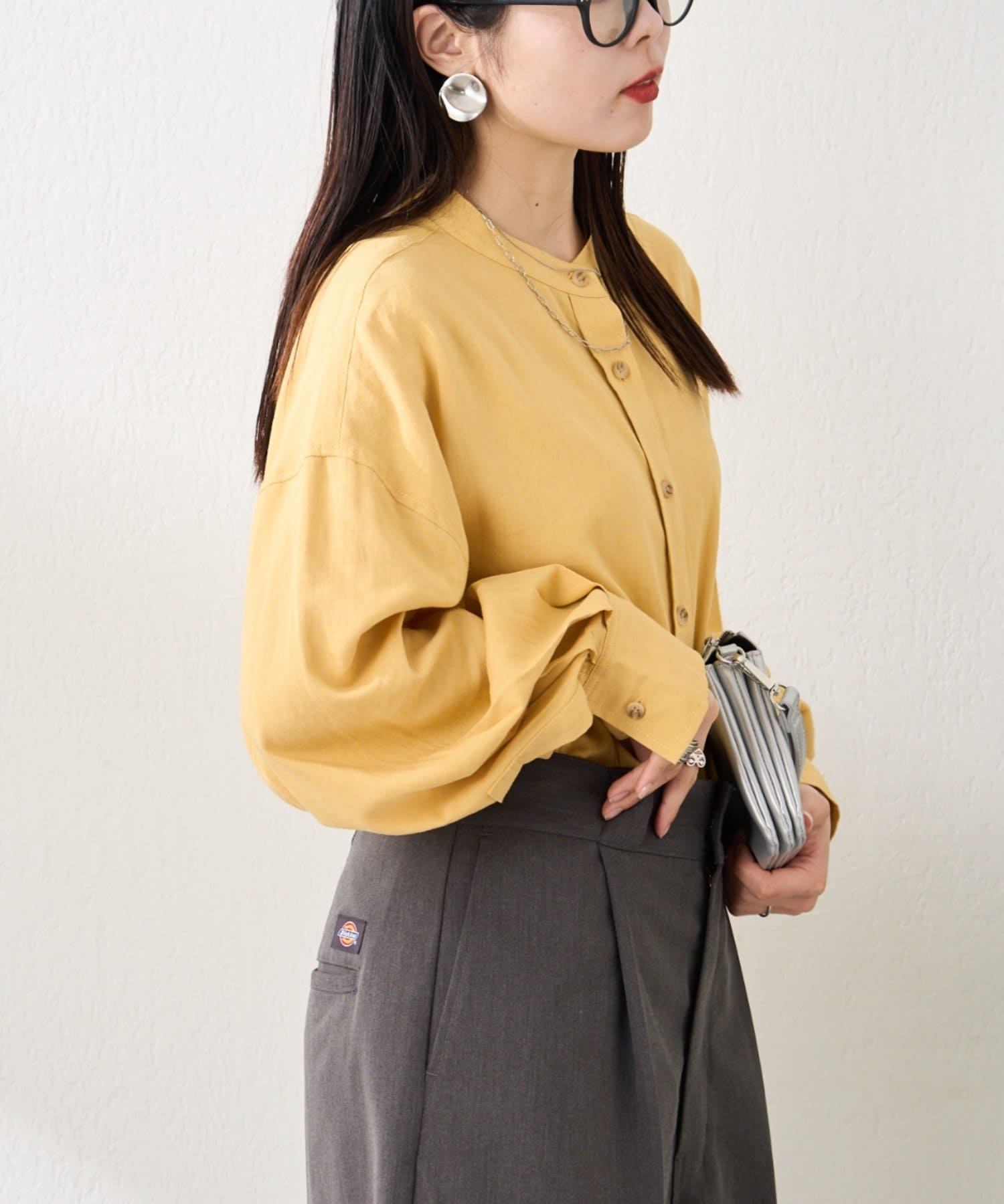 バンドカラーは顔周りをすっきり見せてくれ、レイヤードスタイルにも使いやすいデザインです!
