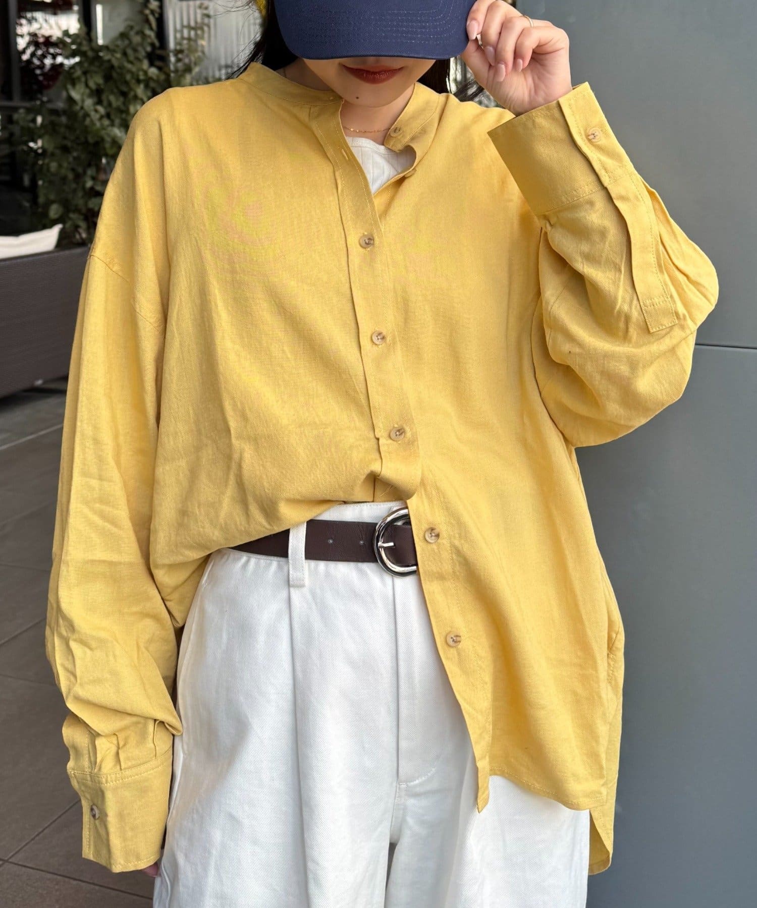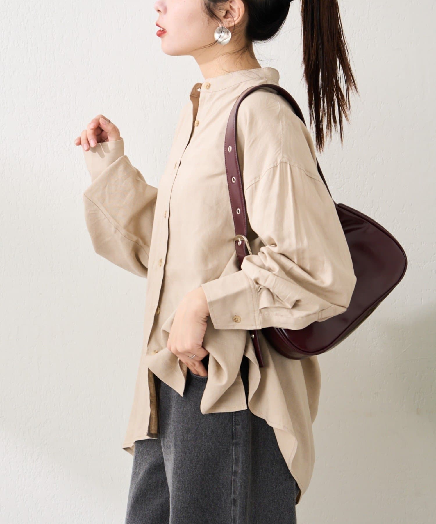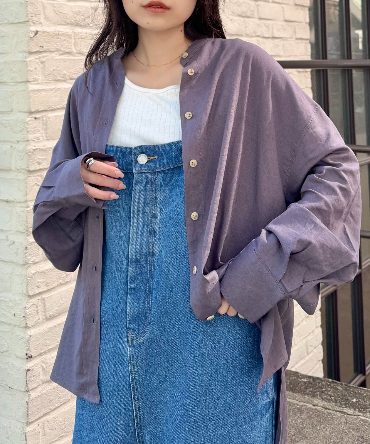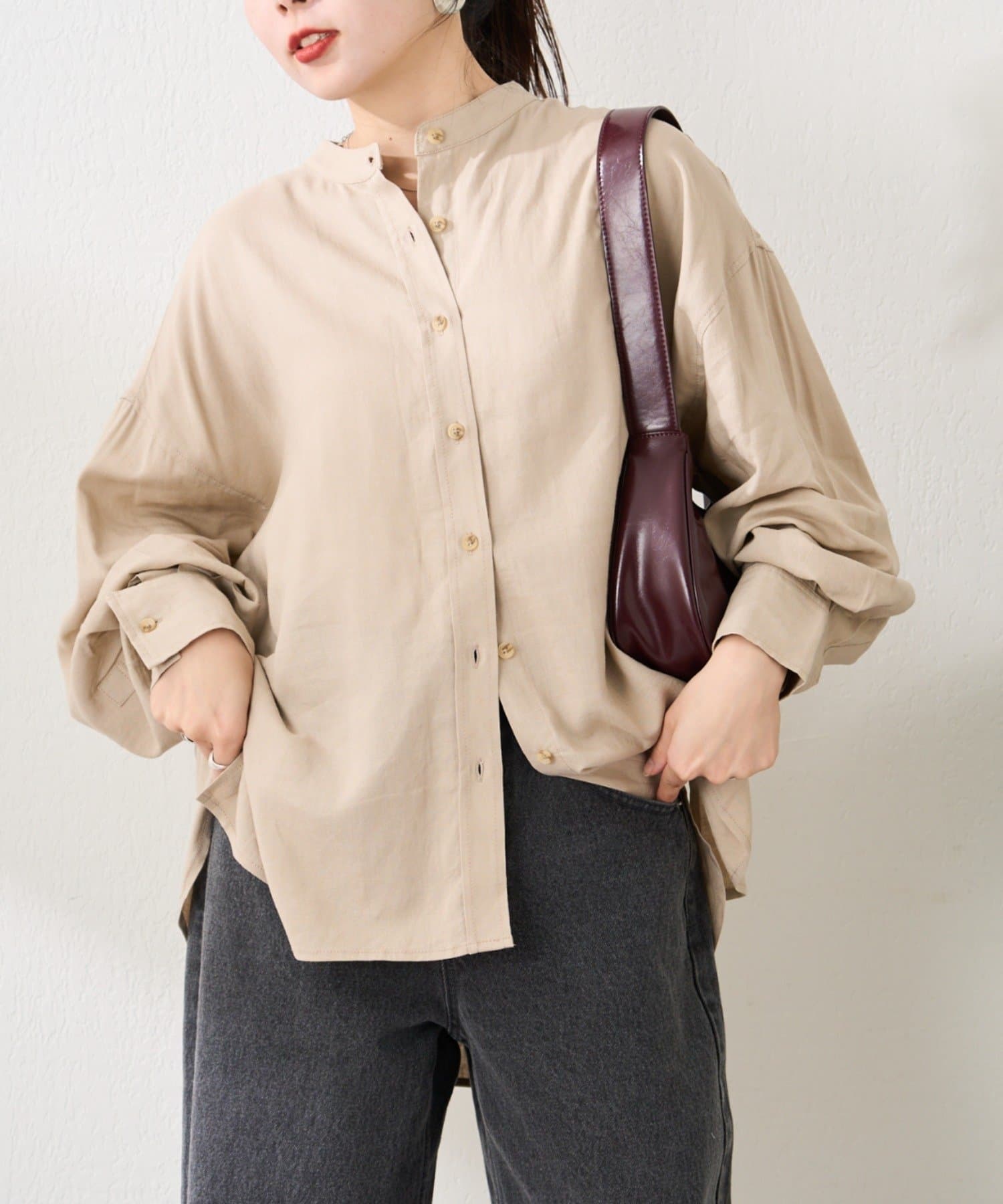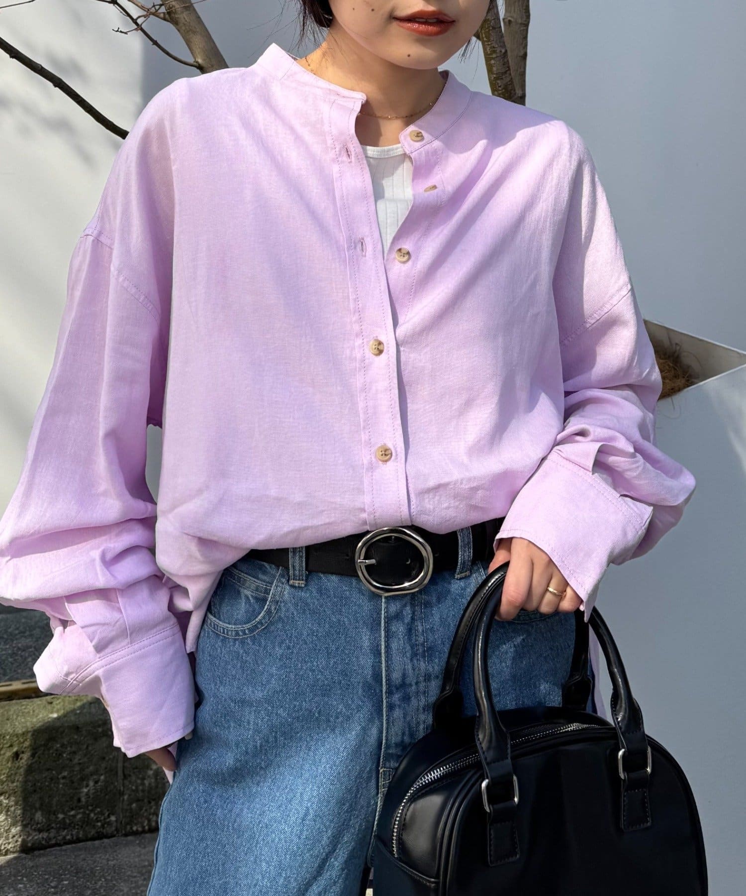 バンドカラーは顔周りをすっきり見せてくれ、レイヤードスタイルにも使いやすいデザインです!