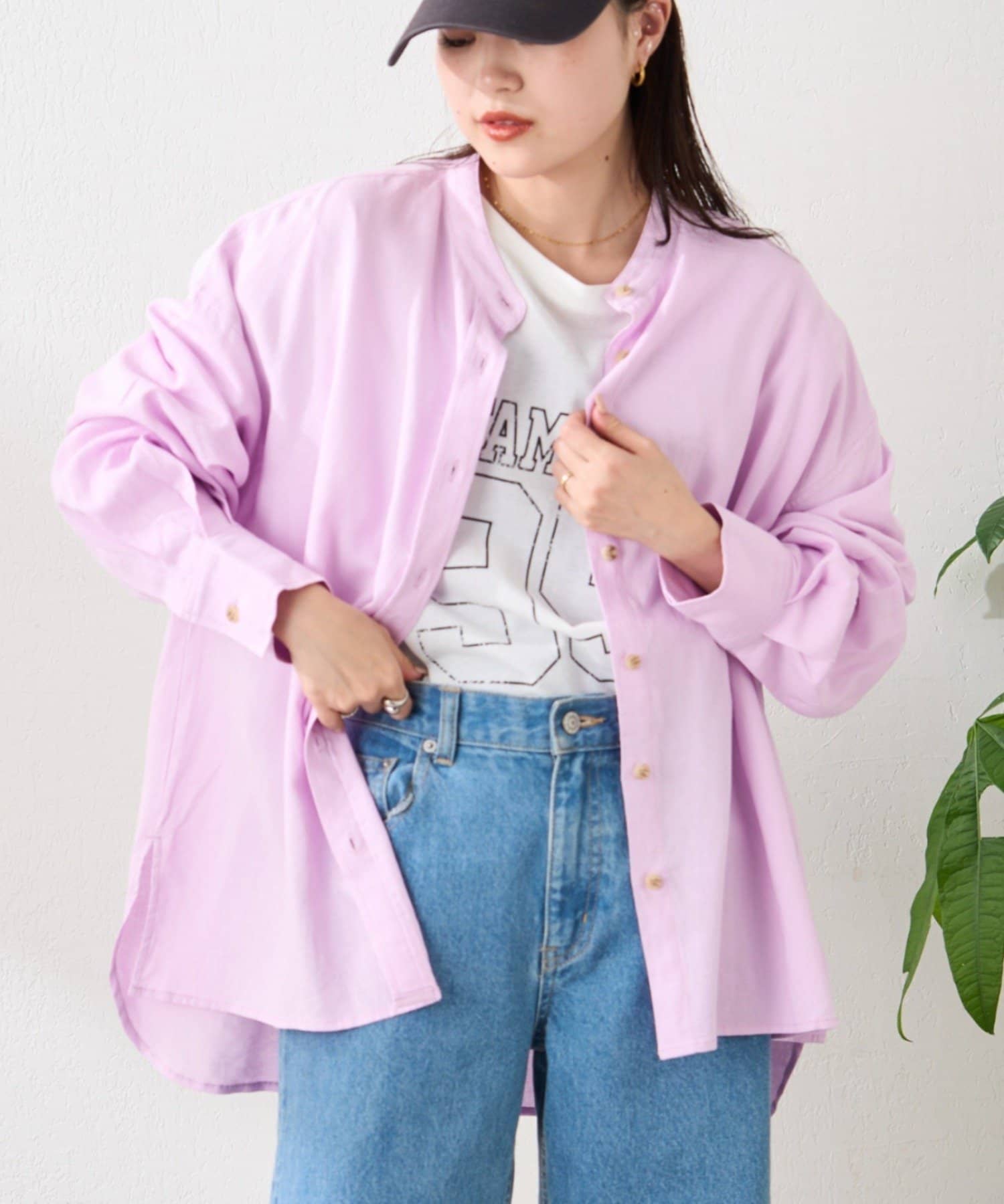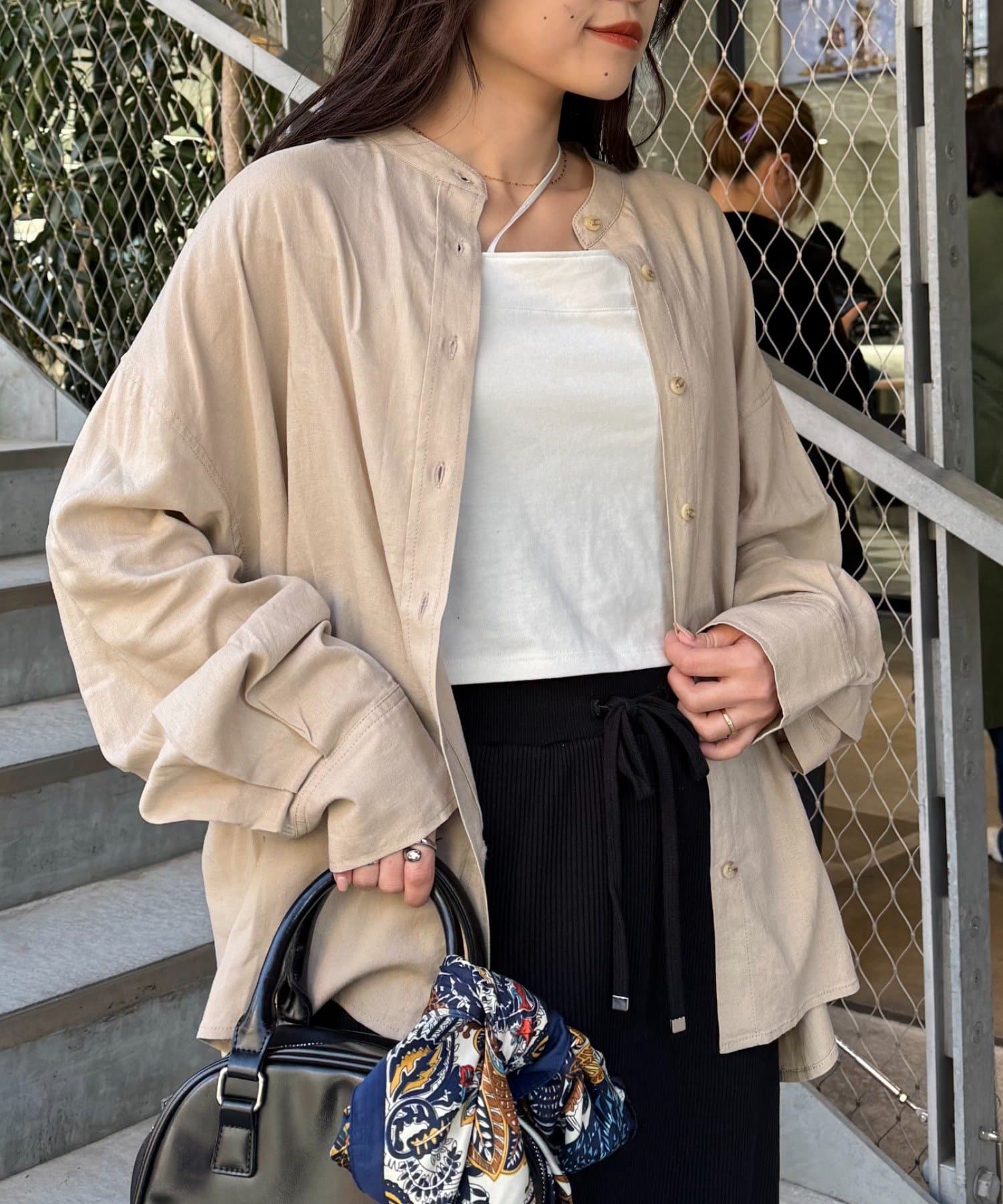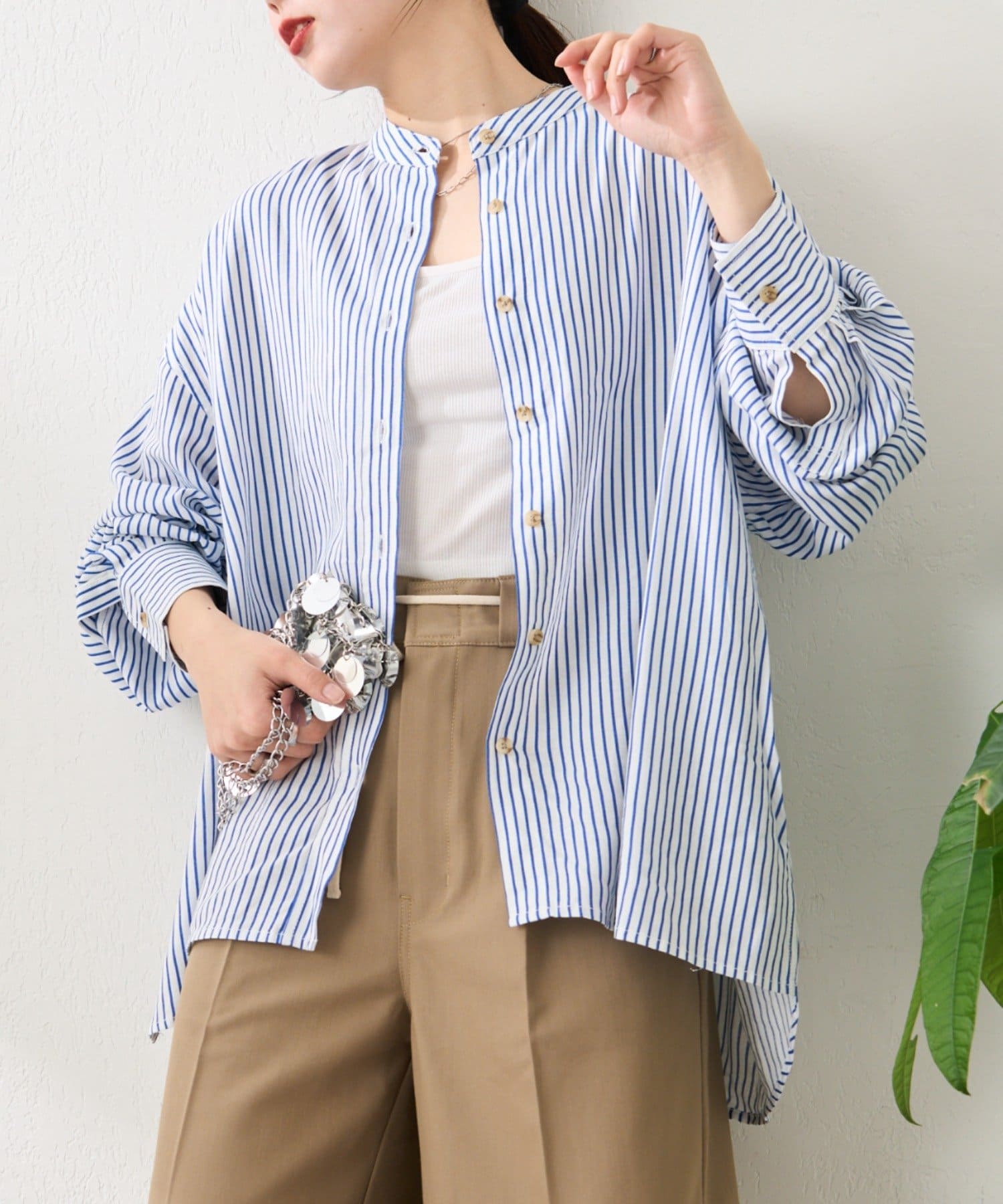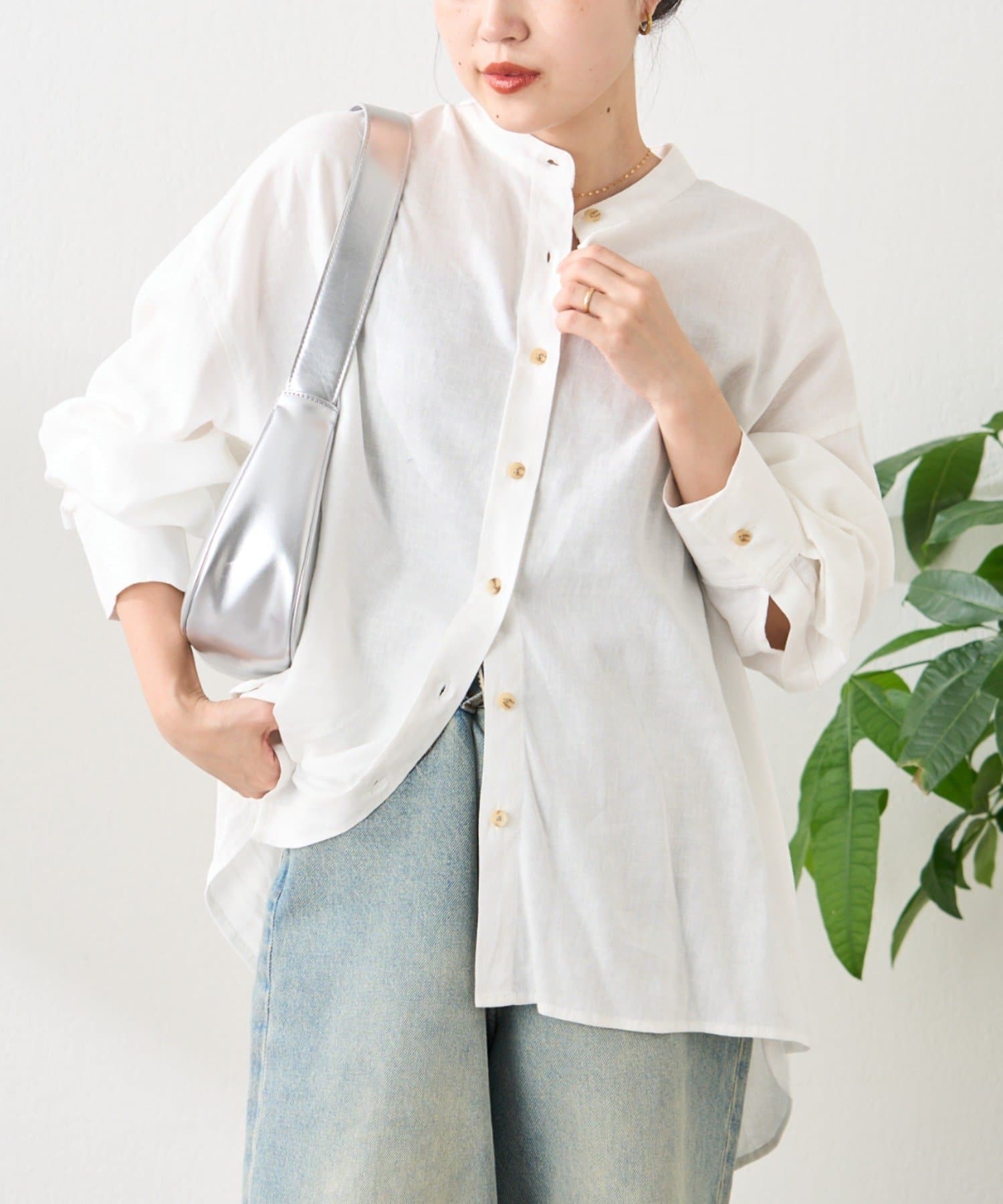 バンドカラーは顔周りをすっきり見せてくれ、レイヤードスタイルにも使いやすいデザインです!
