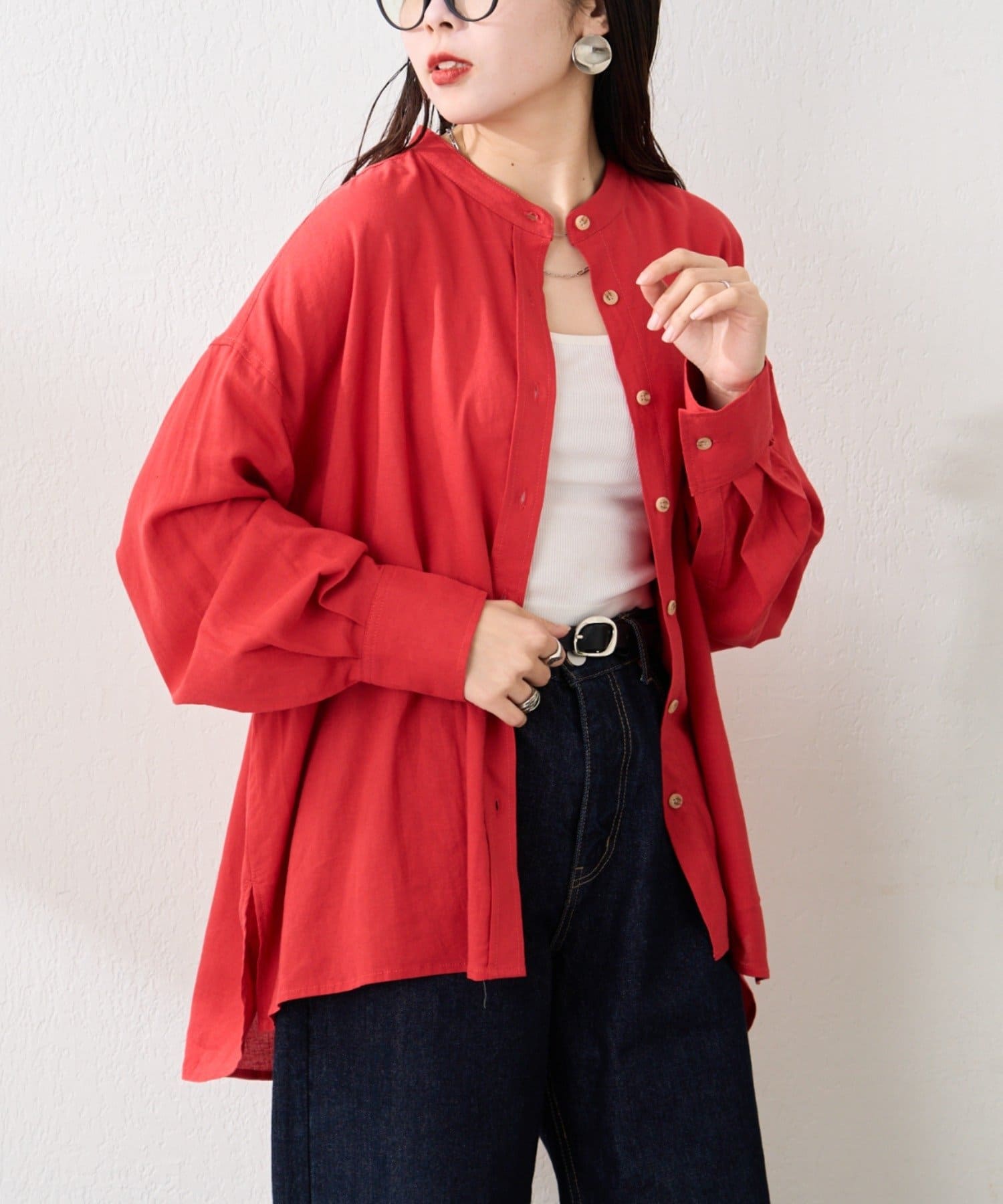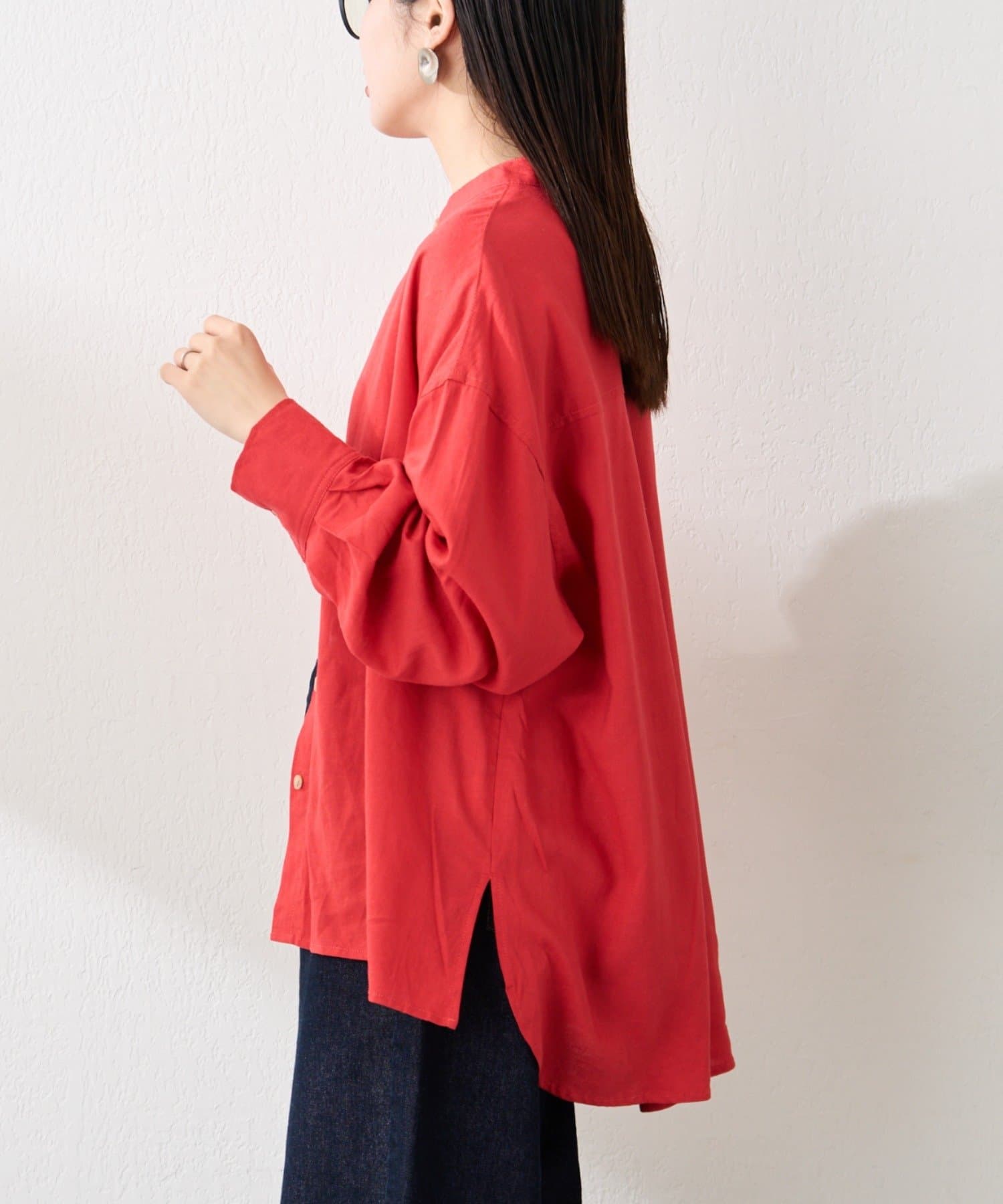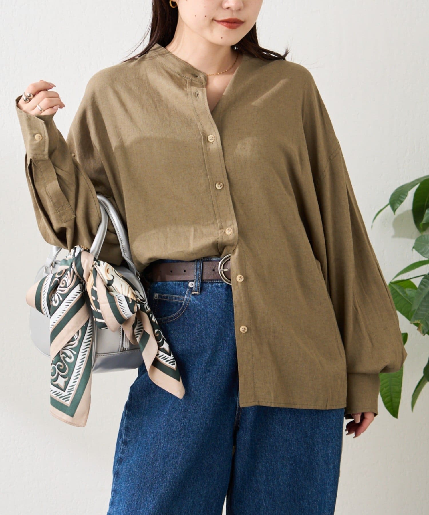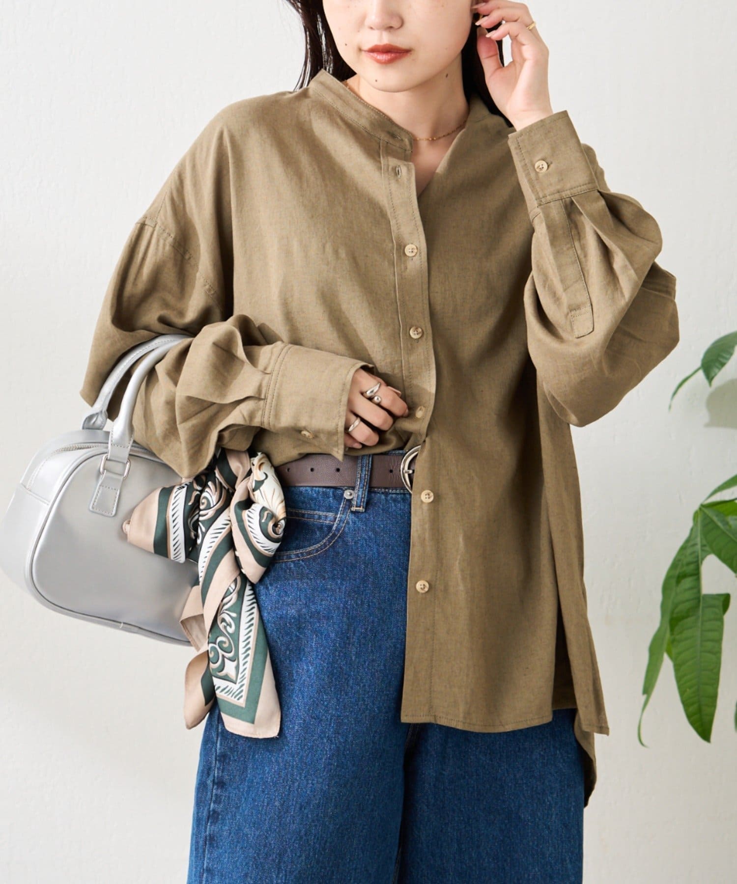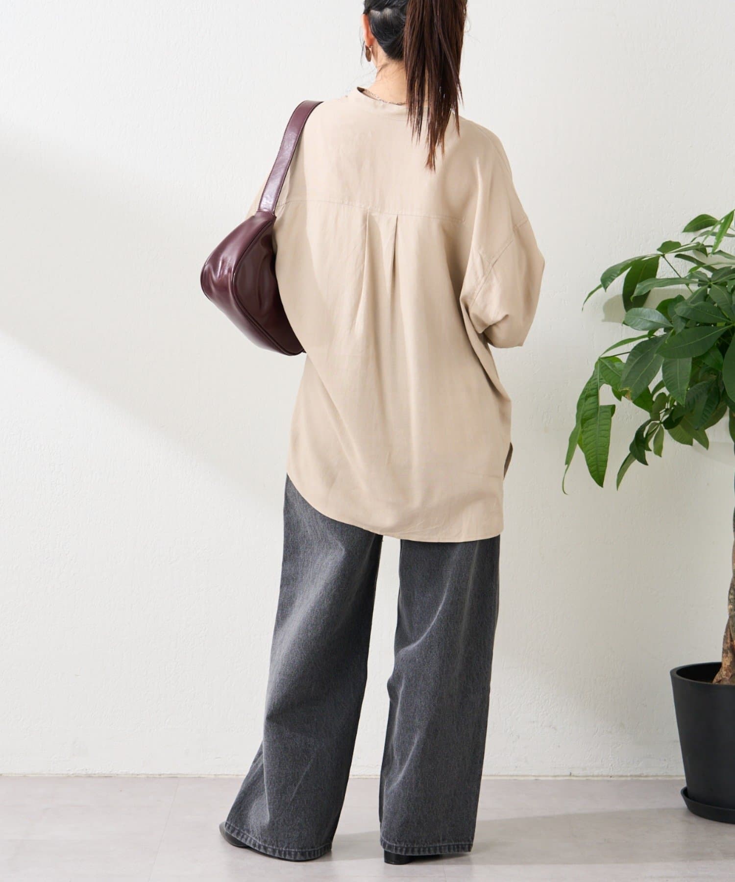 バンドカラーは顔周りをすっきり見せてくれ、レイヤードスタイルにも使いやすいデザインです!
