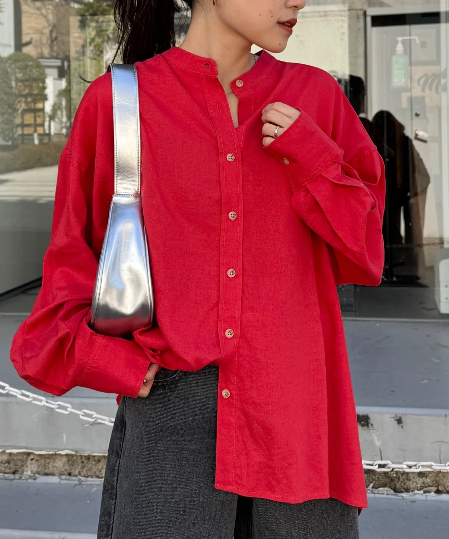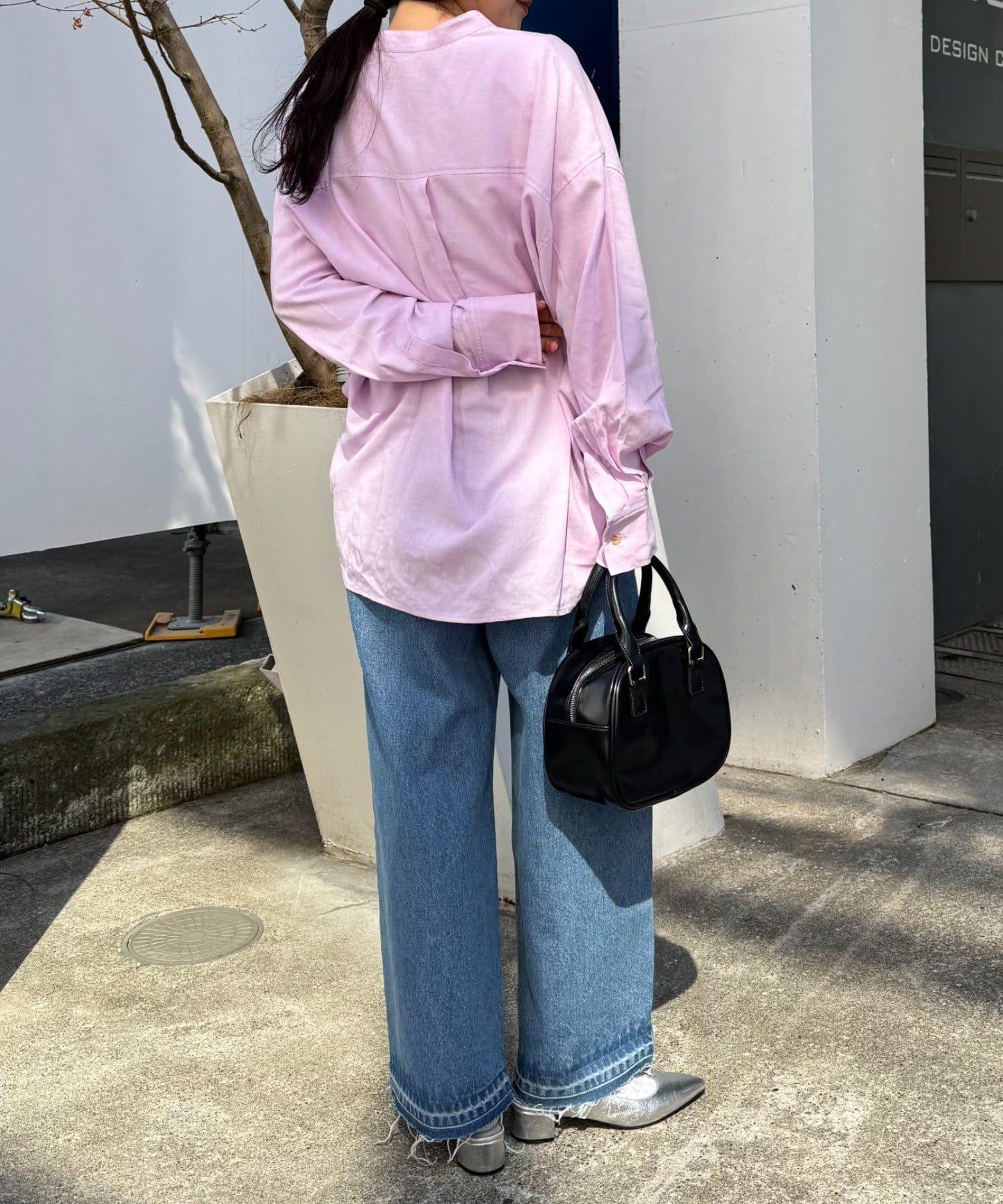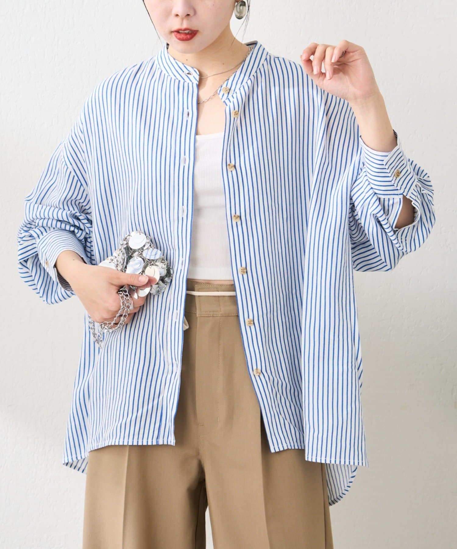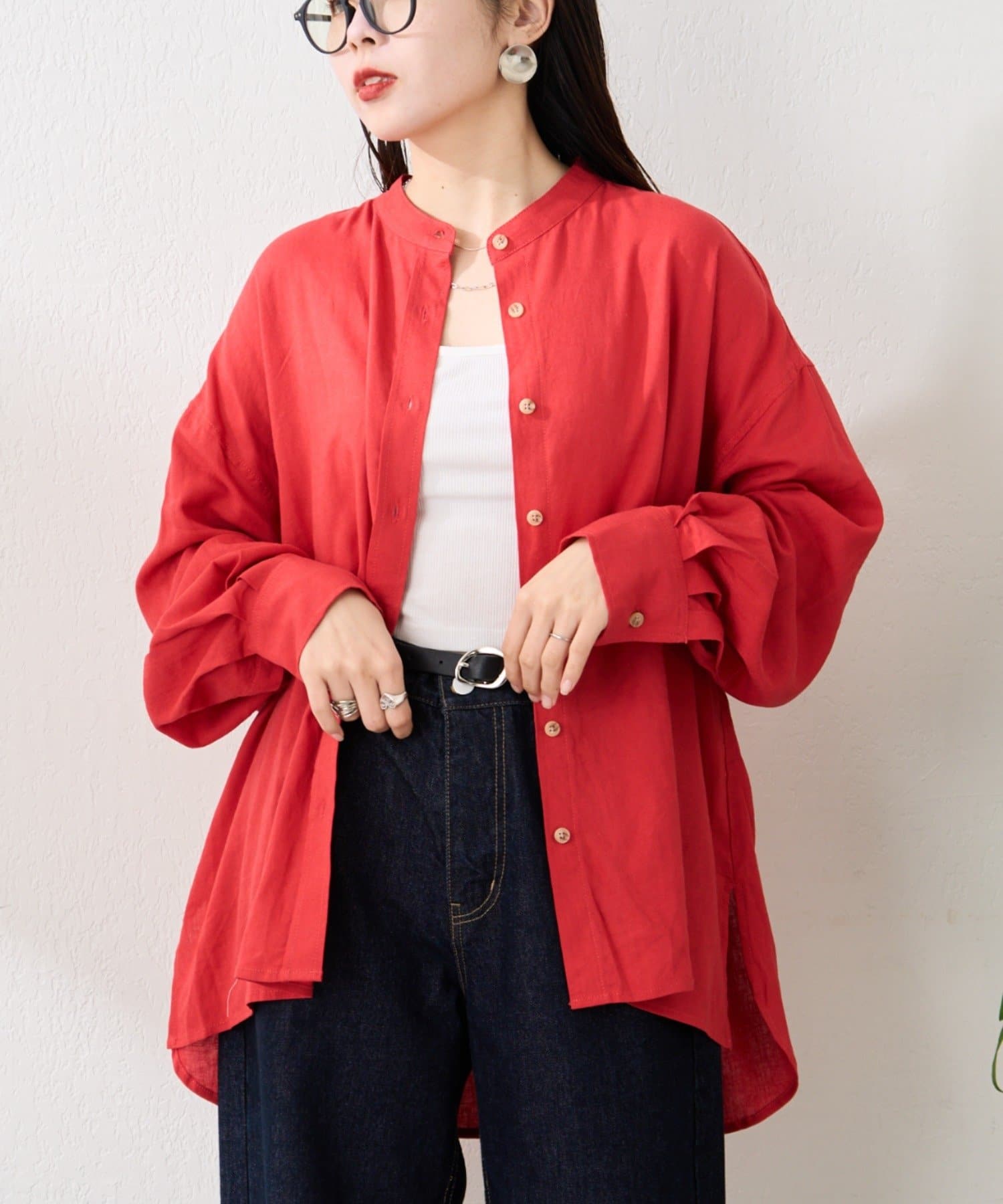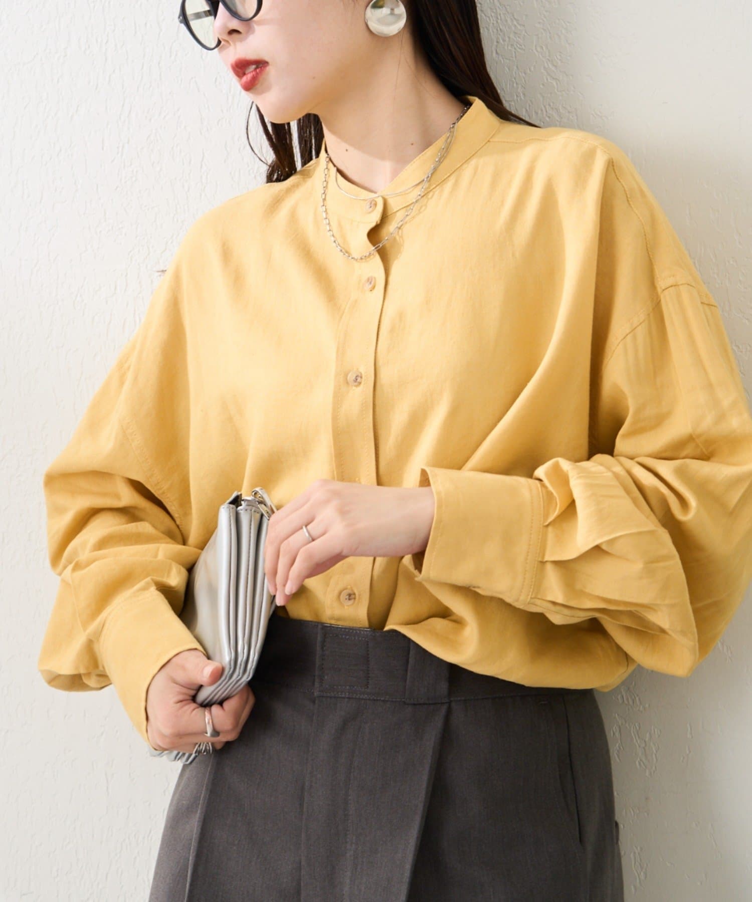 バンドカラーは顔周りをすっきり見せてくれ、レイヤードスタイルにも使いやすいデザインです!