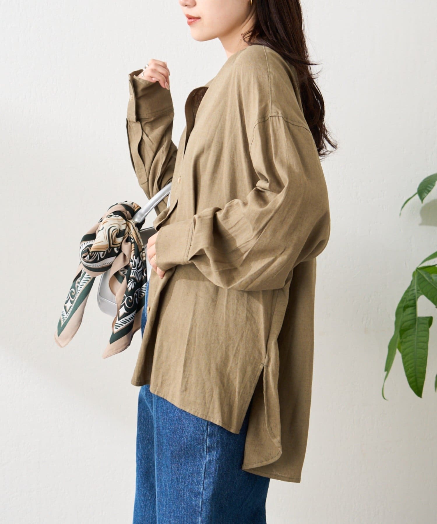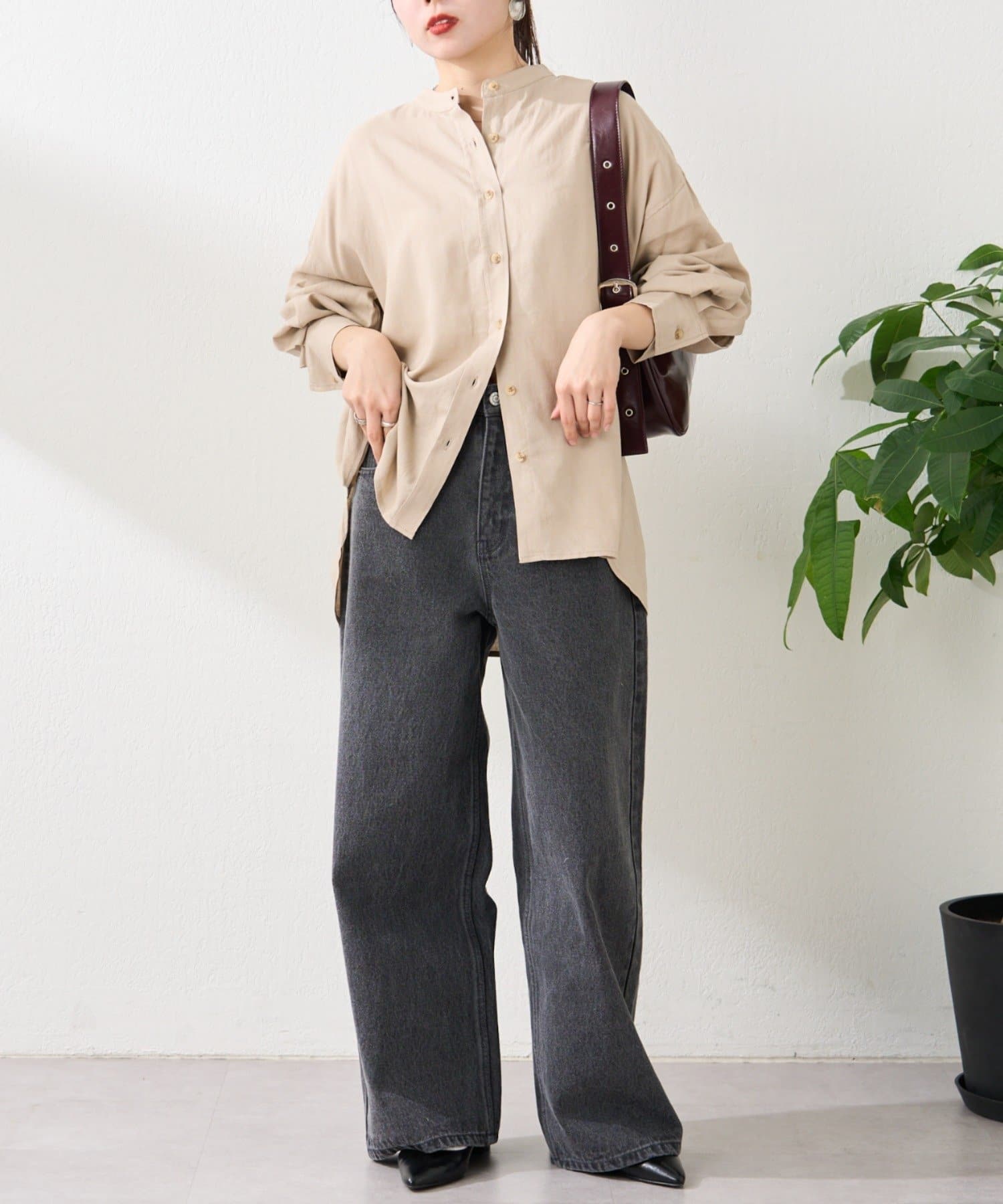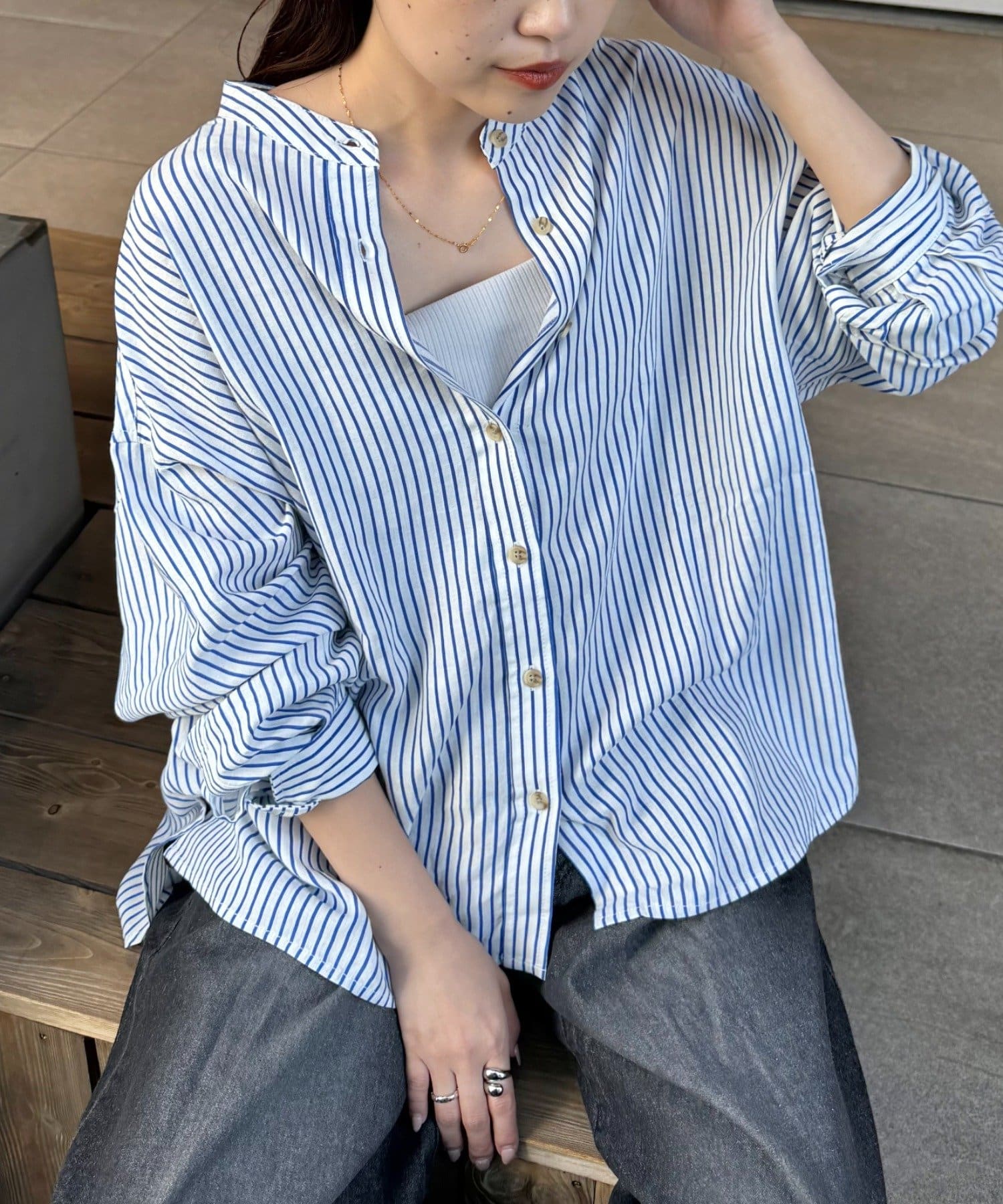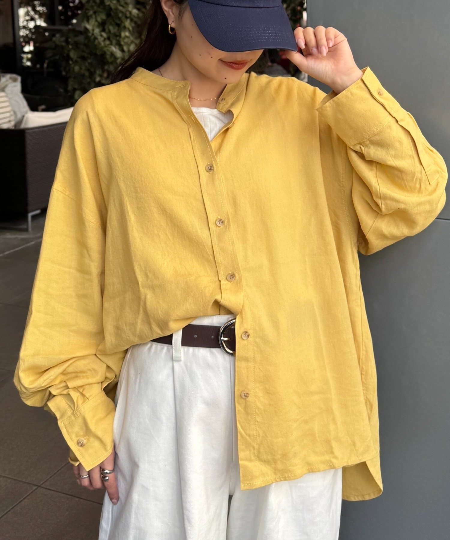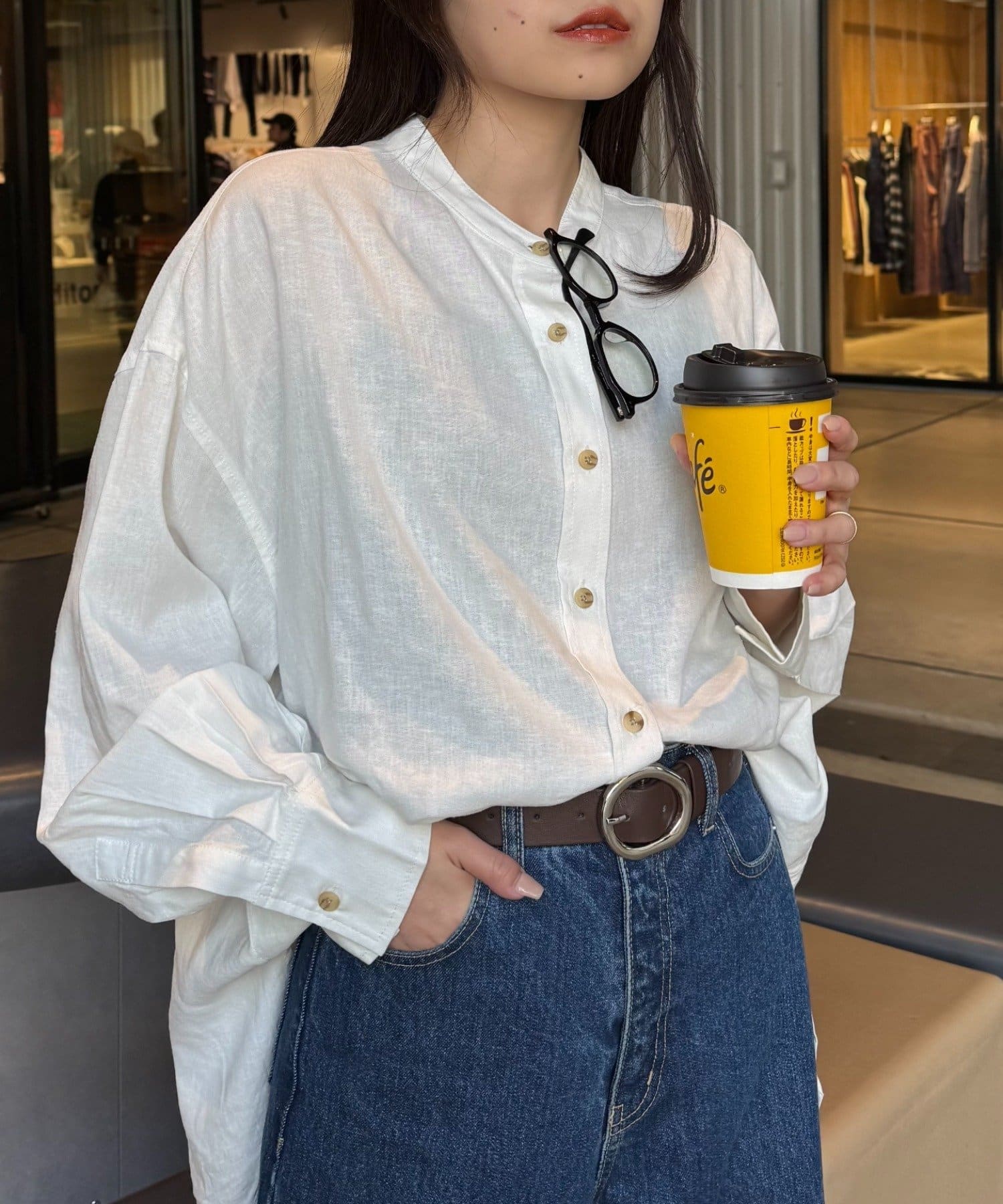 バンドカラーは顔周りをすっきり見せてくれ、レイヤードスタイルにも使いやすいデザインです!